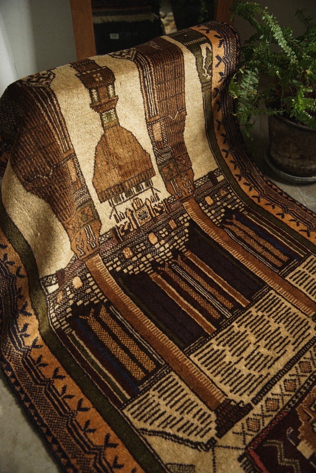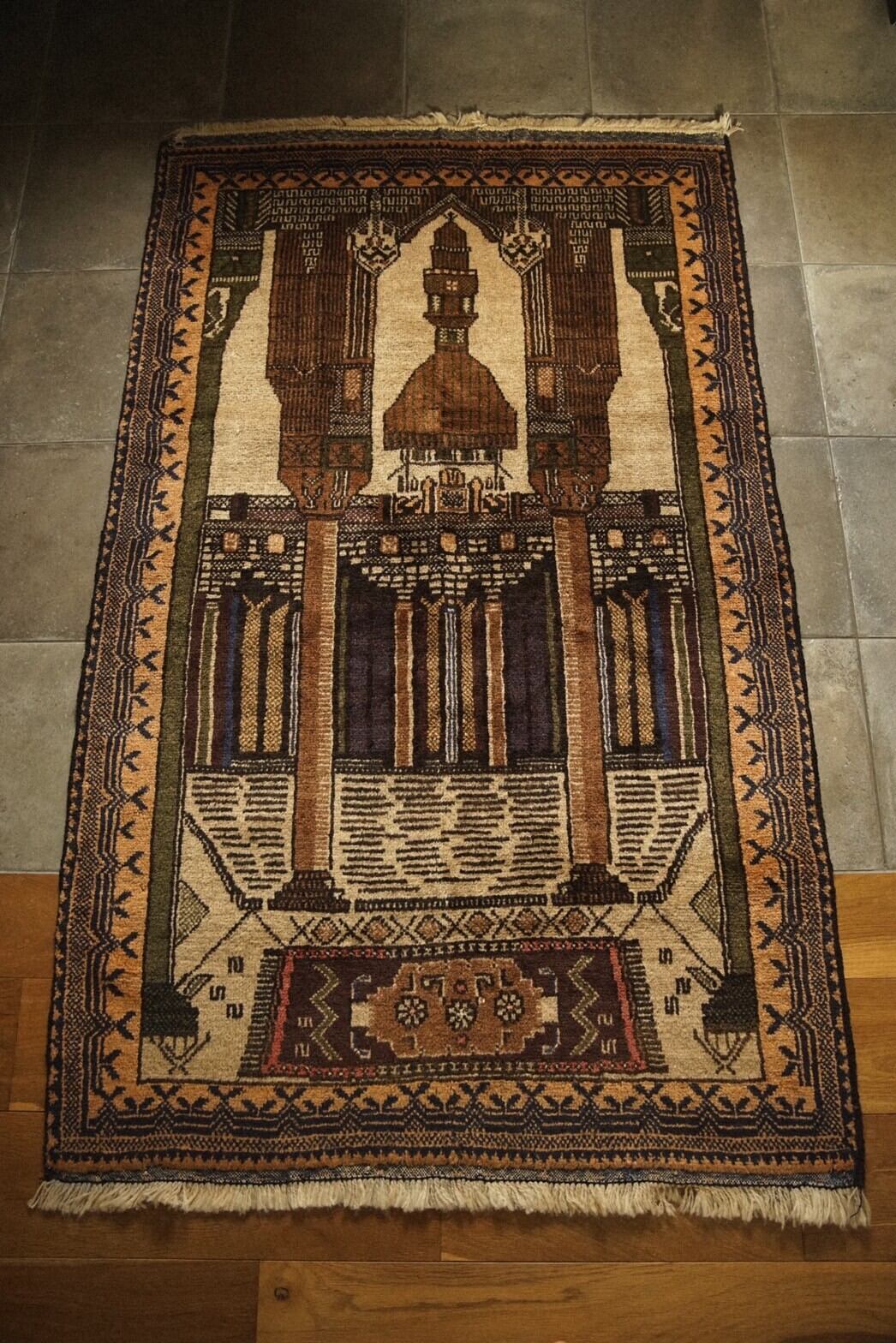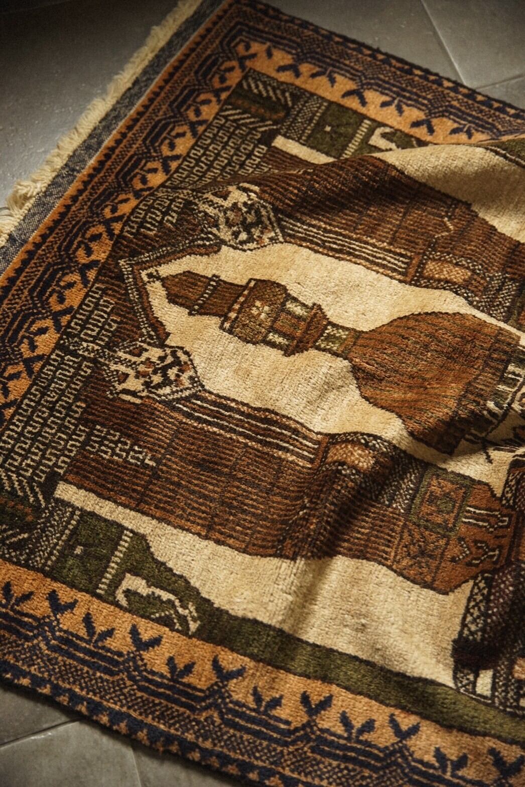 モスクの中が描かれたバルーチプレイヤーラグ。