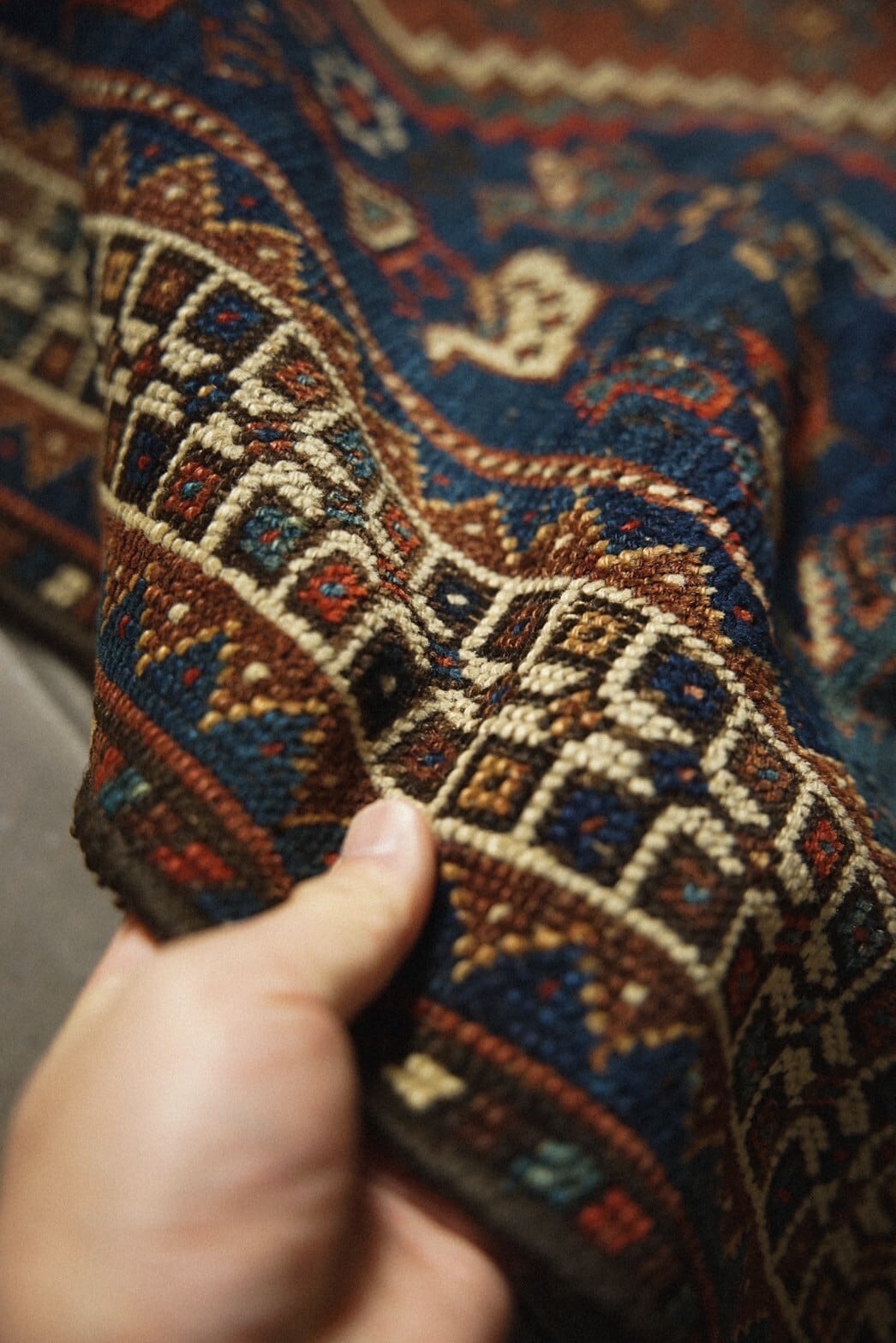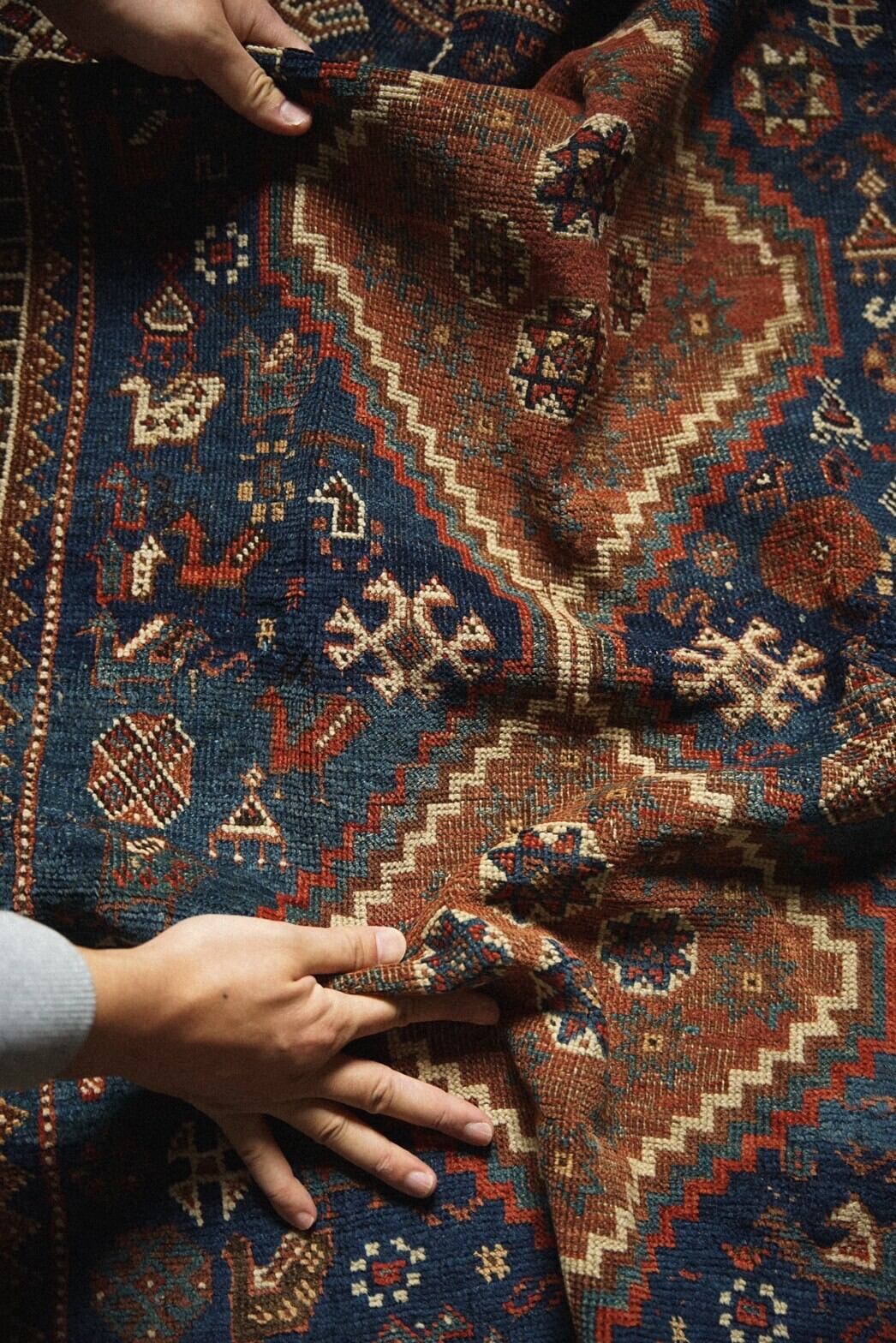 イラン南部のファルス州周辺に住むハムセ連合によって120年程前に織られたアンティークラグ。