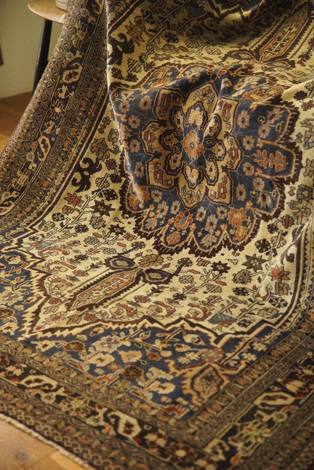 存在感のある華やかなセンターメダリオンと、その周りにも細かく彩り豊かに表現された花紋様。