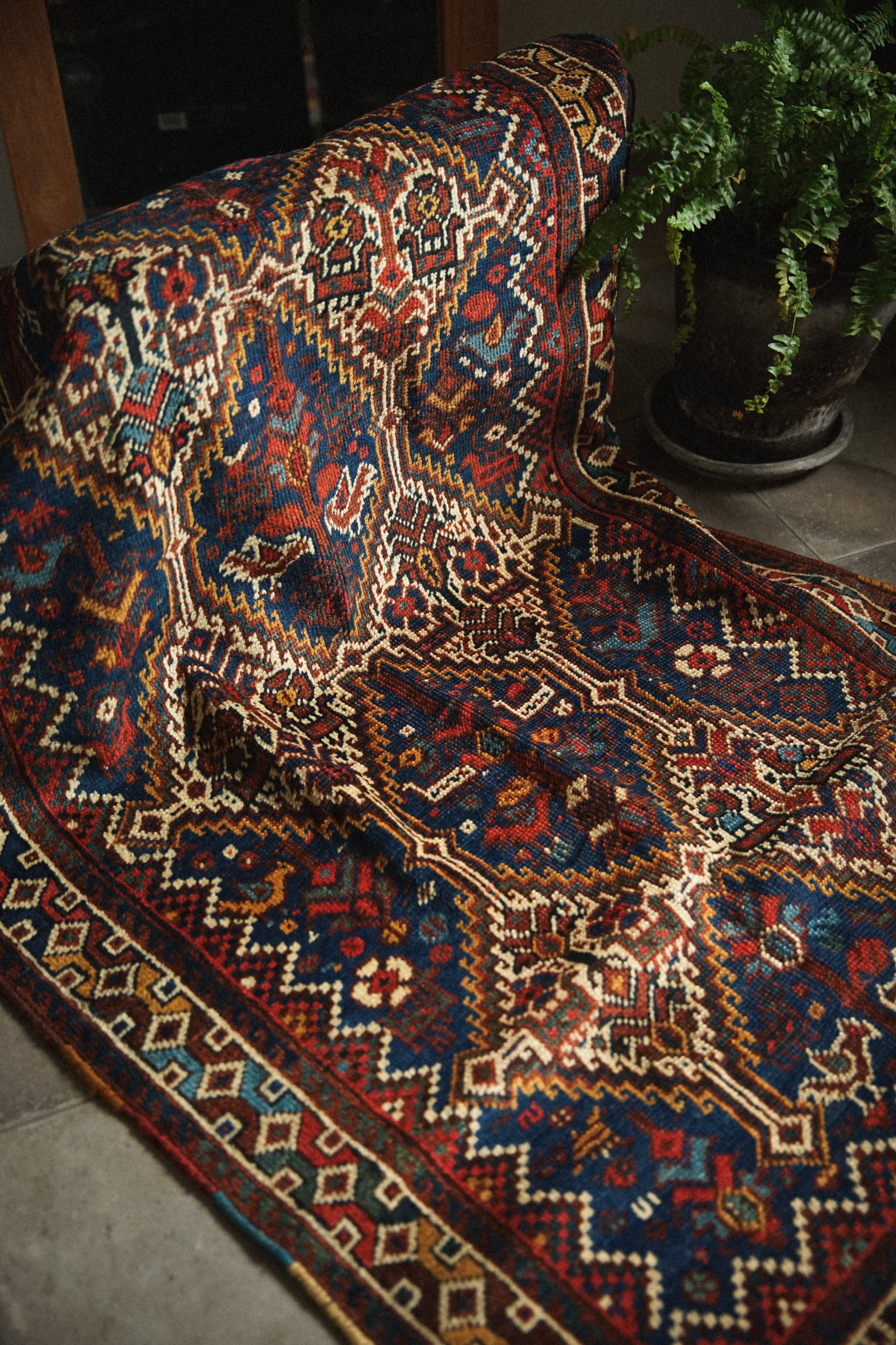 ハムセ連合によって1910年代に織られた美しい色彩とデザインのアンティークラグ。