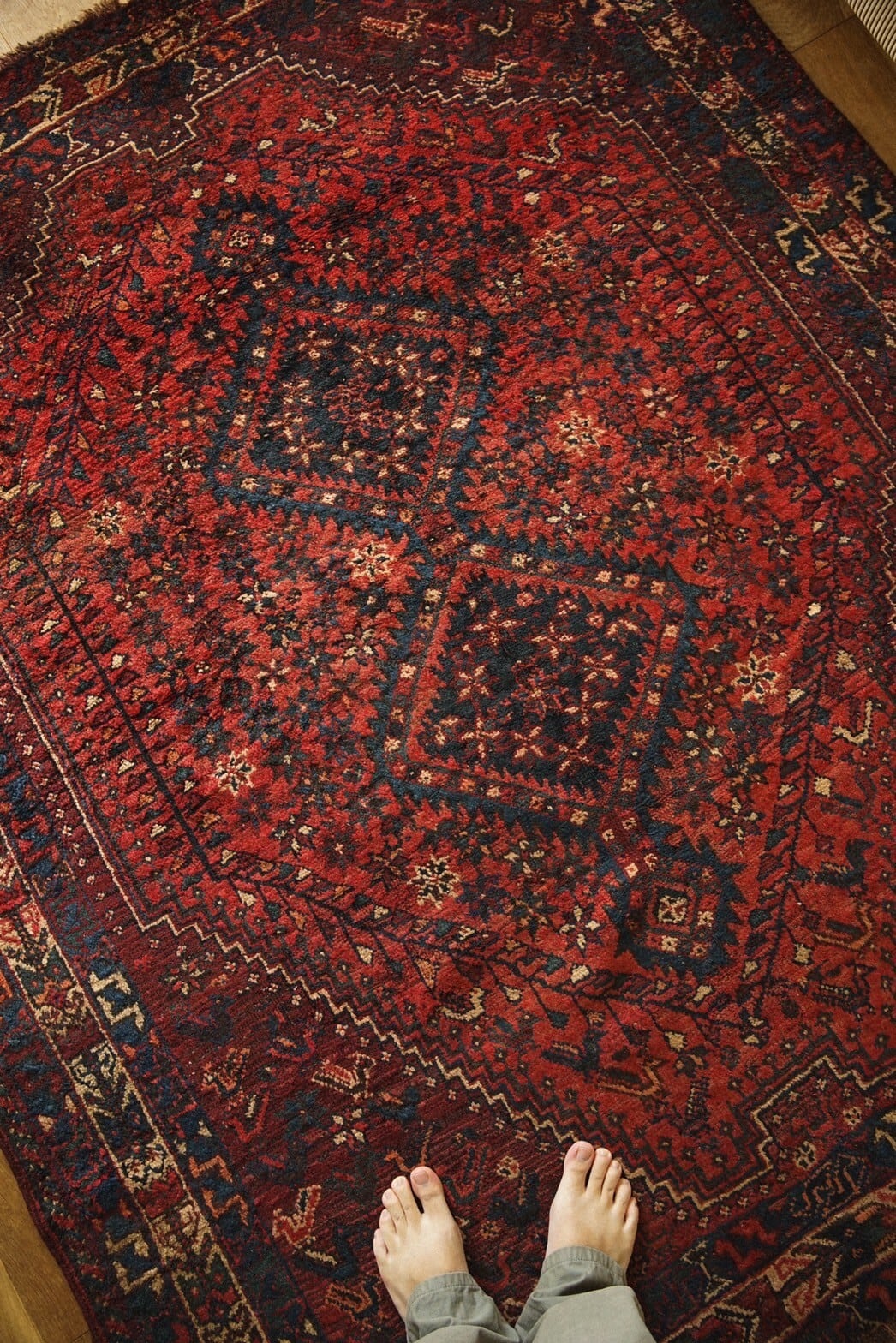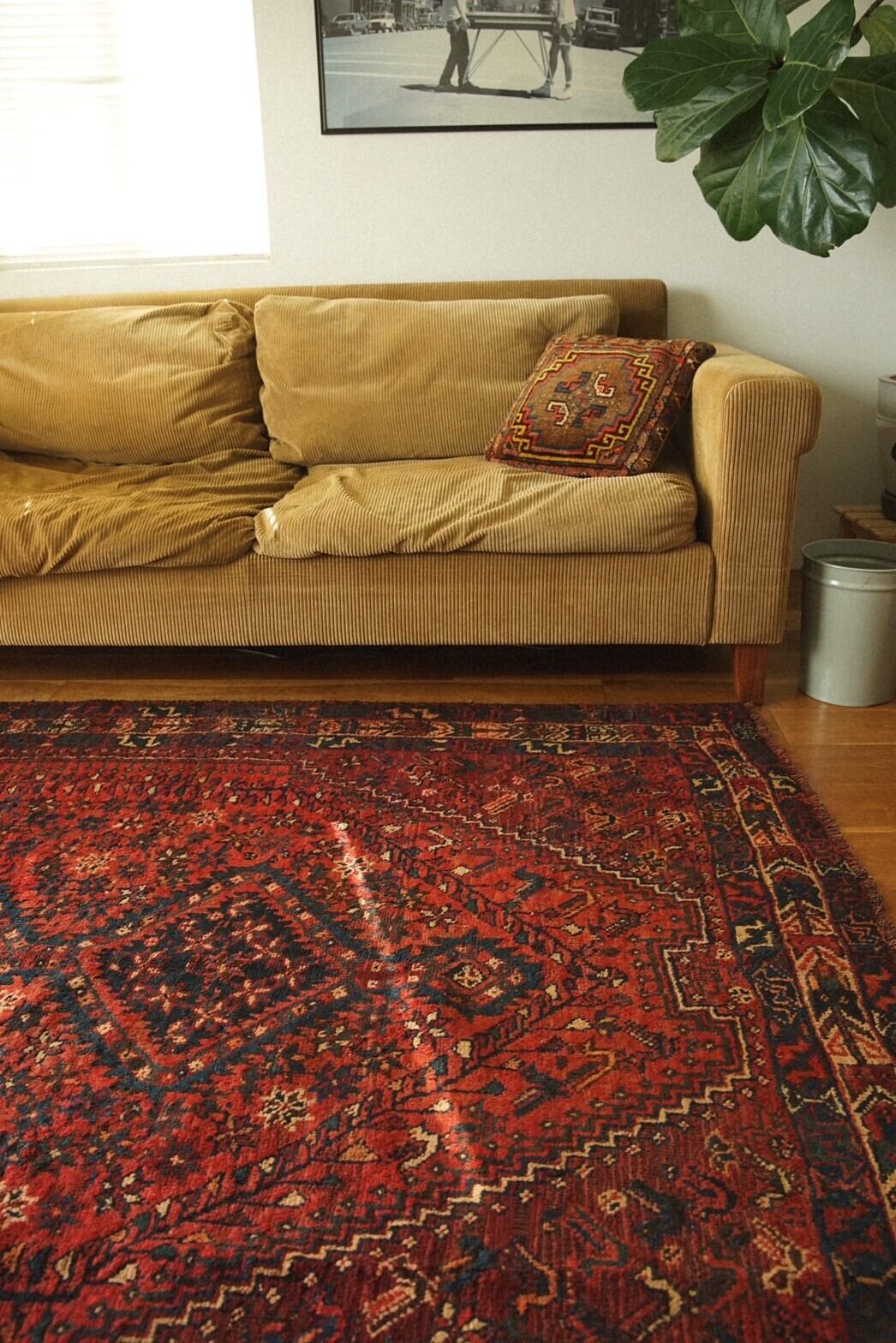 アンティークに近い経年数のラグなので鮮やかすぎない味わい深い色味になっており、インテリアから浮いたりせずに空間に馴染んでくれます。