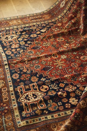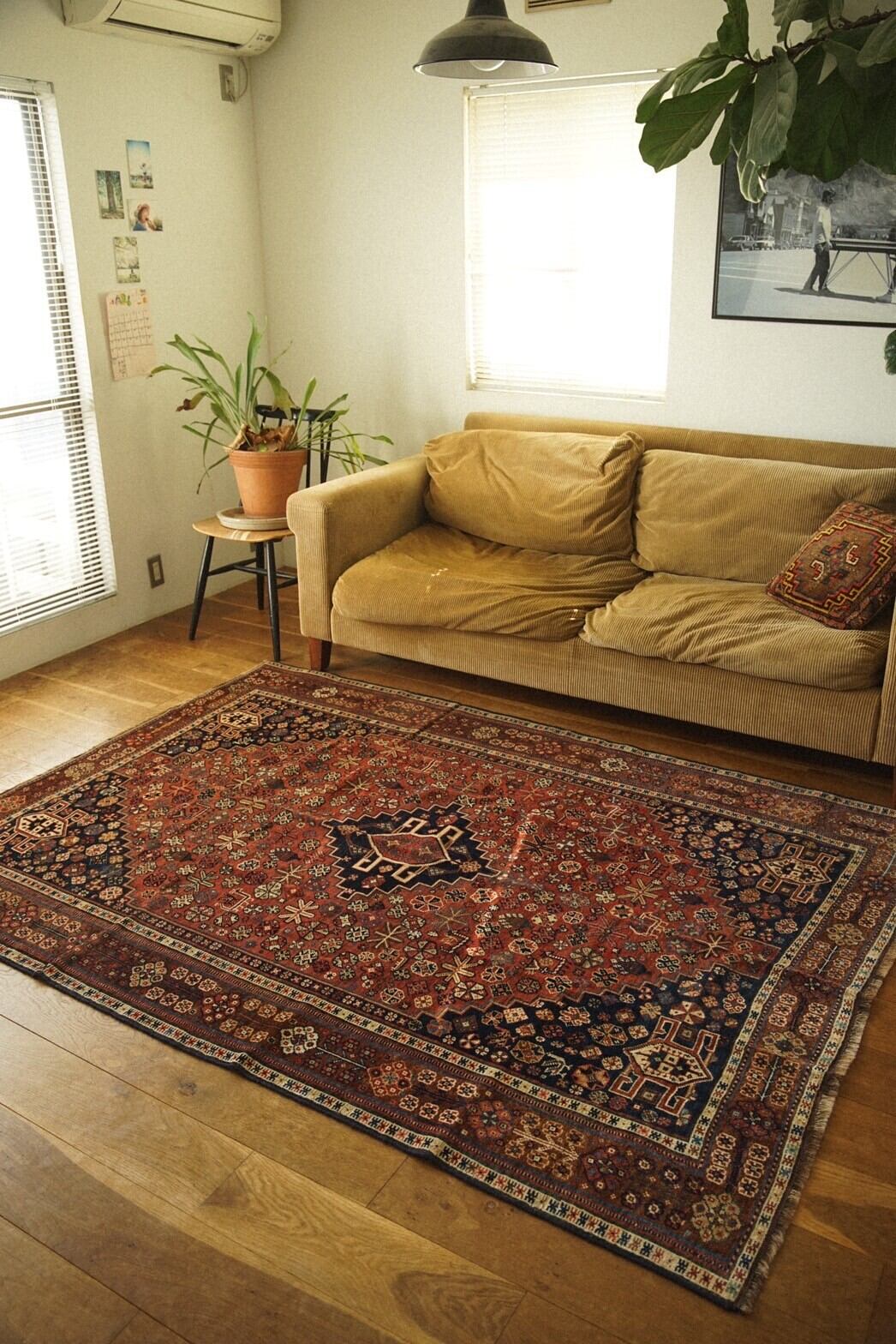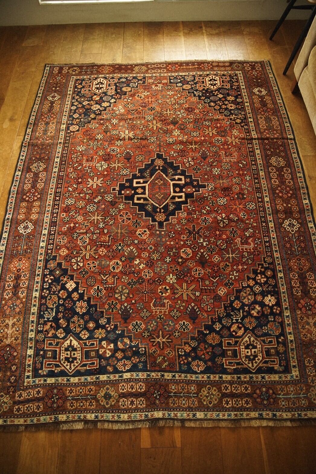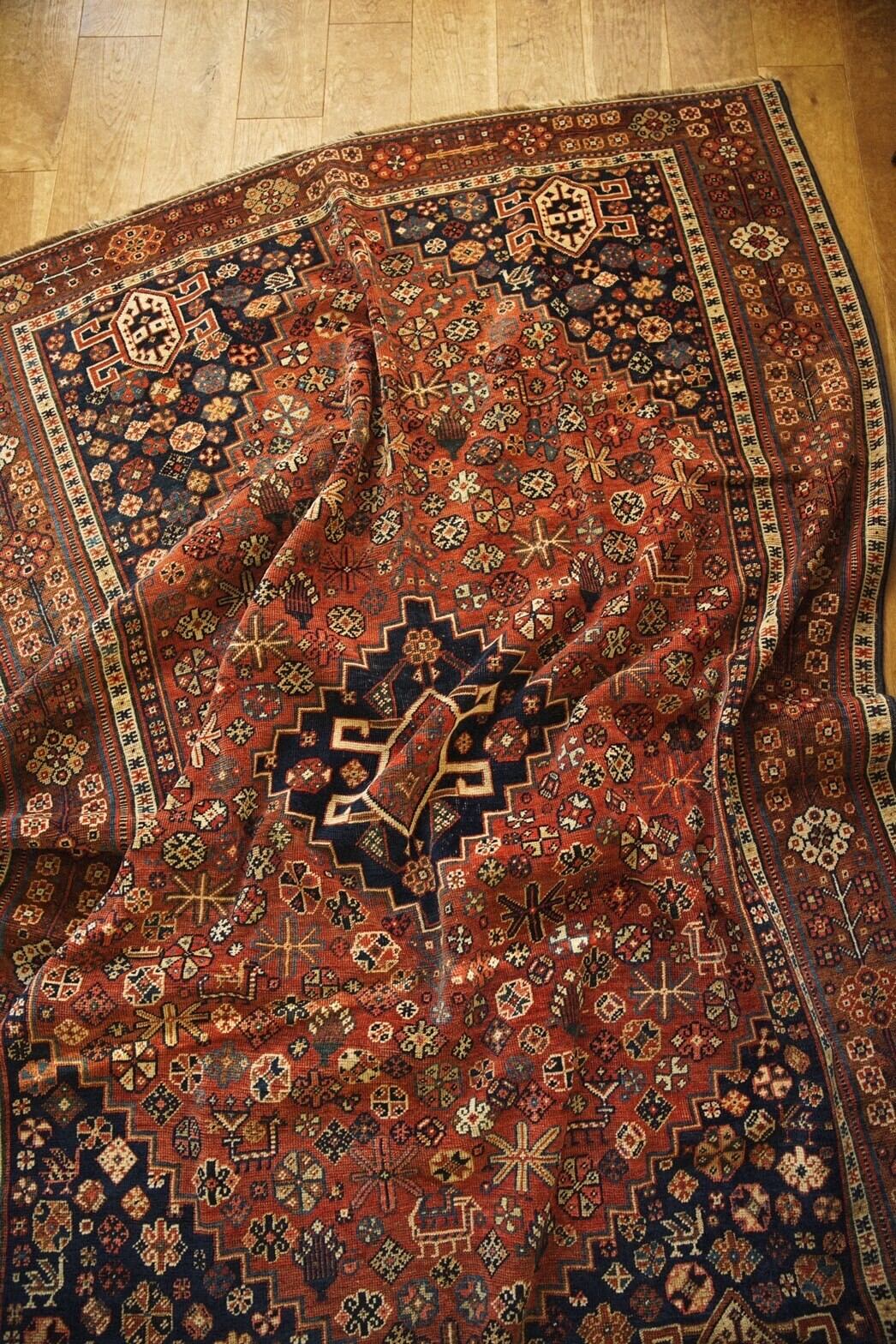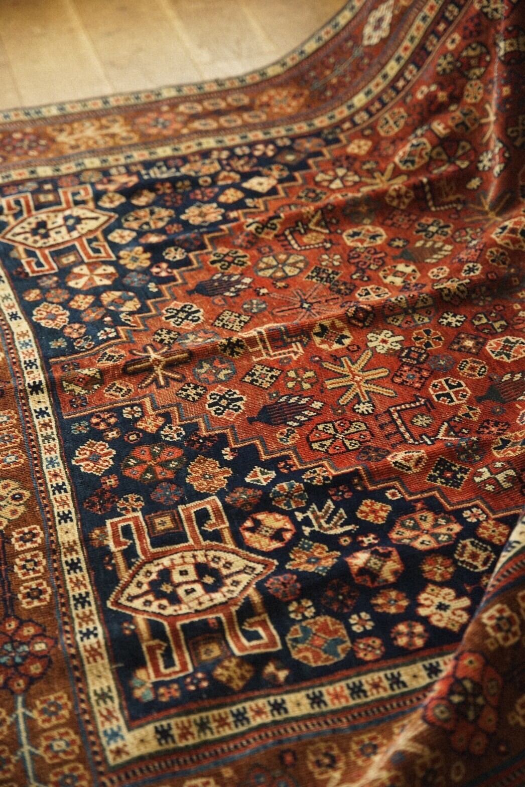 100年以上前にイラン南部のファルス州周辺に住むハムセ連合によって織られたアンティークラグ。