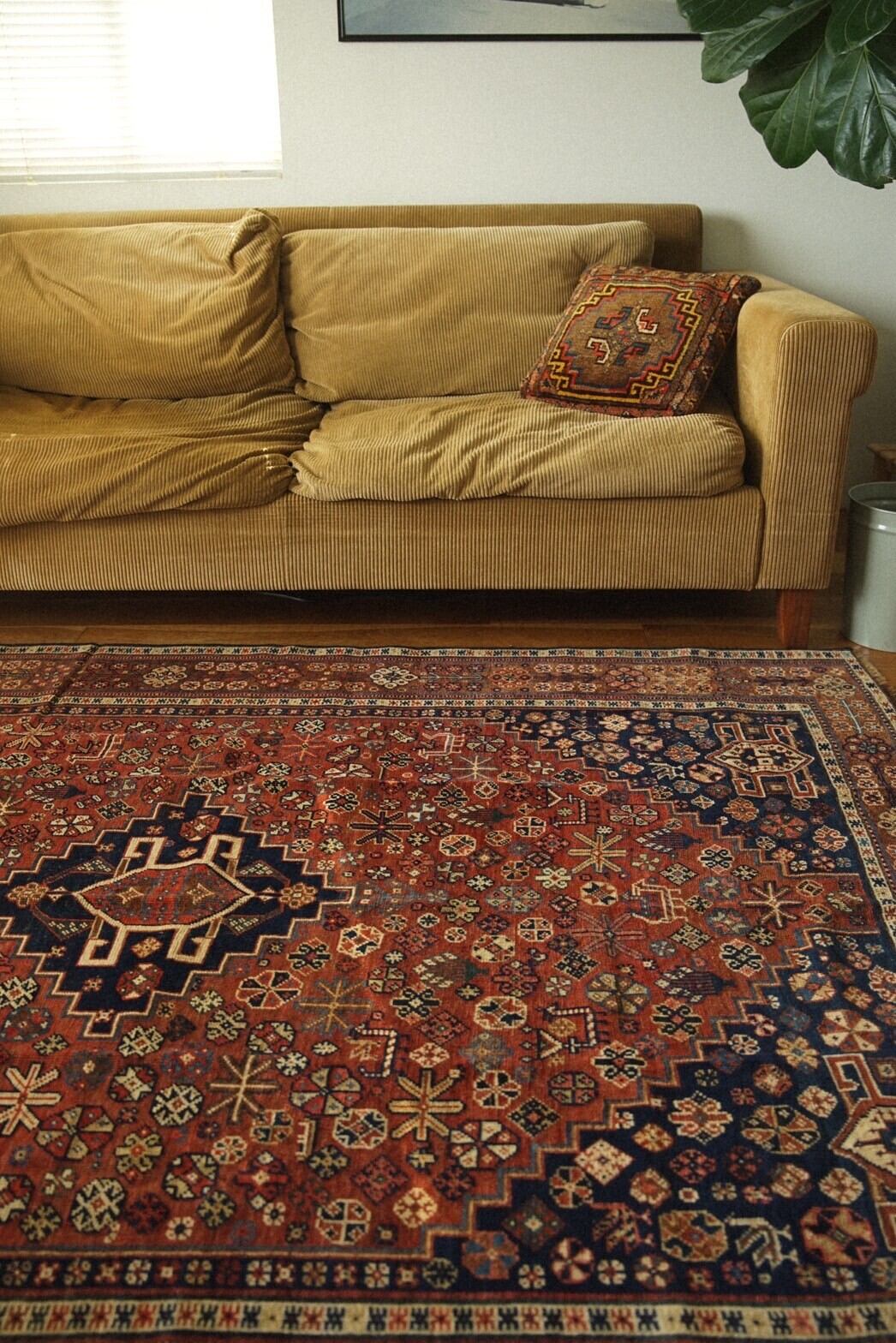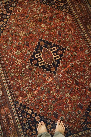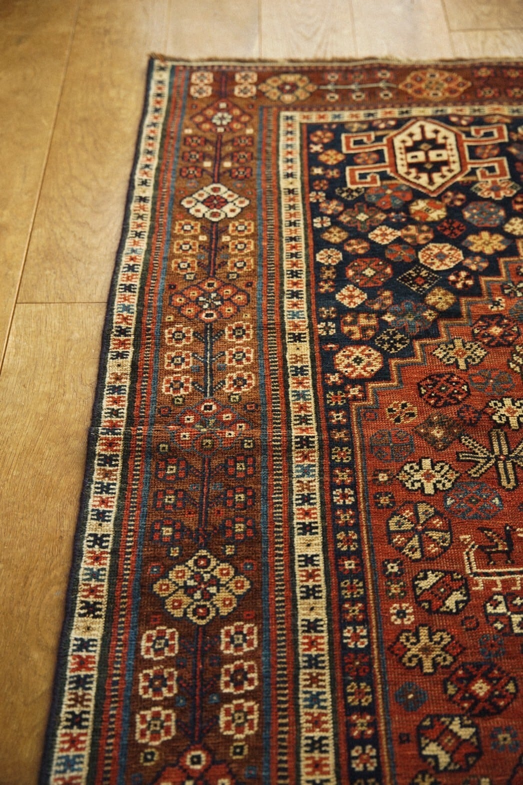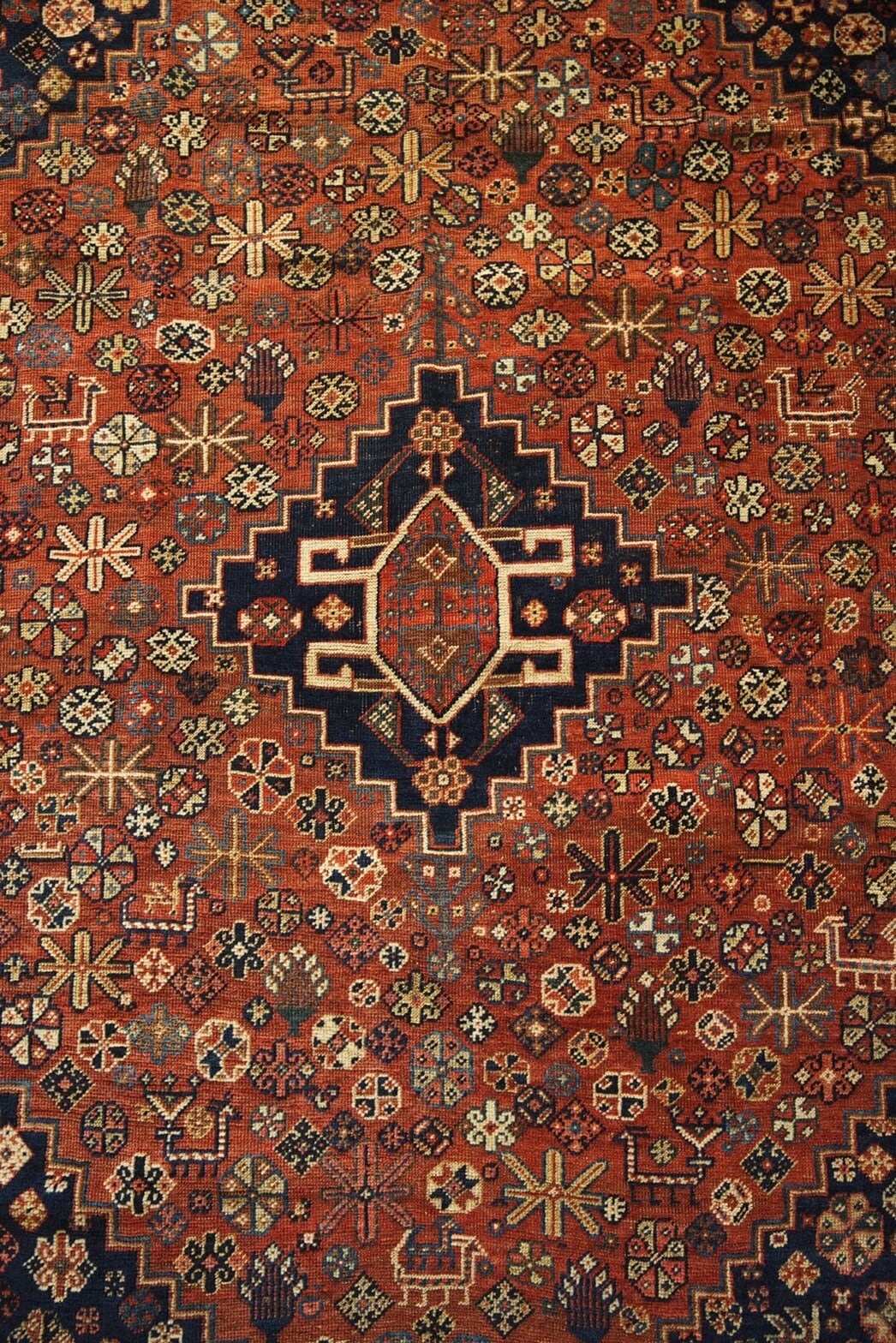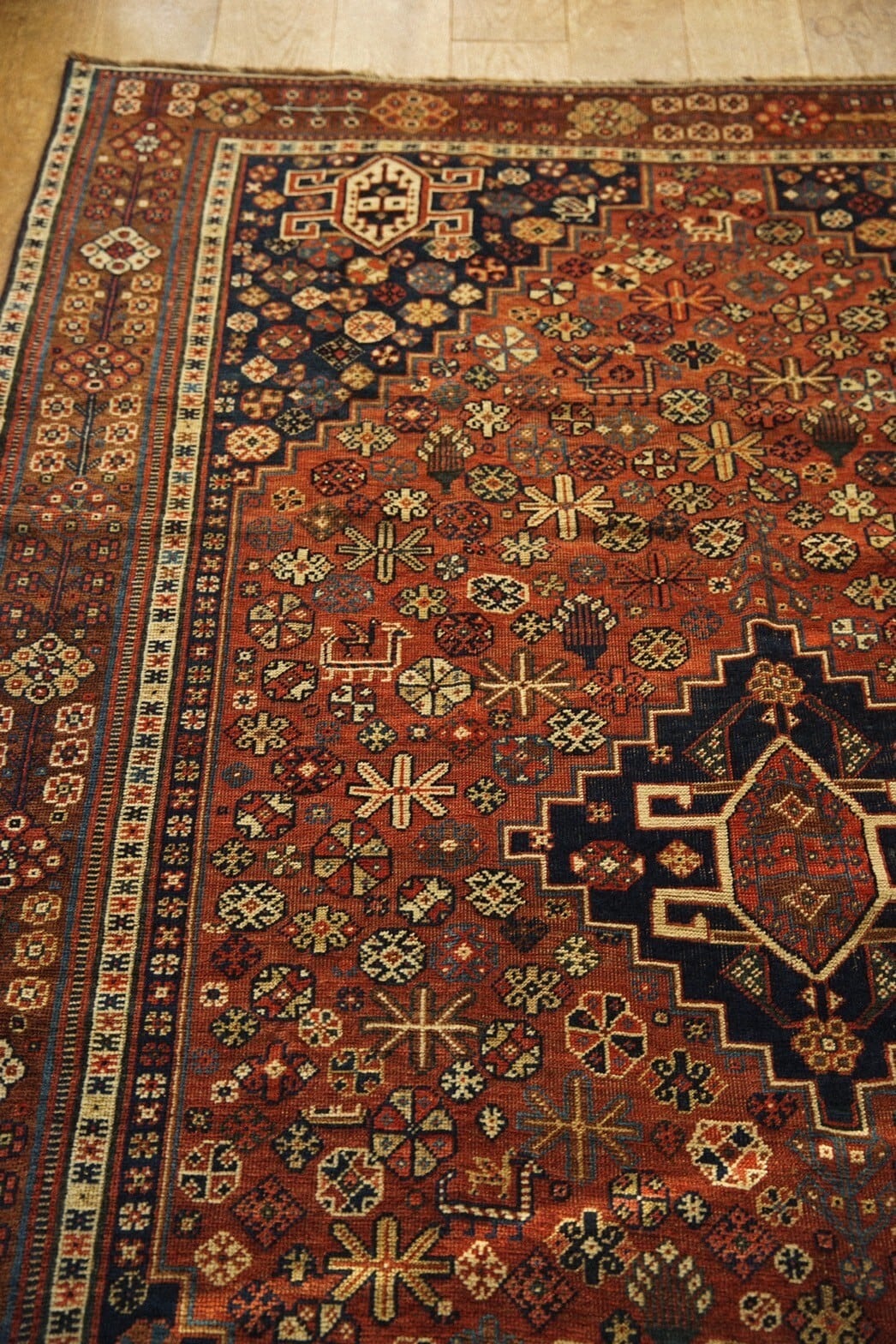 100年以上前にイラン南部のファルス州周辺に住むハムセ連合によって織られたアンティークラグ。