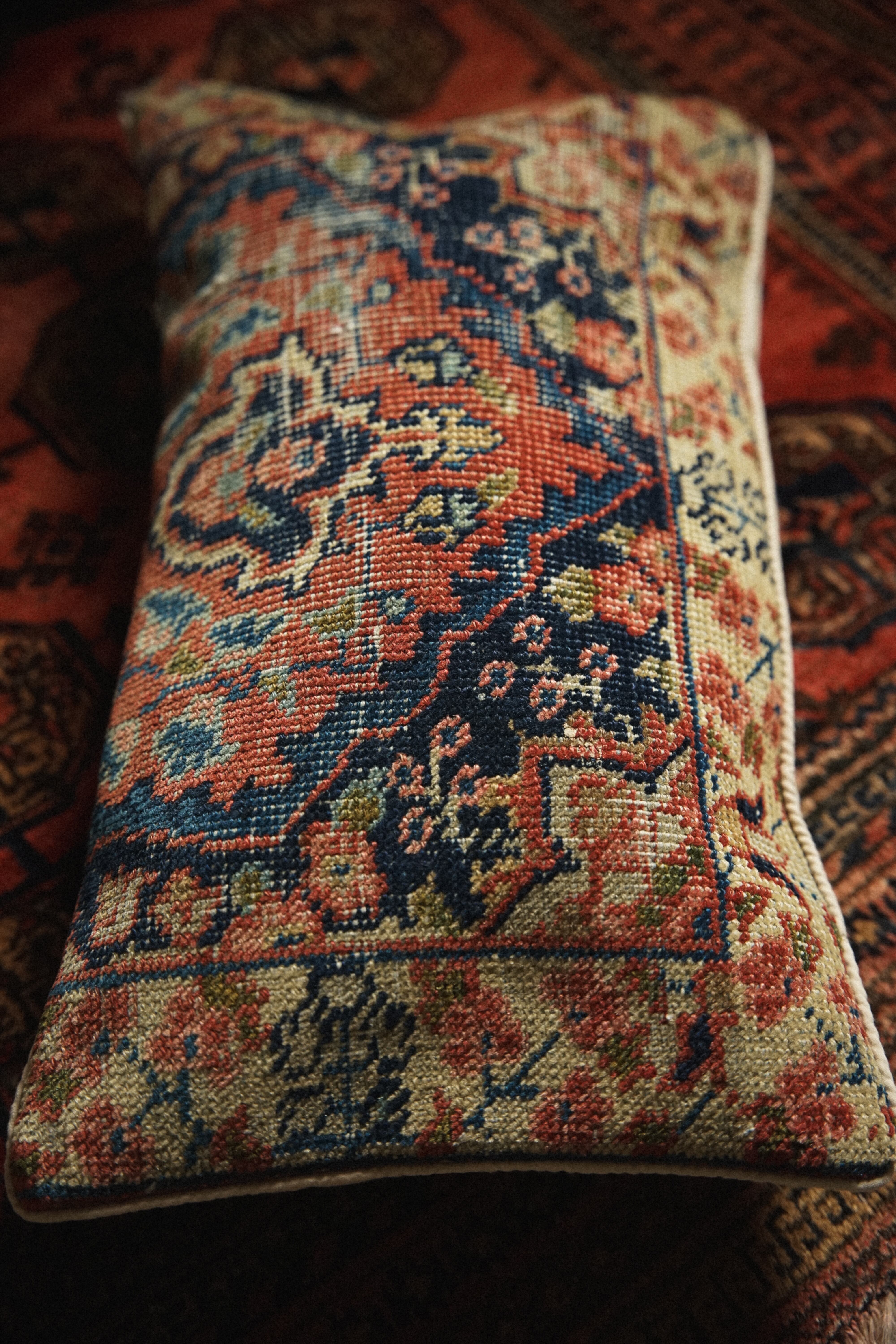 1920年代に織られたアンティークのアフシャルラグを再利用して作られたクッションカバー。
