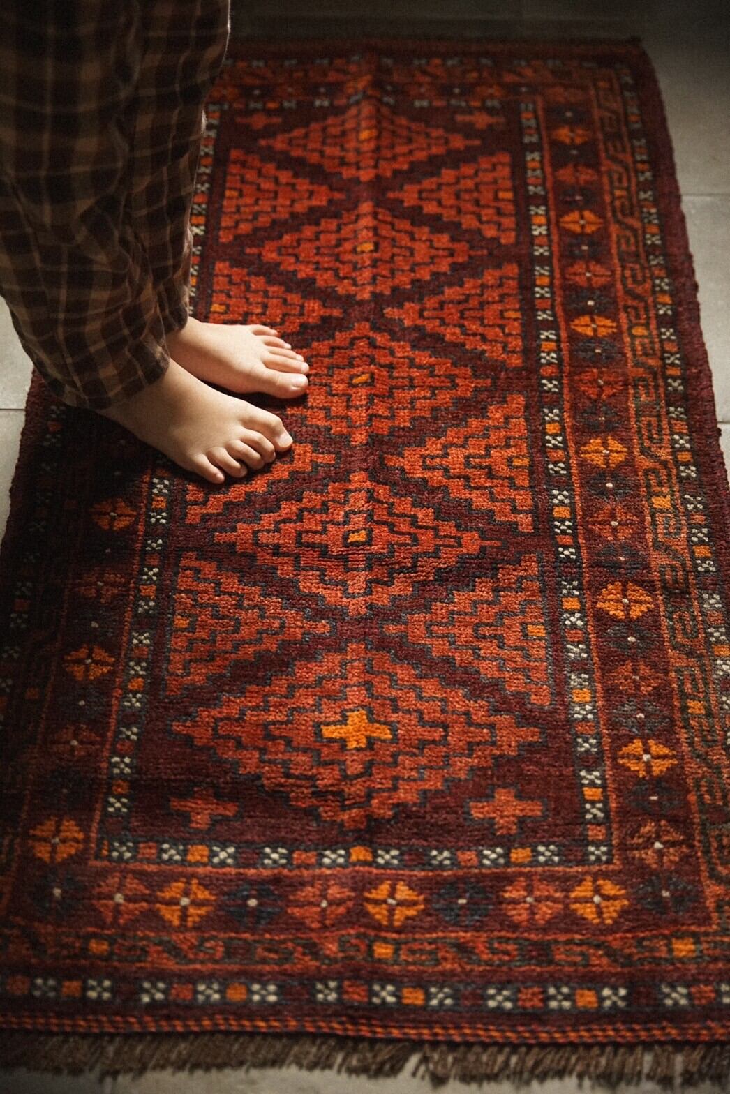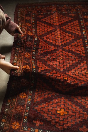 バーリシトと呼ばれる家財や食材を入れたり、屋内ではクッションとして使用される袋状のものをラグに仕立ててもらいました。