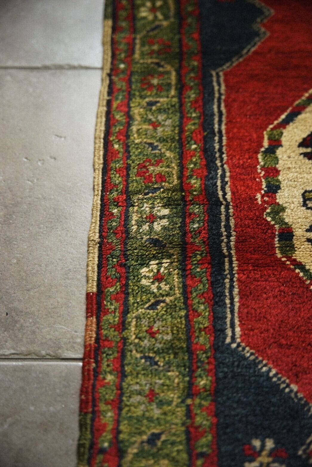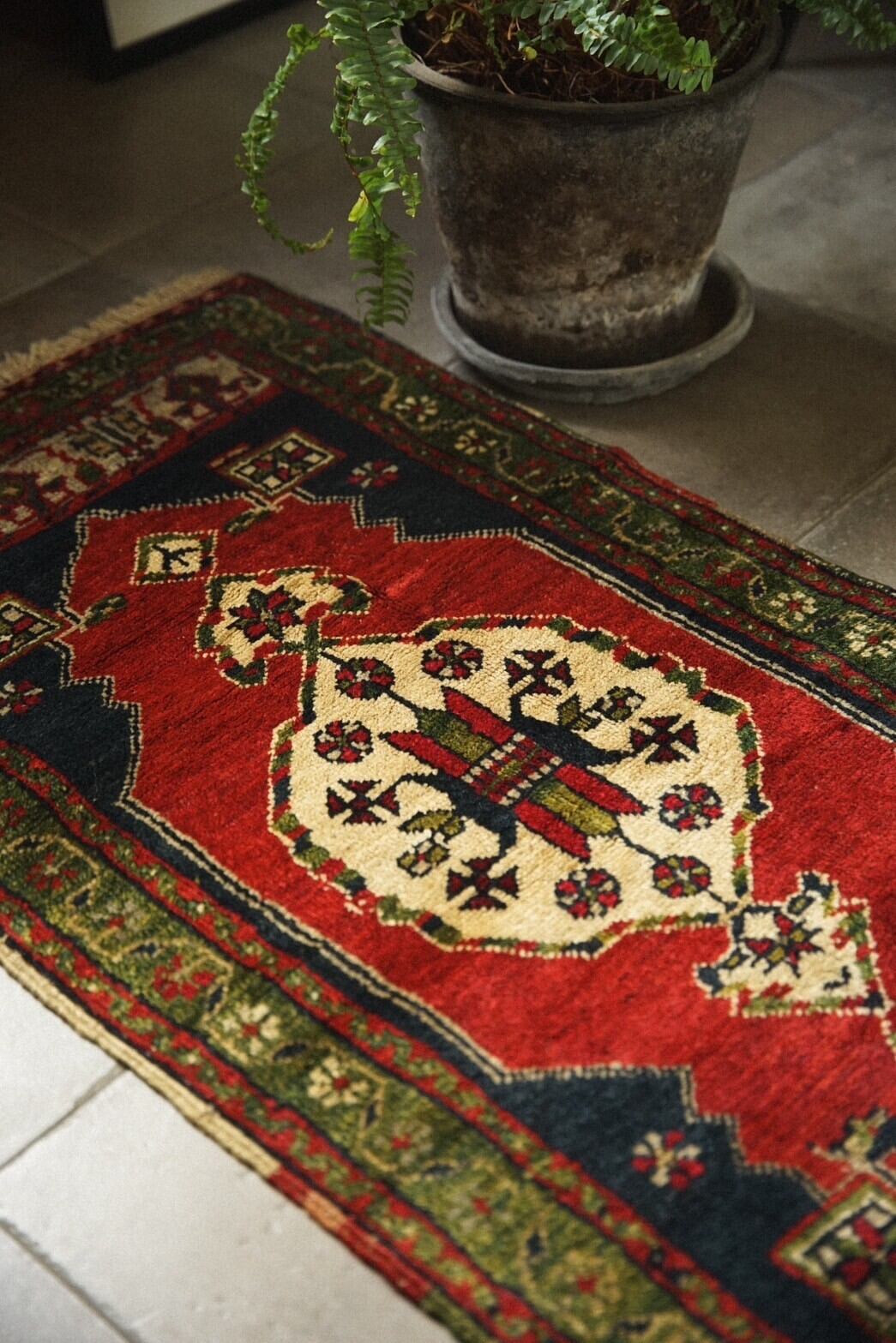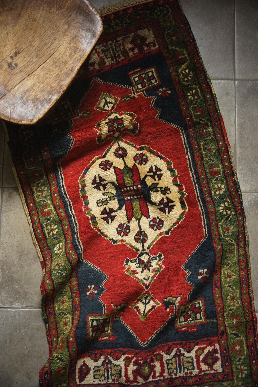トルコのアナトリア地方で織られたヤストゥク(枕)と呼ばれる袋状のものの裏面を外して1枚のラグに仕立ててもらいました。