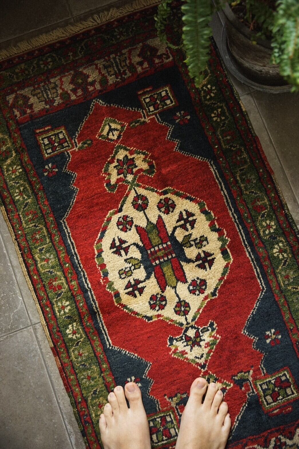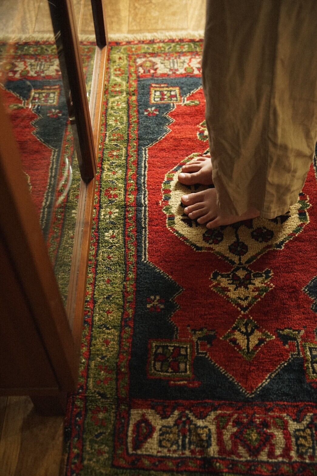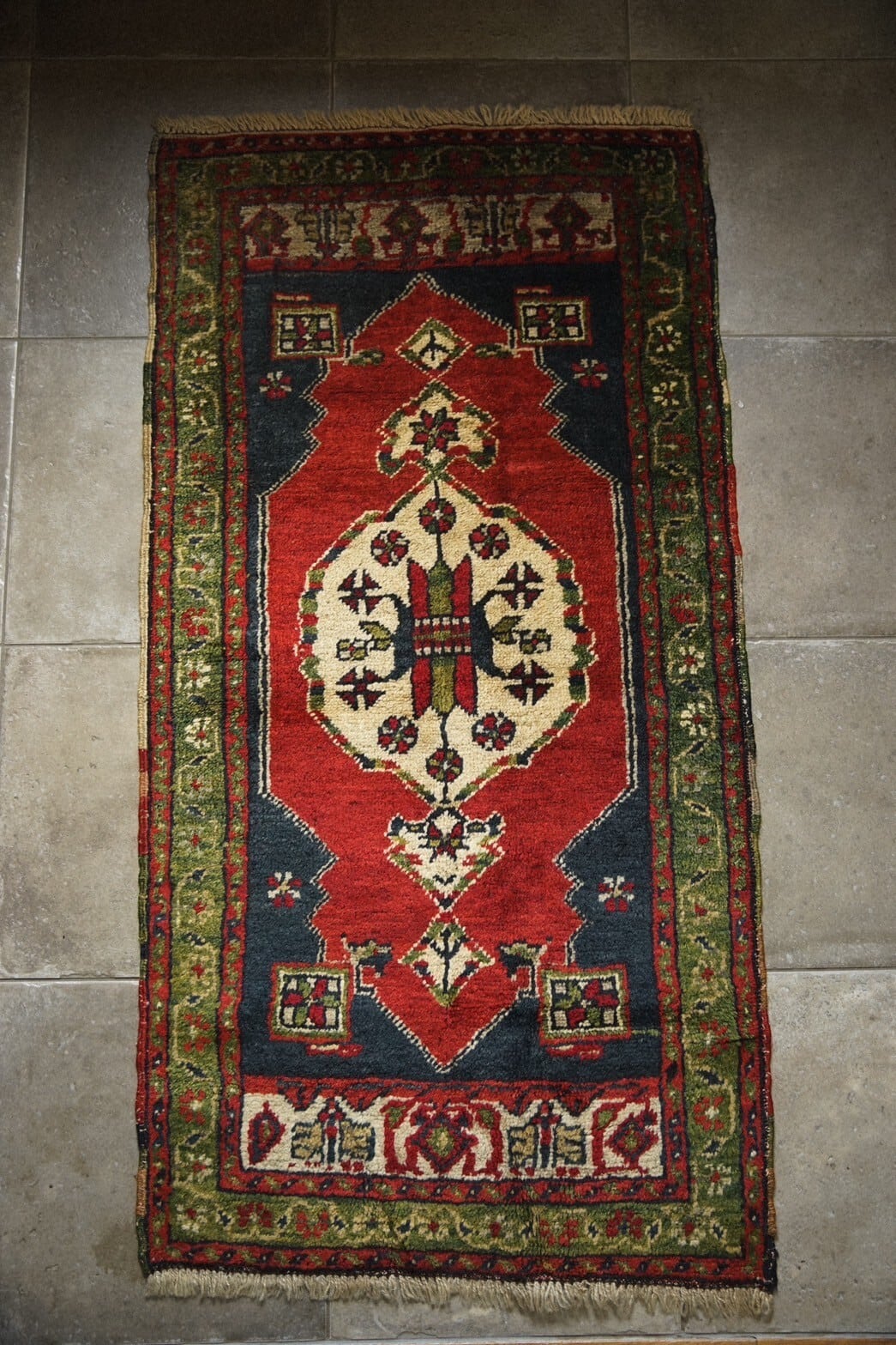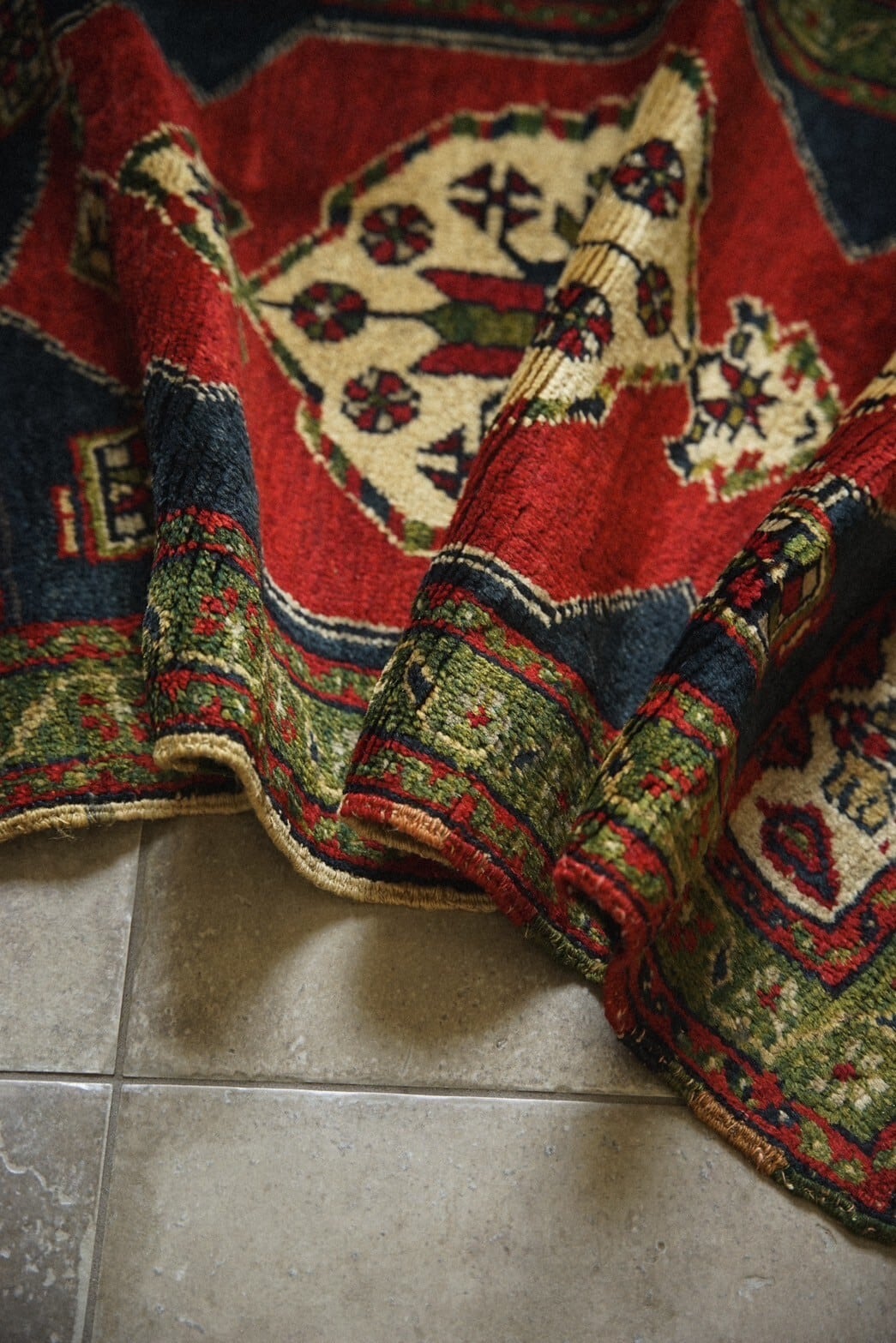 トルコのアナトリア地方で織られたヤストゥク(枕)と呼ばれる袋状のものの裏面を外して1枚のラグに仕立ててもらいました。