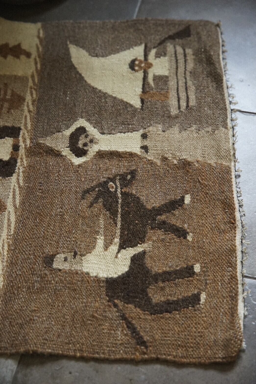 ペルシャ絨毯でも見られる精密画のようなピクトリアルラグとはまた一味違うゆるい雰囲気が魅力のキリムです。