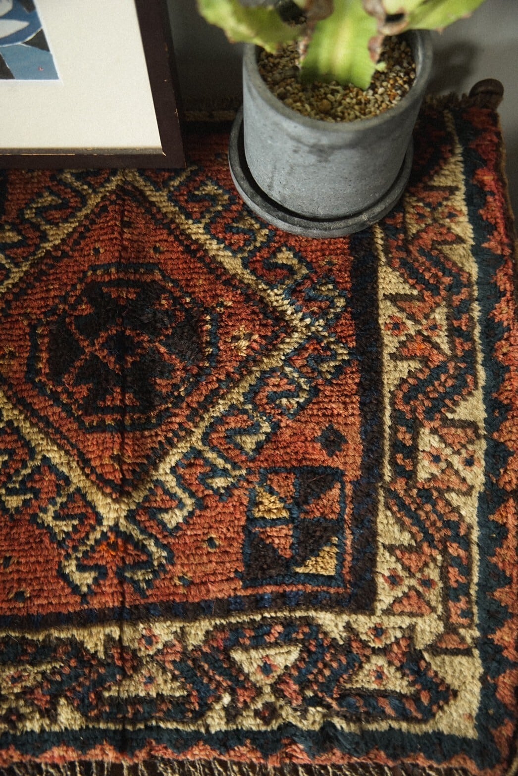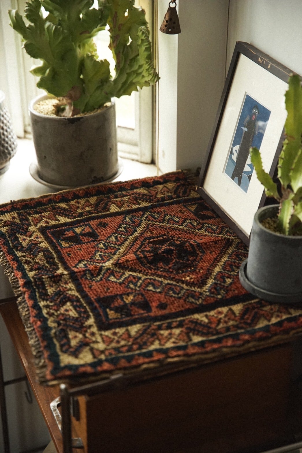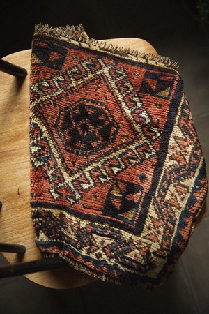 1940年代にカシュガイ族によって織られたサドルバッグの表皮を1枚のラグに仕立ててもらいました。