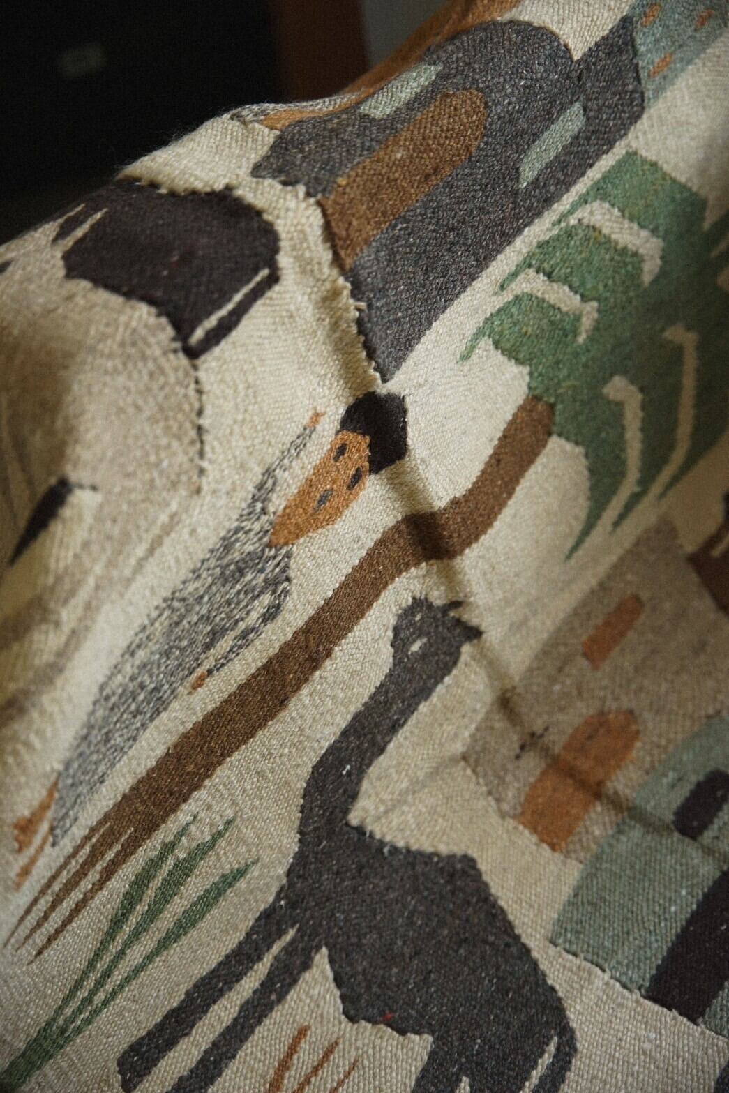 ペルシャ絨毯でも見られる精密画のようなピクトリアルラグとはまた一味違うゆるい雰囲気が魅力のキリムです。