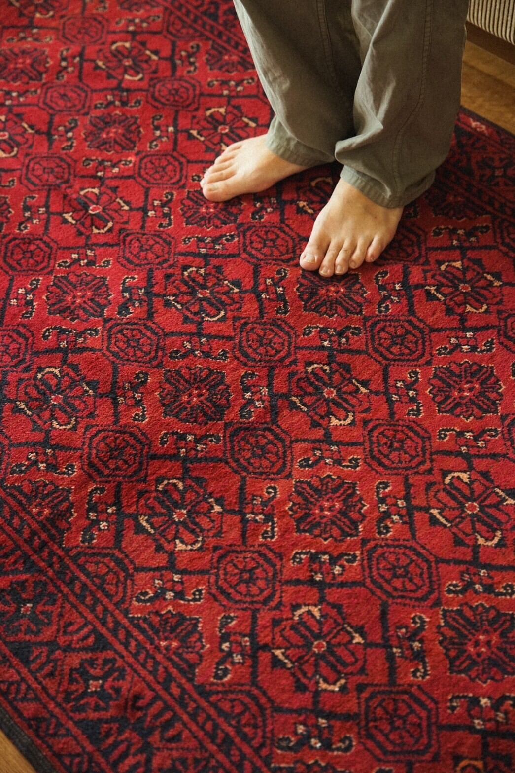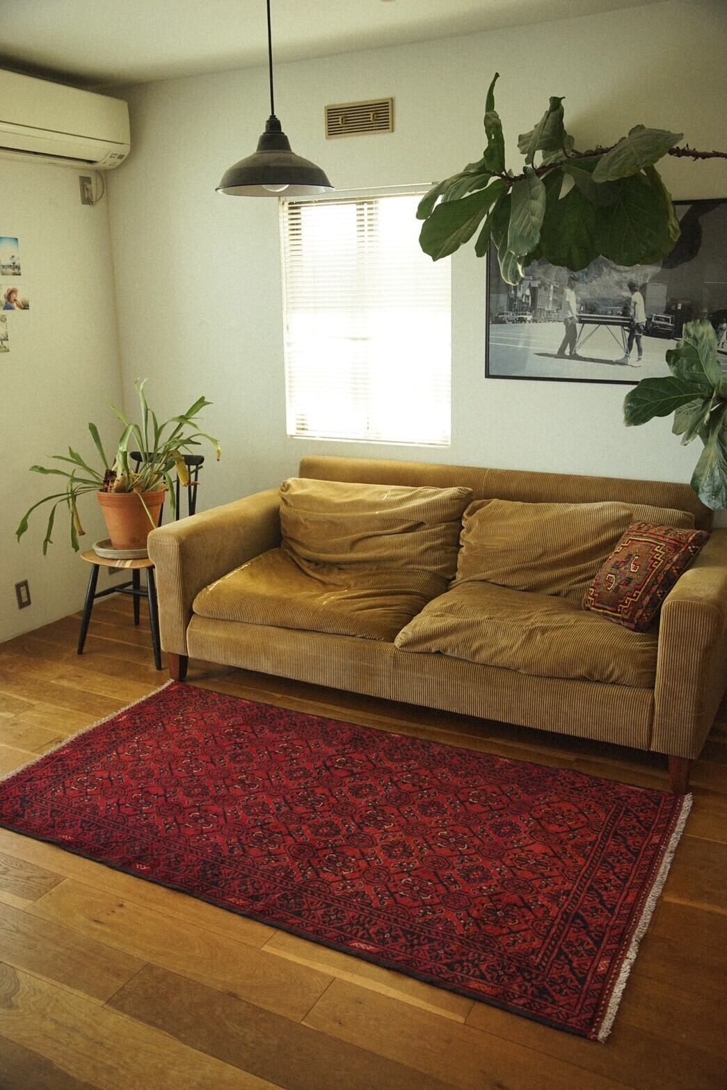 リビングやソファ前、ダイニングテーブルの下にちょうどいいサイズ感です。