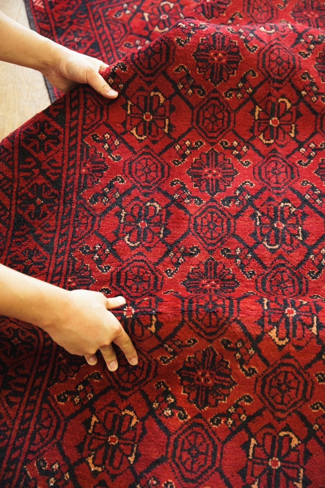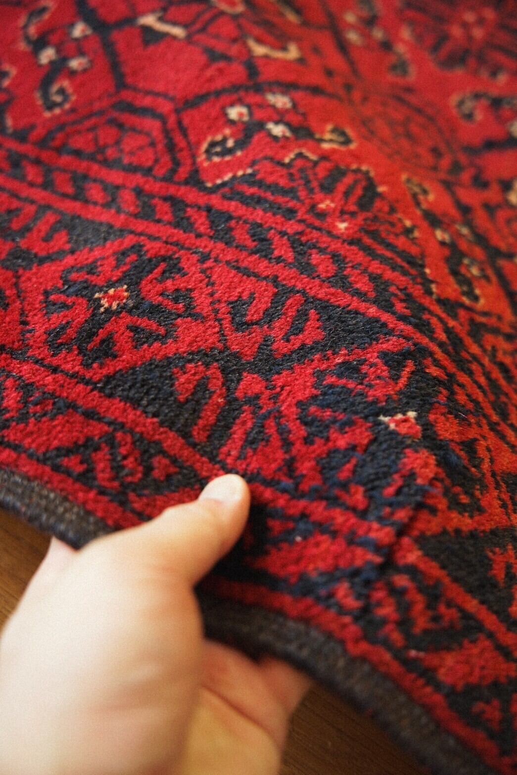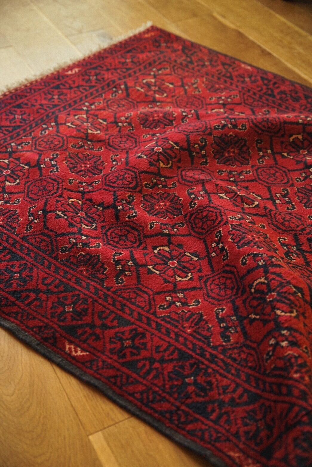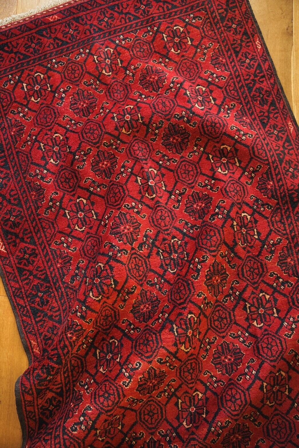 美しいトルクメンレッドに並ぶ花紋様がとても可愛らしいです。