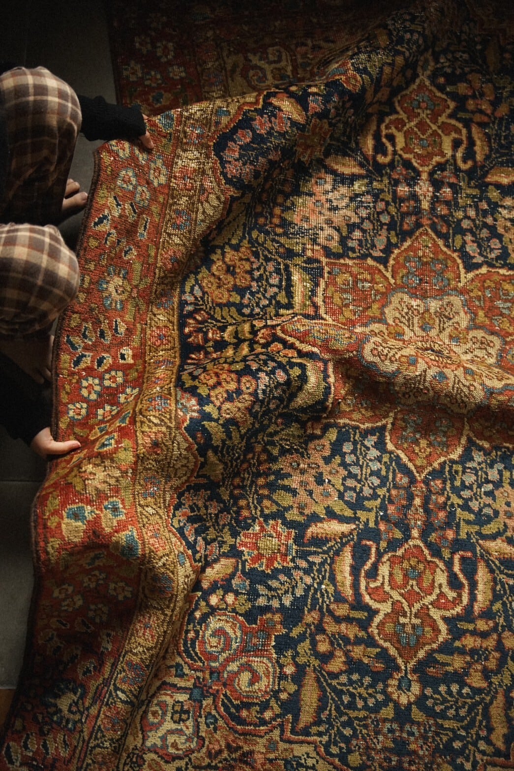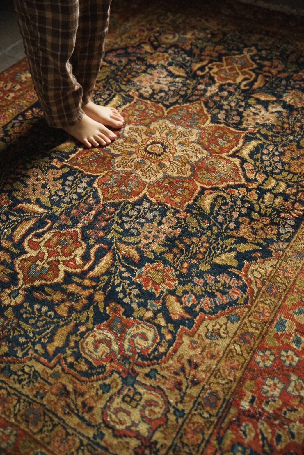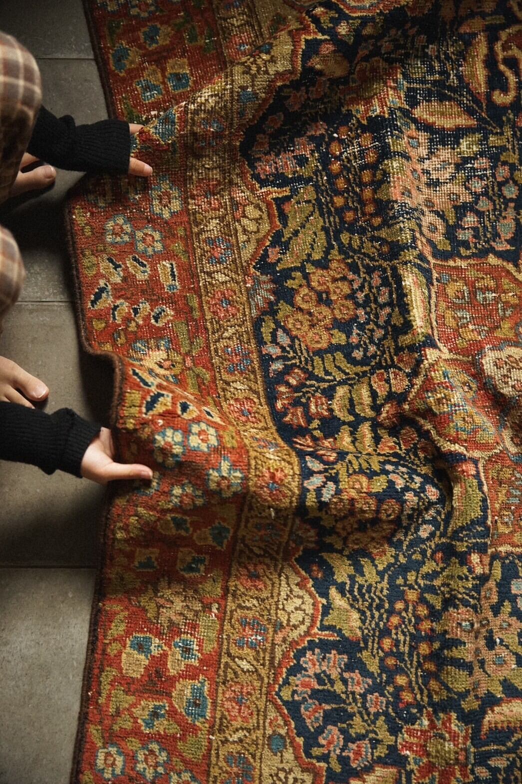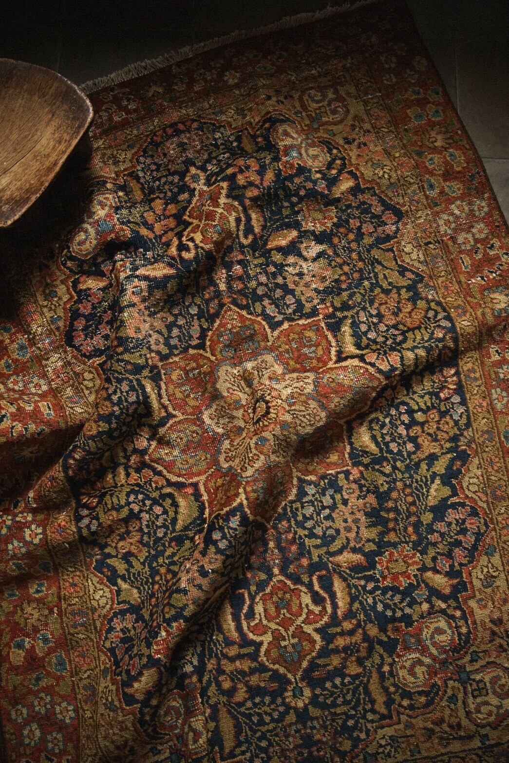 ペルシャ絨毯の中でも有名な産地であるカシャーン産のセミアンティークラグ。