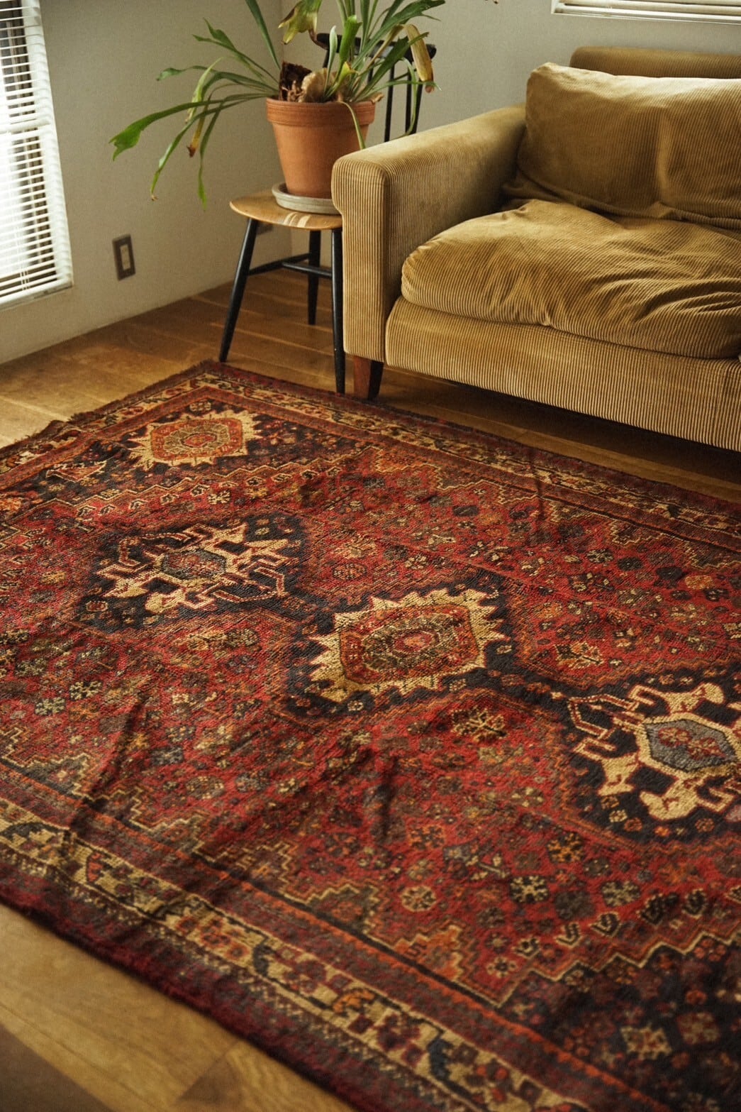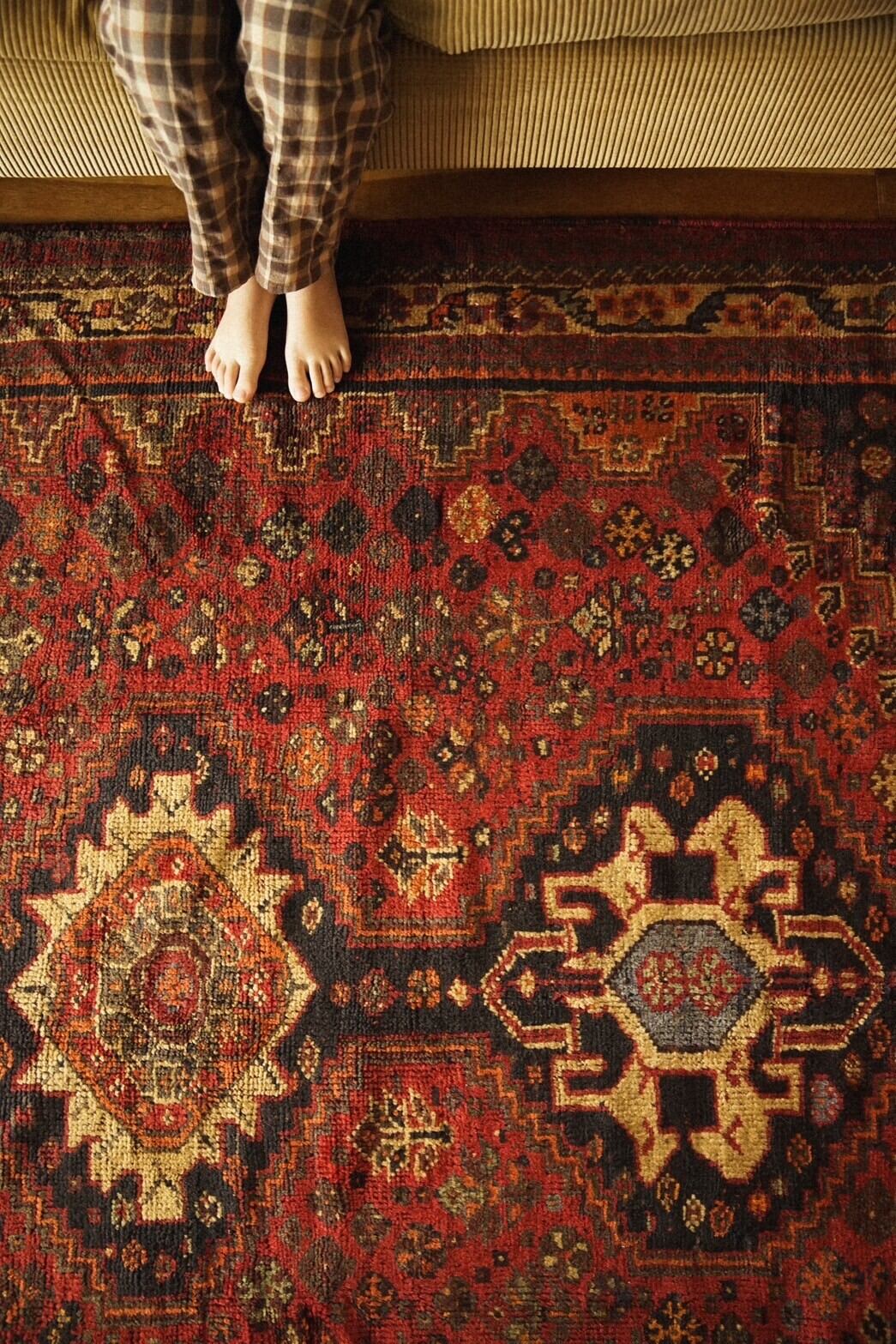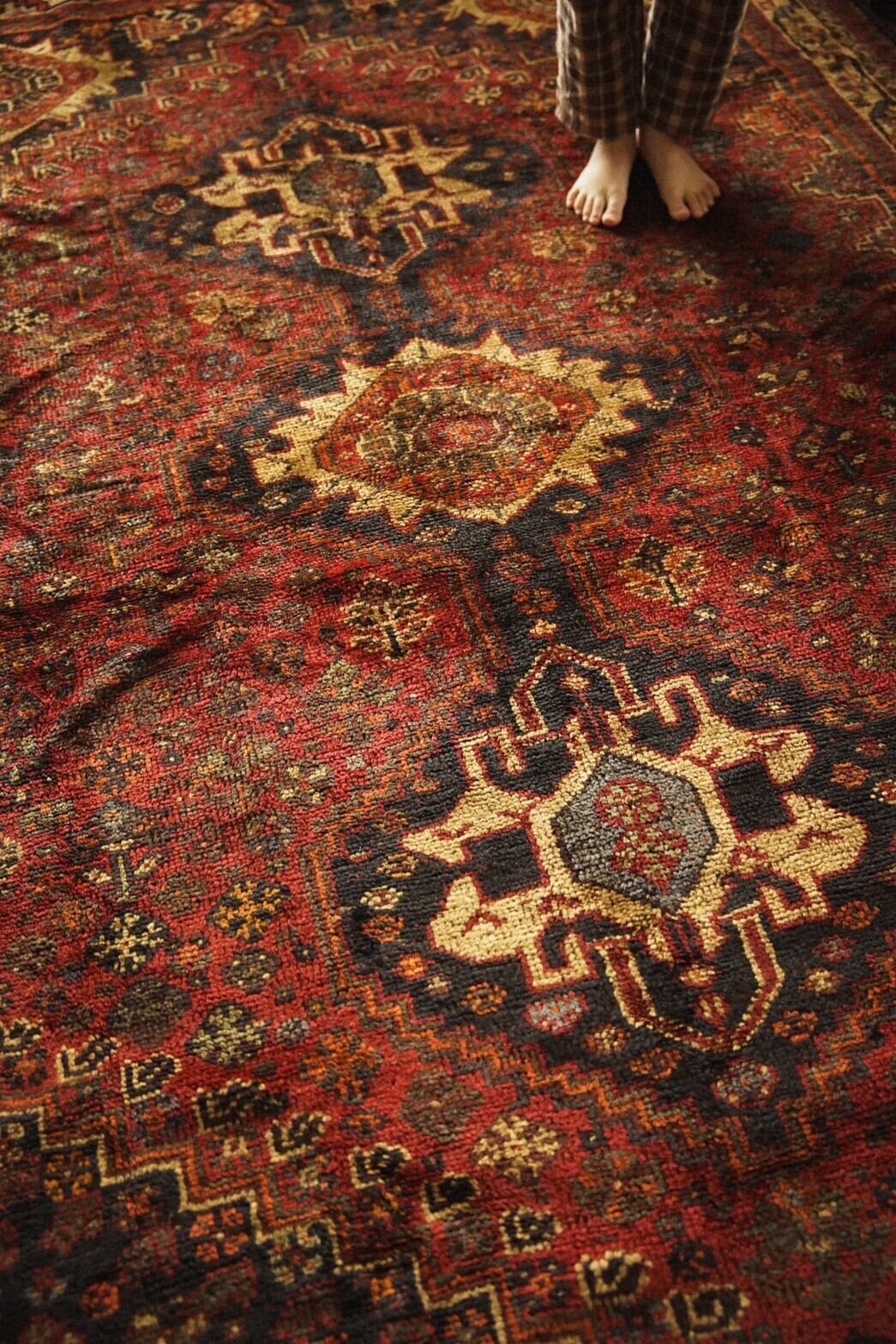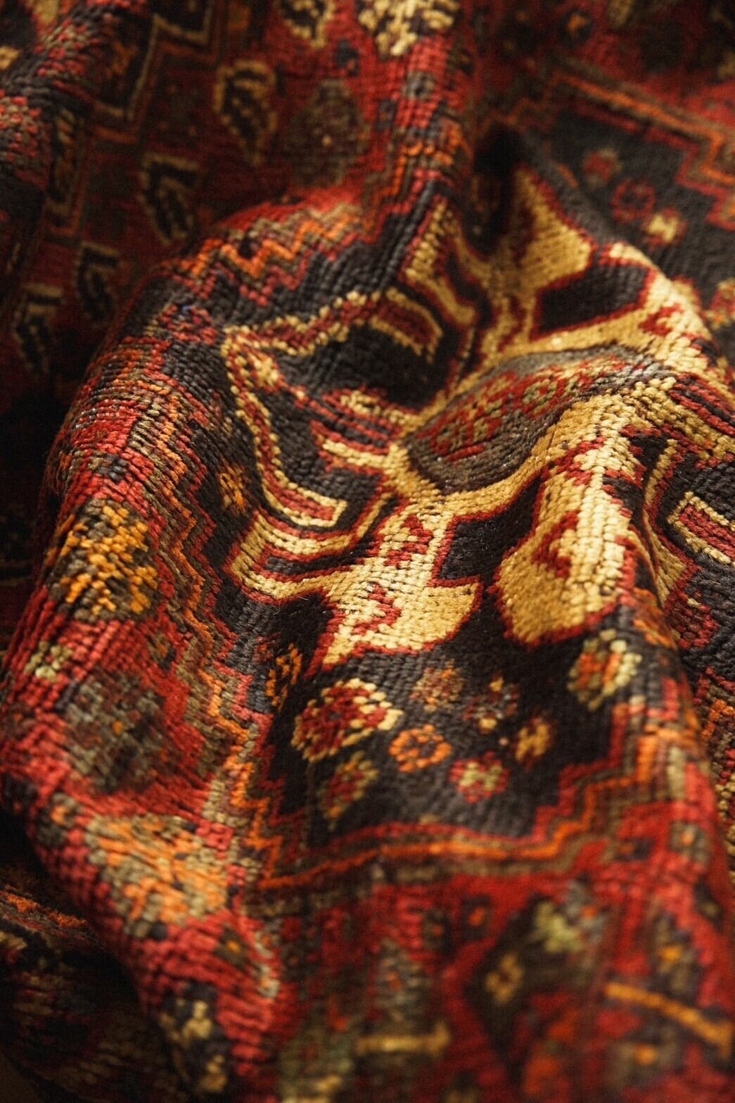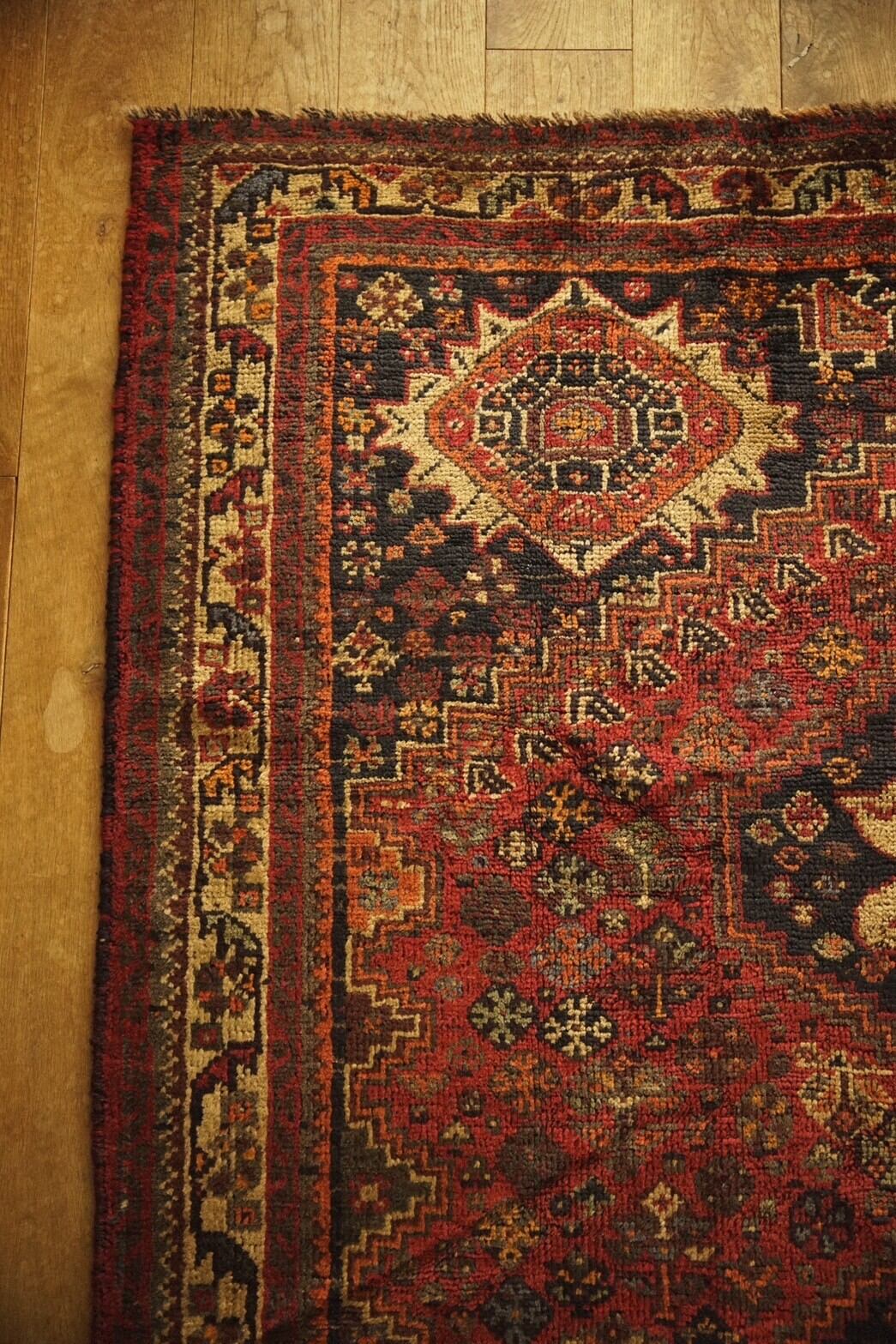 沢山の色味が使われていますが経年によって深みのある色合いになっており、フローリングに敷いても馴染みやすくインテリアにも取り入れやすいかと思います。