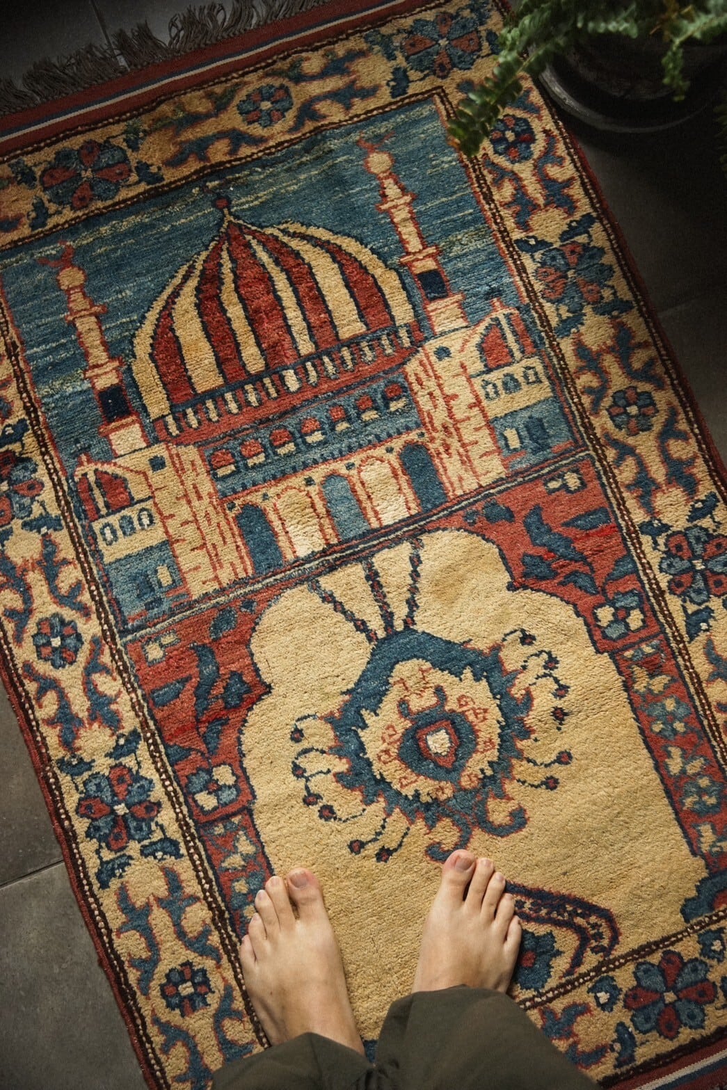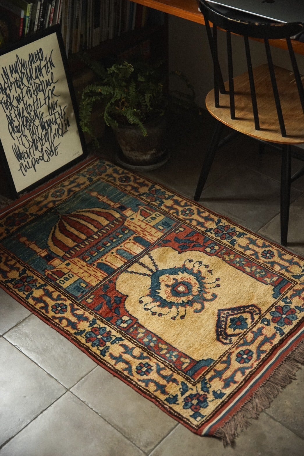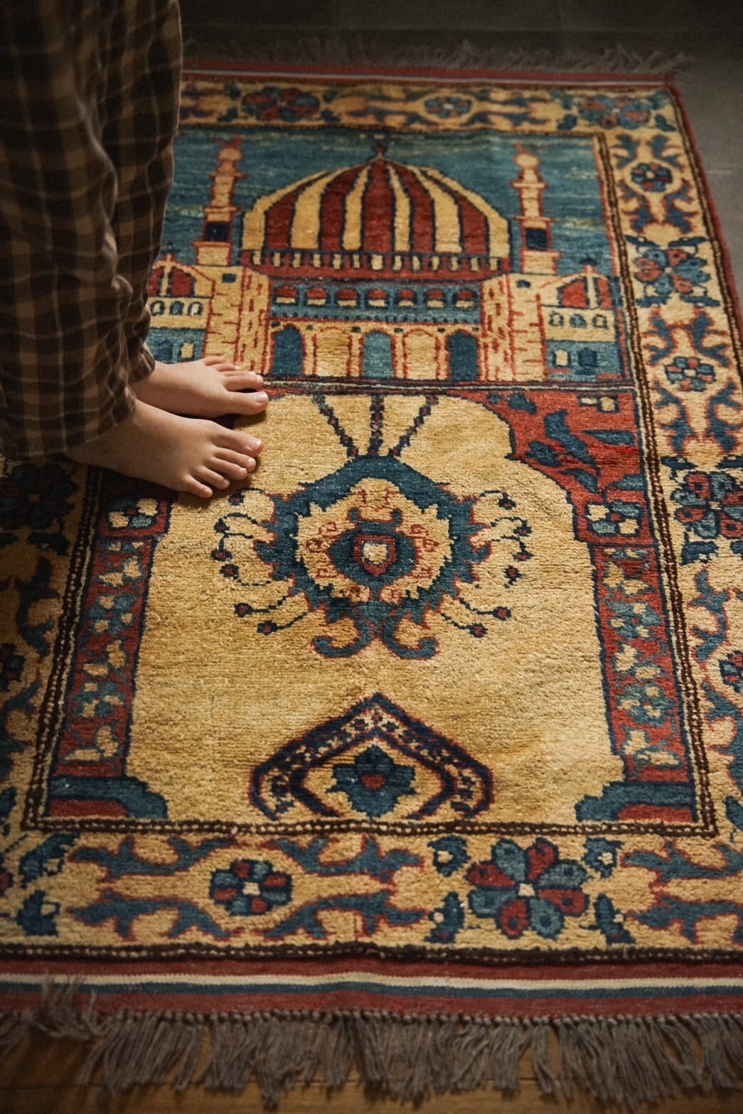 フィールドの上半分にはアーチ形のモスクが描かれ、下半分にはモスクの中にある2本の柱と天井から吊るされたランプ、花が描かれています。