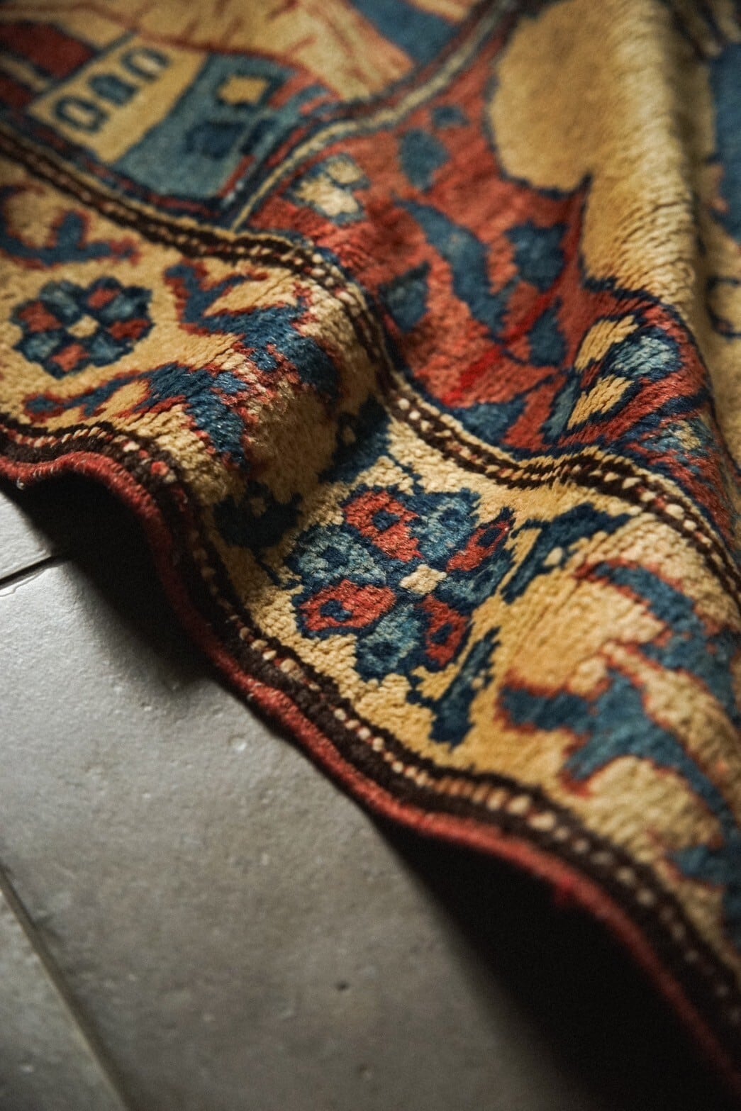 2箇所リペア跡がございますが、綺麗に補修されています。全体的にコンディションは若いラグということもあり良いかと思います。