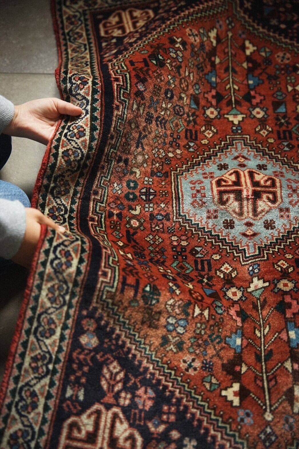 イラン西部に位置する絨毯の集積所として有名な古都ハマダン周辺で織られたラグ。