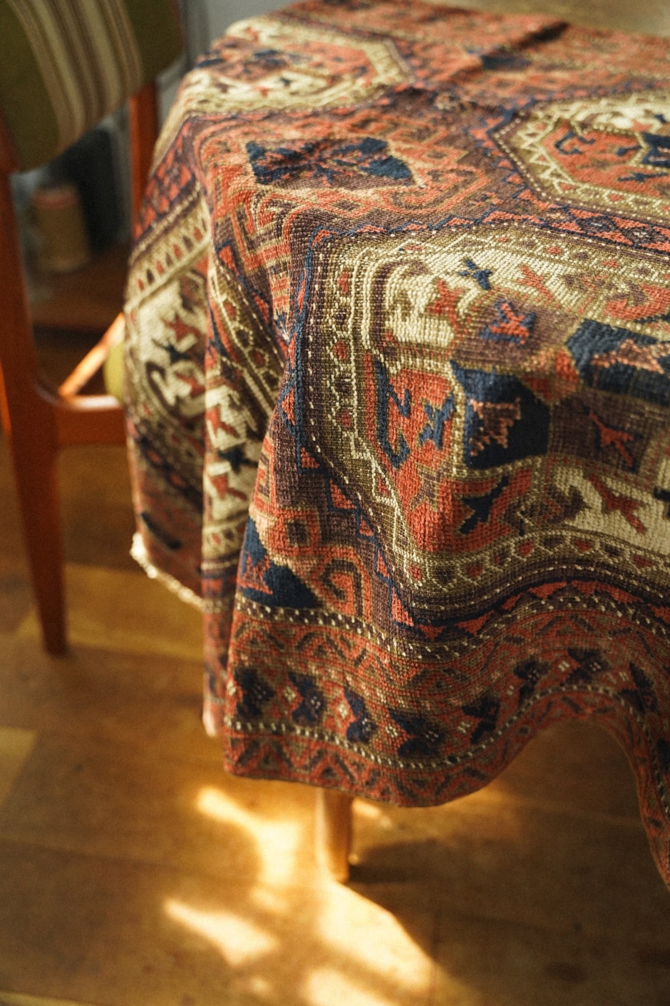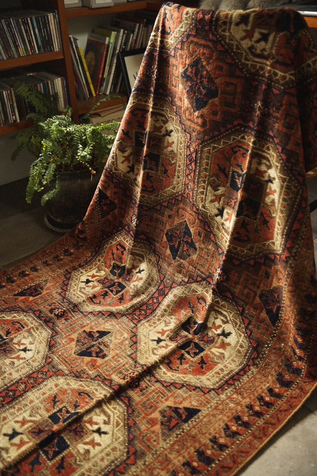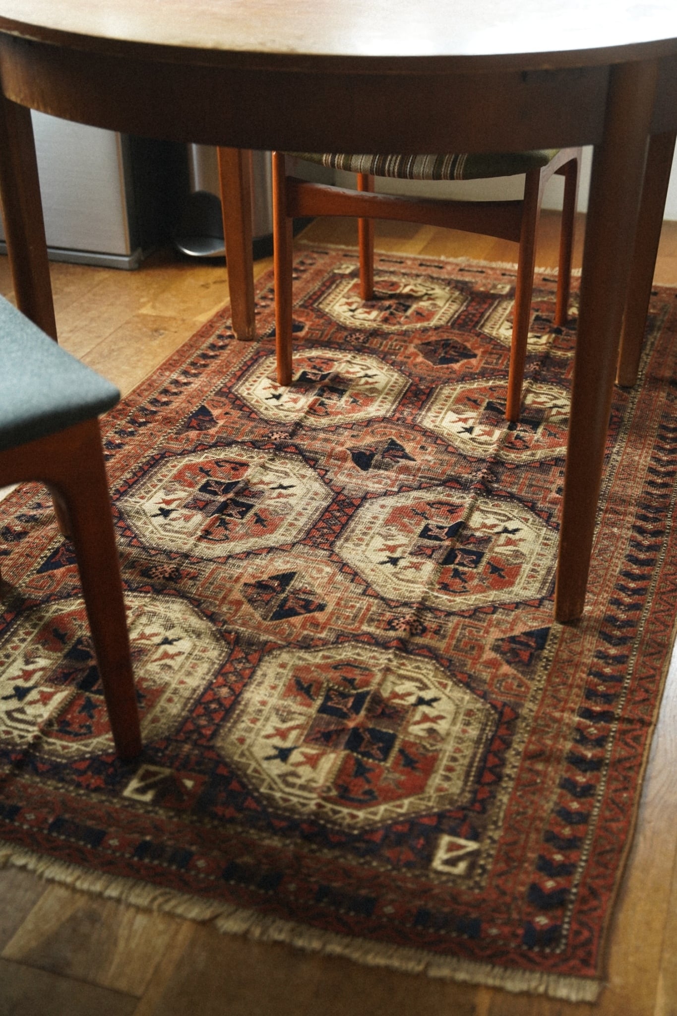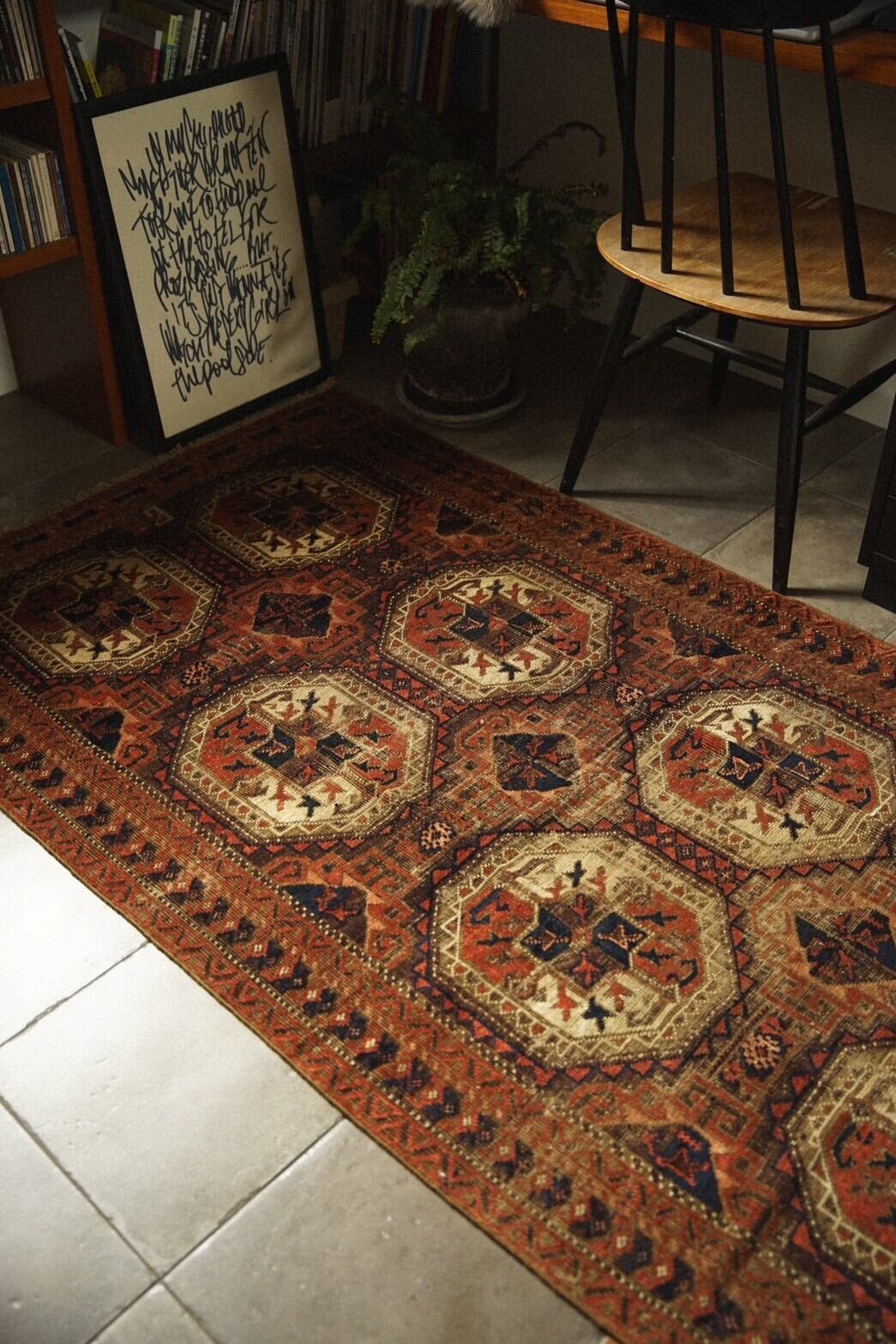 一枚敷くだけでお部屋の雰囲気が格段に素敵になるアンティークラグです。