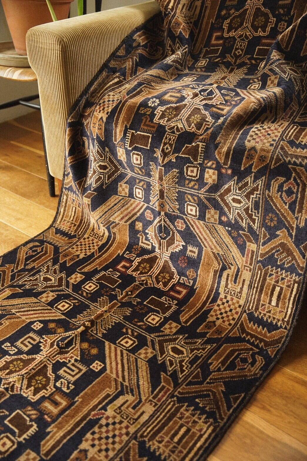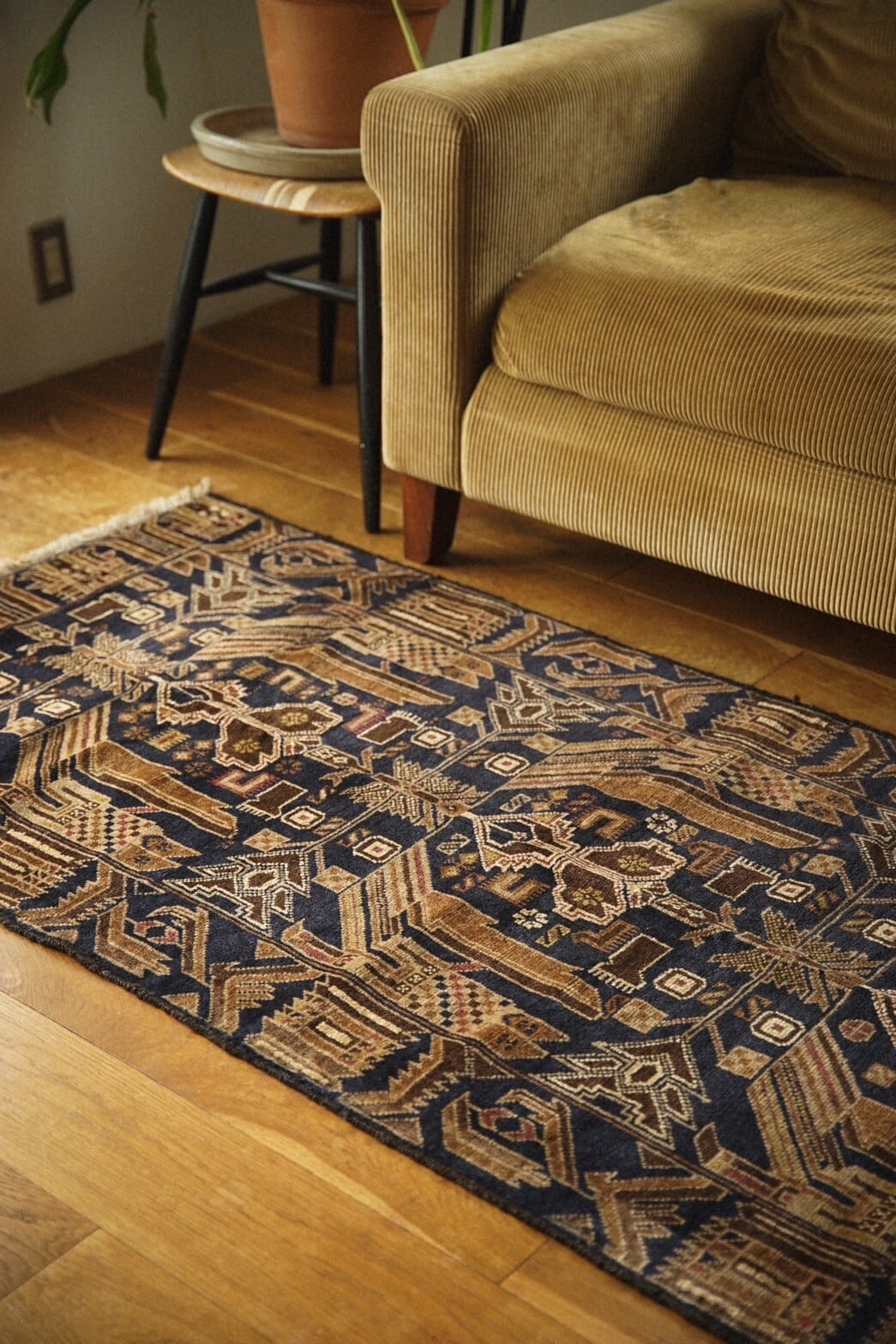 1960年代に織られたアフガニスタン産のZakani familyデザインのバルーチランナーラグ。
