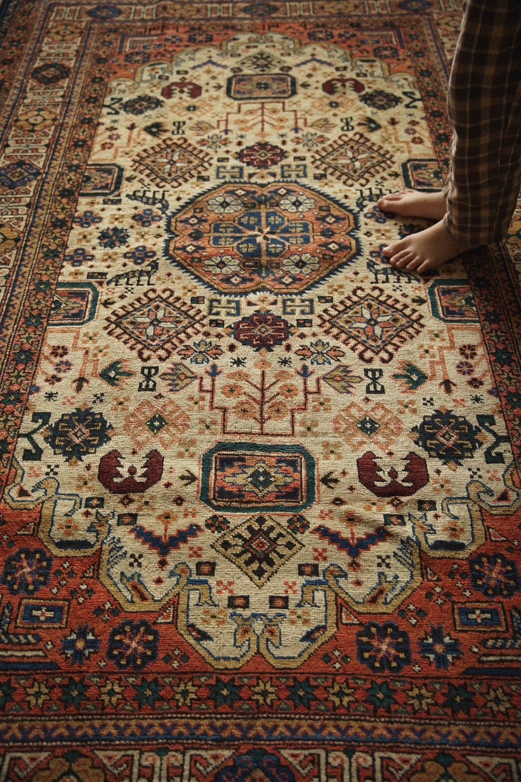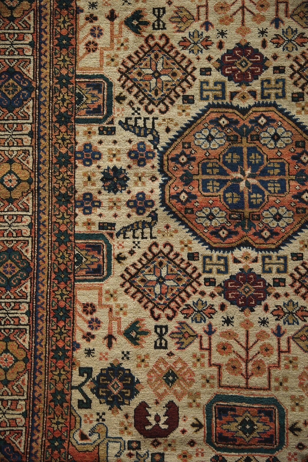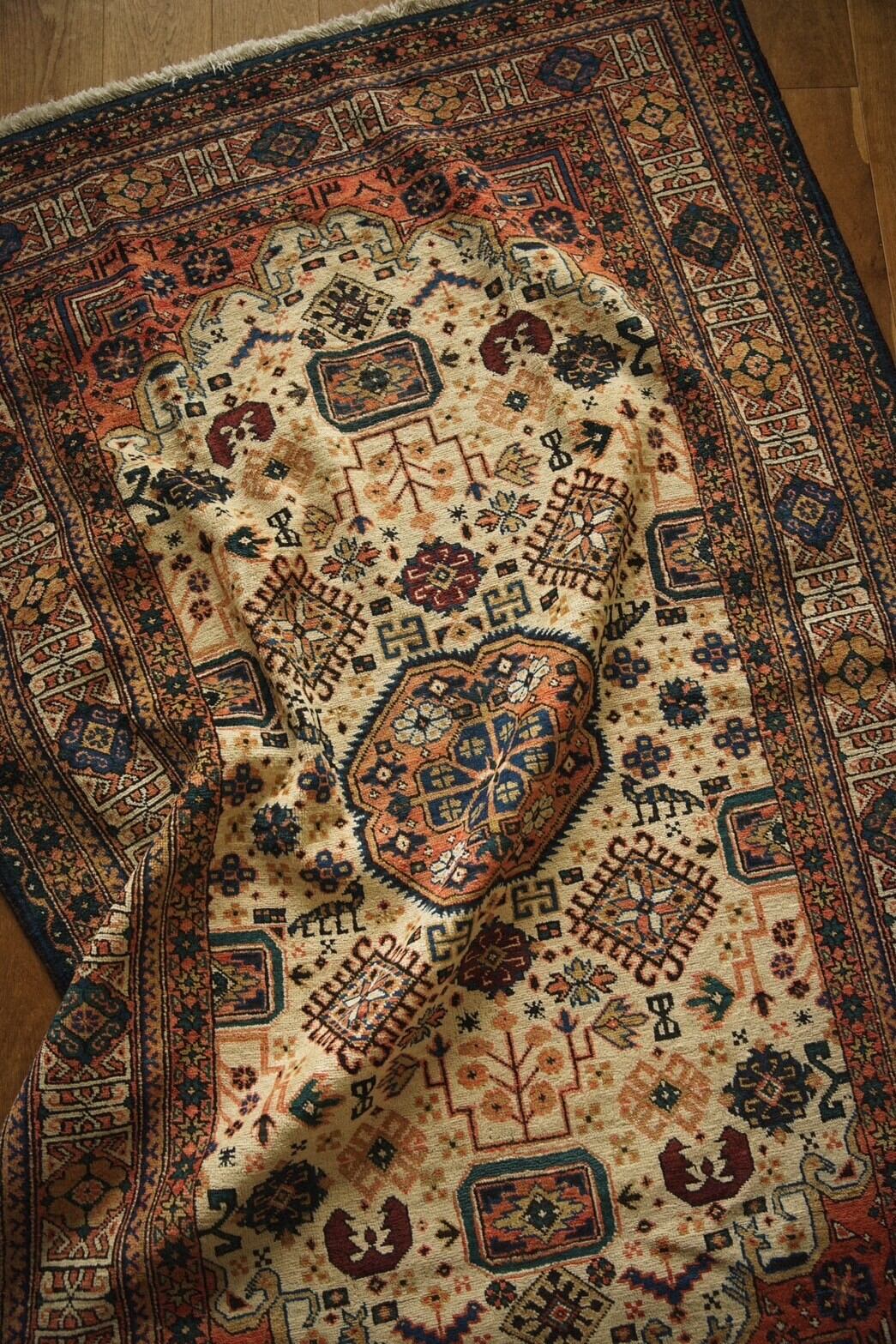 1940年代にイラン北西部のアルダビール近郊で織られたセミアンティークのペルシャ絨毯。