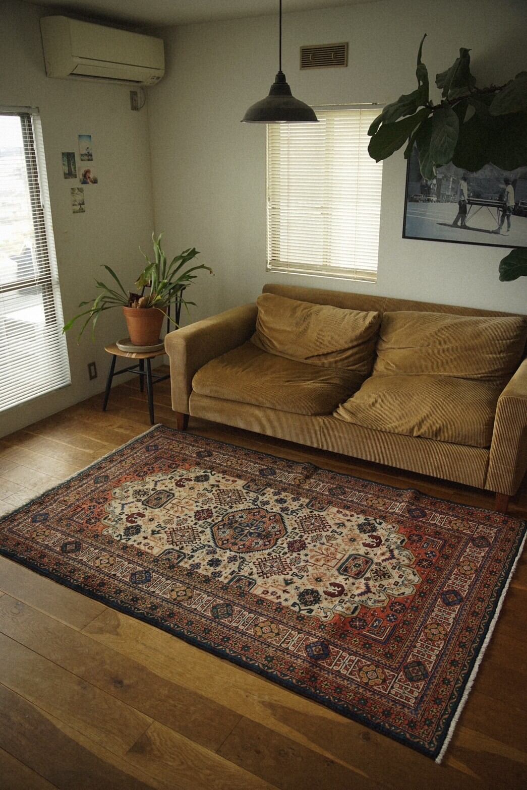 リビングやソファ前、ダイニングテーブルの下や書斎などにおすすめのサイズ感です。