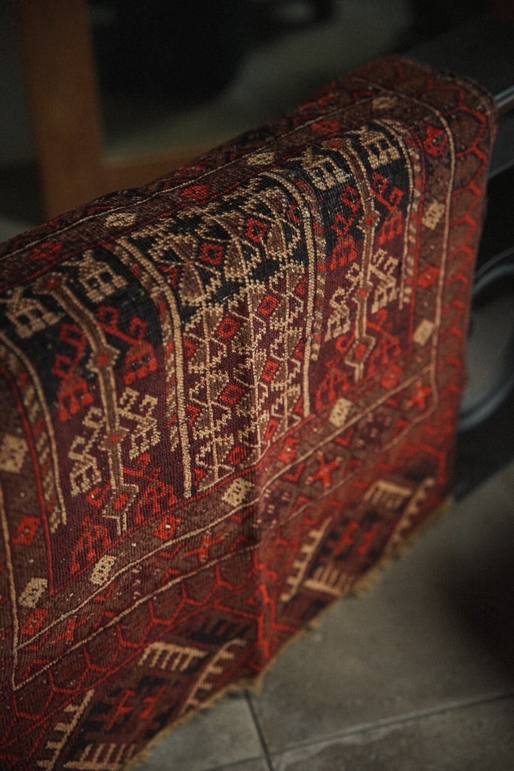 1980年代に織られたトルクメンのサドルバッグのバッグフェイスを一枚のラグに仕立ててもらいました。