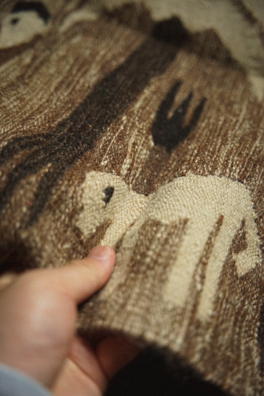 ペルシャ絨毯でも見られる精密画のようなピクトリアルラグとはまた一味違うゆるい雰囲気が魅力のキリムです。