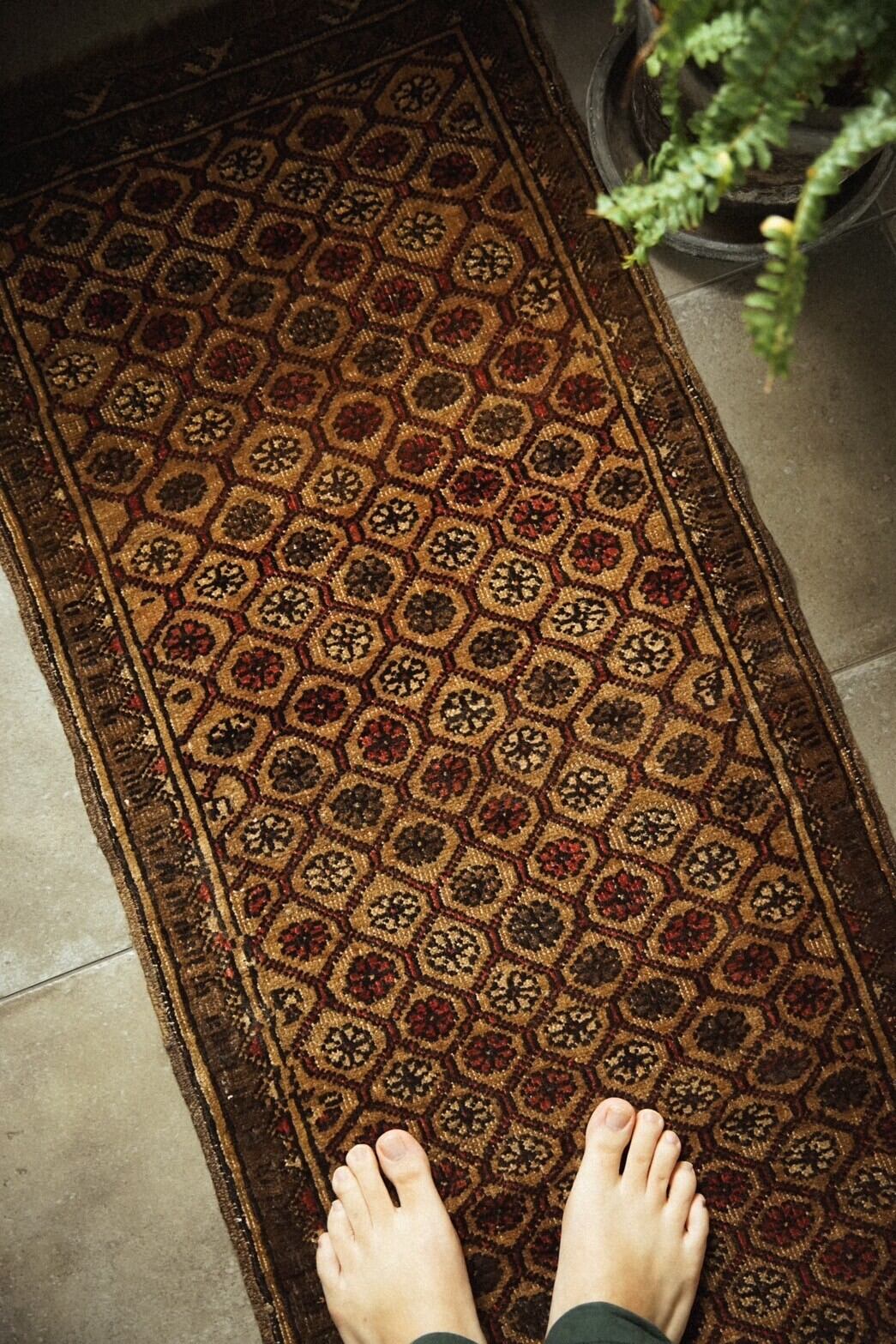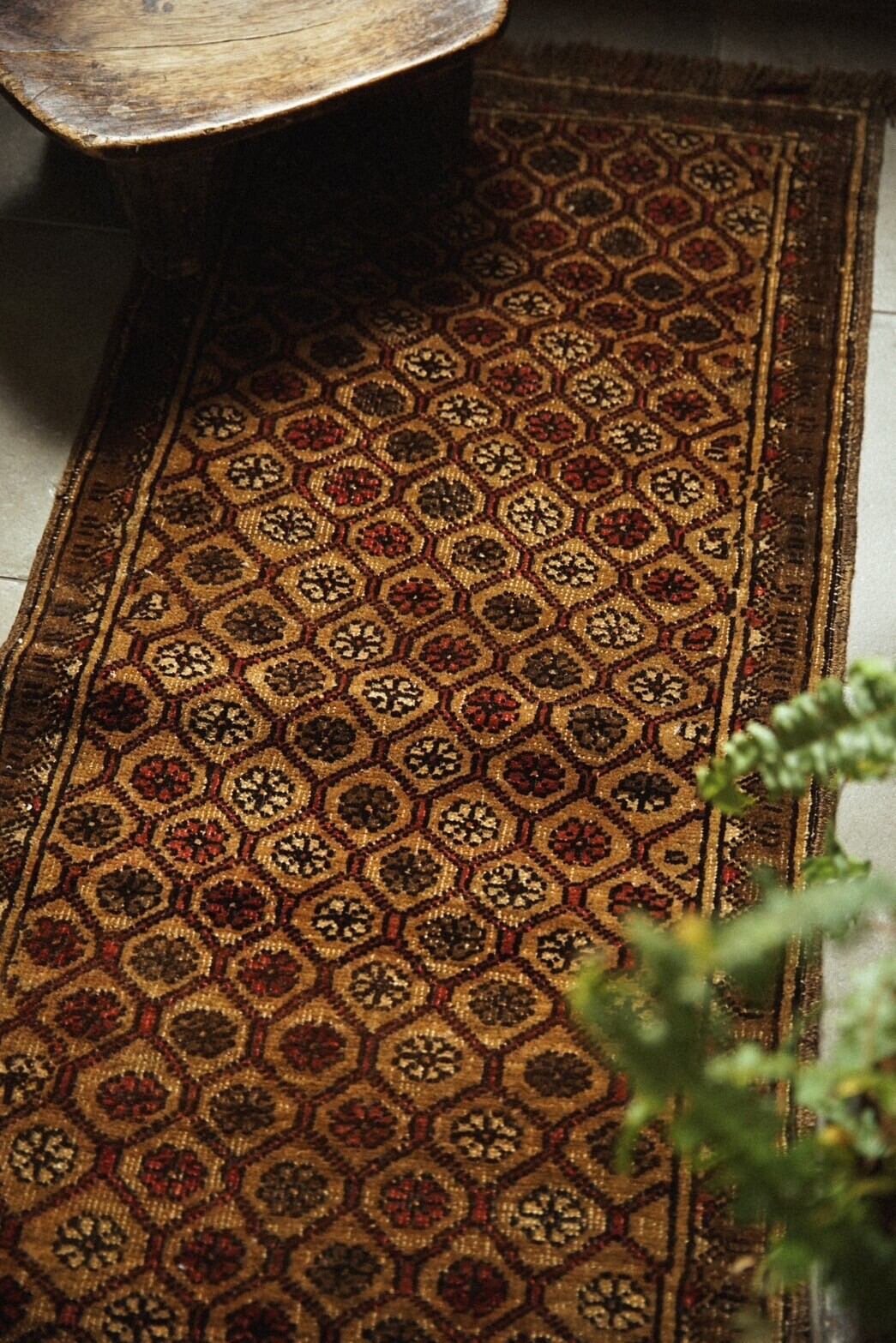 パイルは短めタイプで経年による擦れがヴィンテージラグの味になっています。