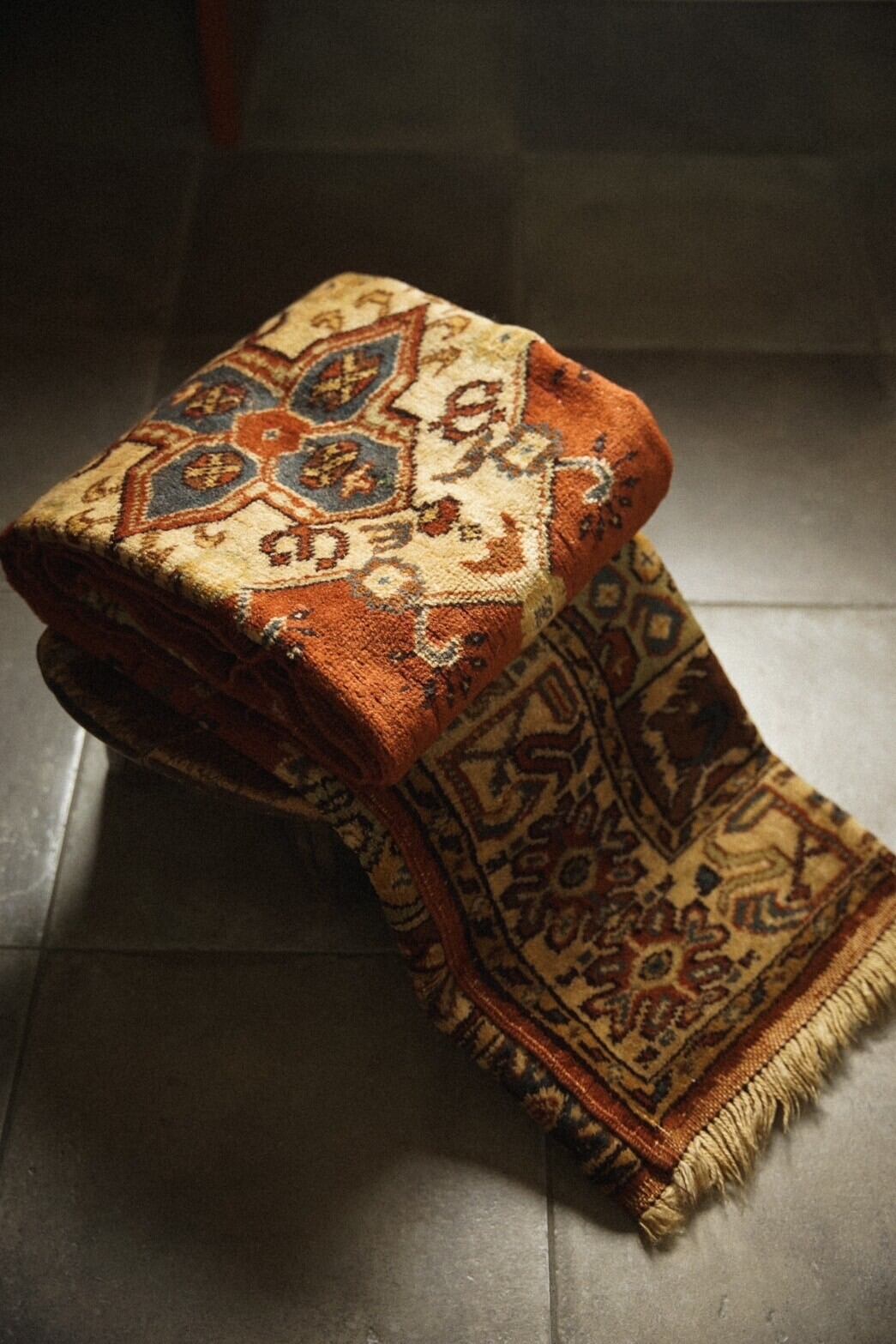 テラコッタのフィールドにシャンデリアのような華やかなメダリオン。