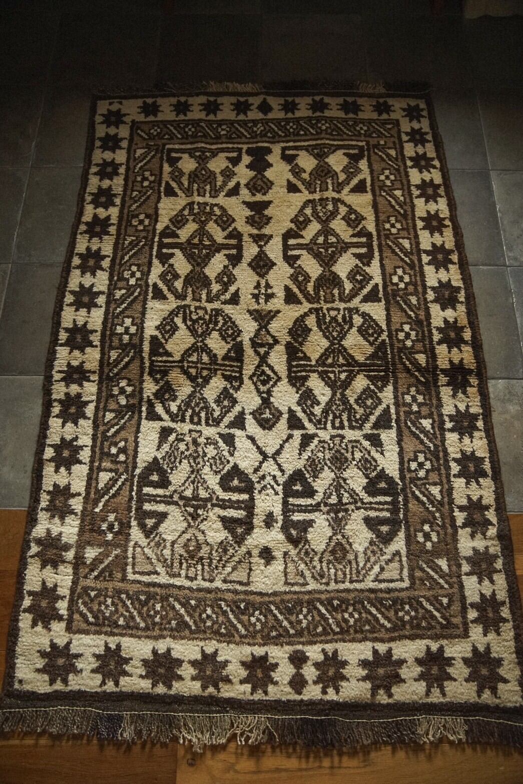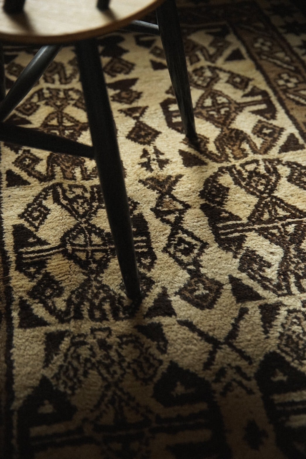 染色していない原毛色のウールで織られたナチュラルカラーな色味と、少しゆるい雰囲気のデザインがとてもかわいいタイマニラグ。