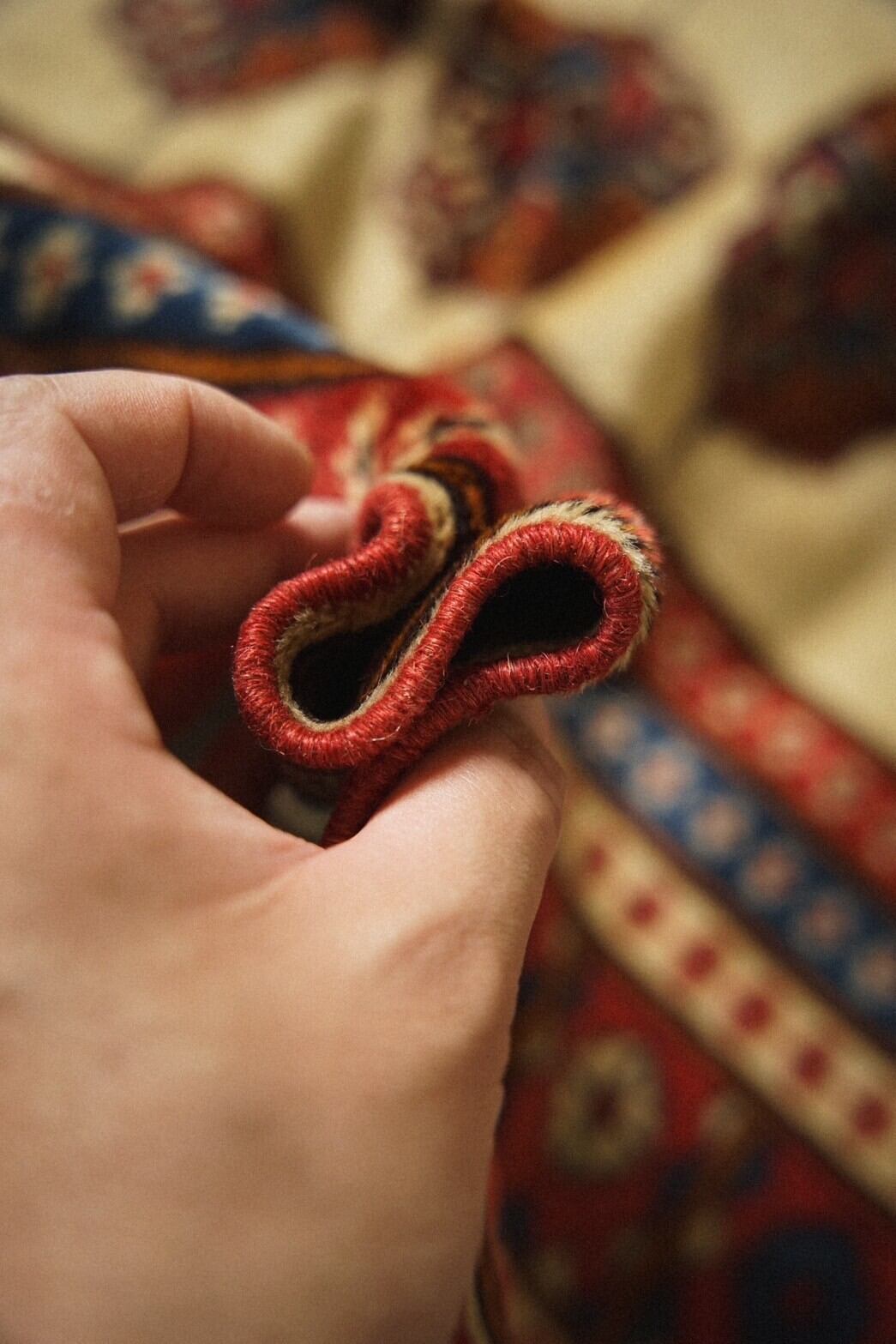 そして何よりこのラグの一番の推しポイントはアイボリー、ブルー、レッド、マスタードのお洒落な配色。
