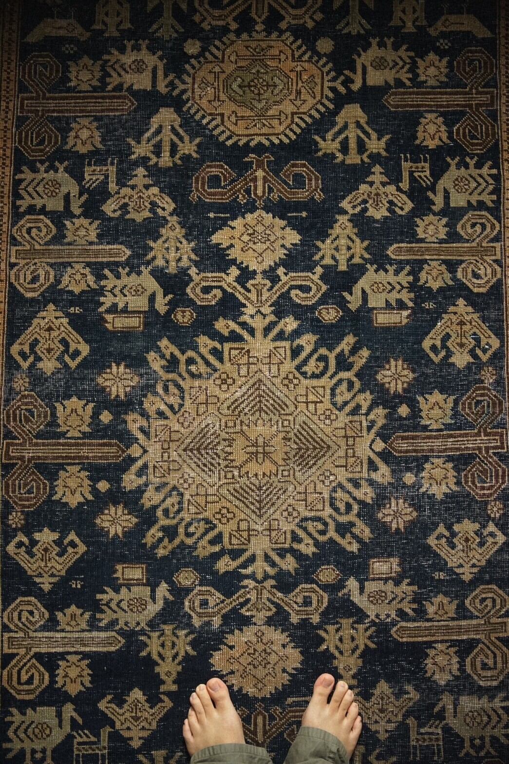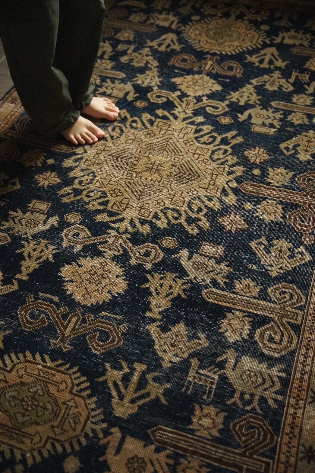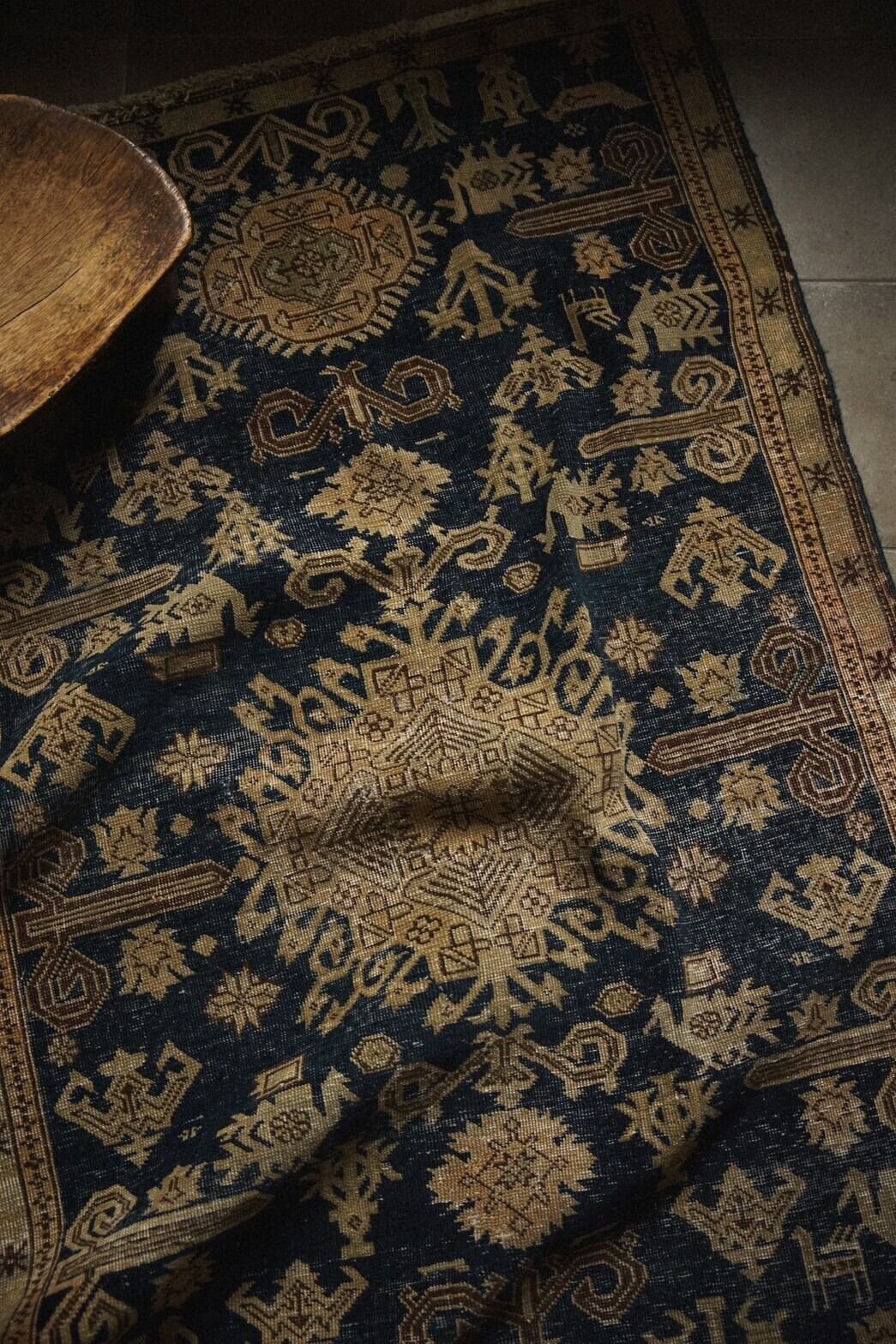 またパイルが低くなることにより本来のラグのデザインやモチーフの美しさがくっきりと浮かび上がっています。