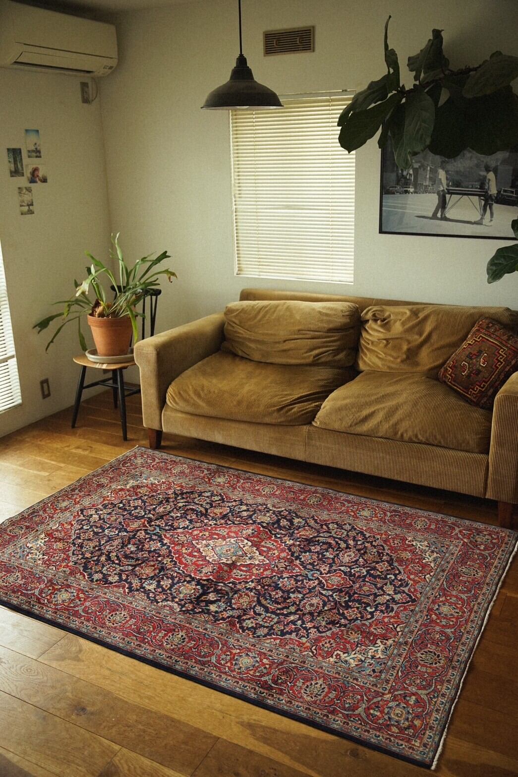 ペルシャ絨毯の中でも有名な産地であるカシャーン産のセミアンティークラグ。