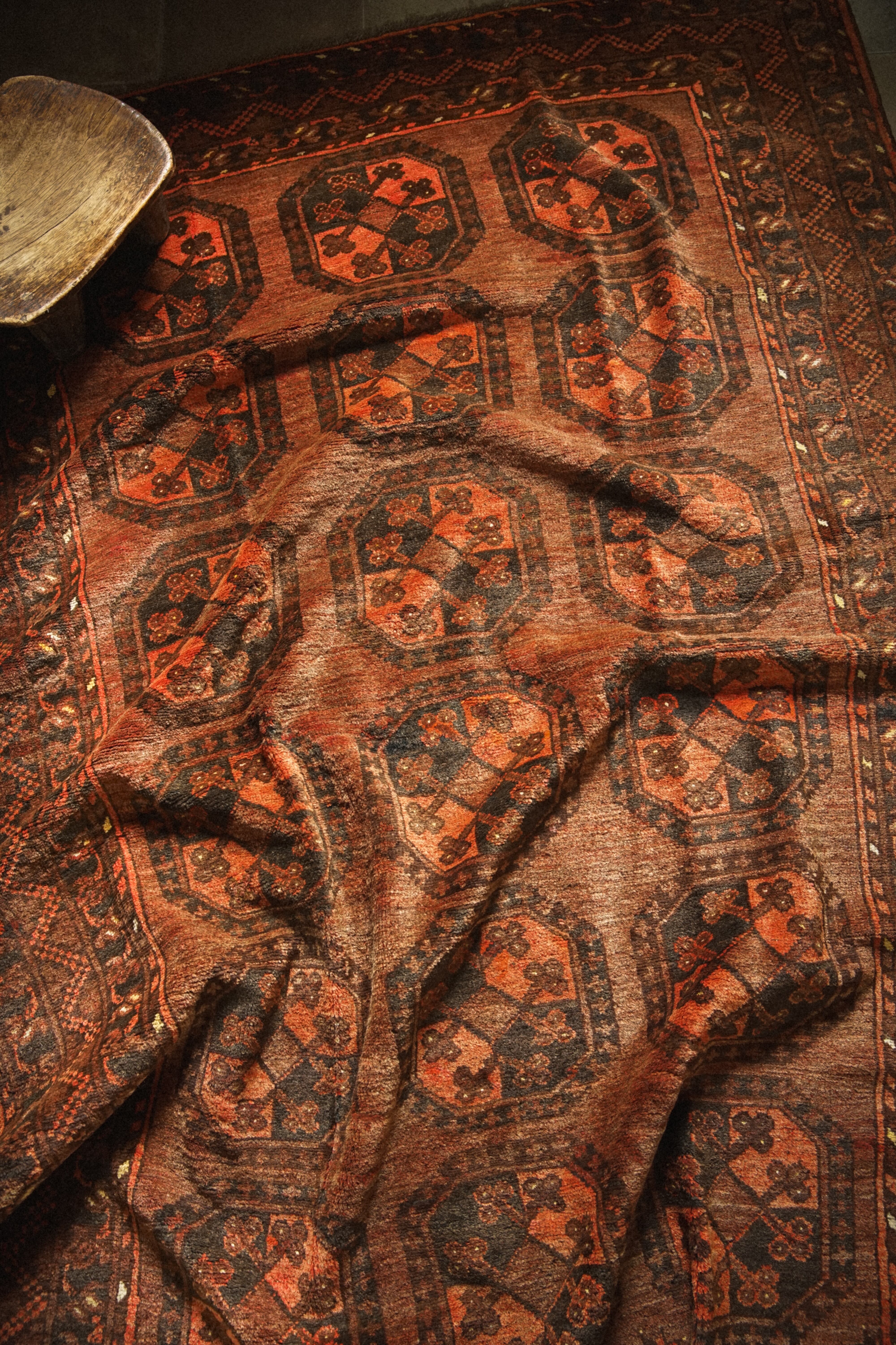 シンプルなデザインですが、渋い色味と味わいのある雰囲気がどんな空間にも馴染んでくれる魔法の絨毯のような一枚です。