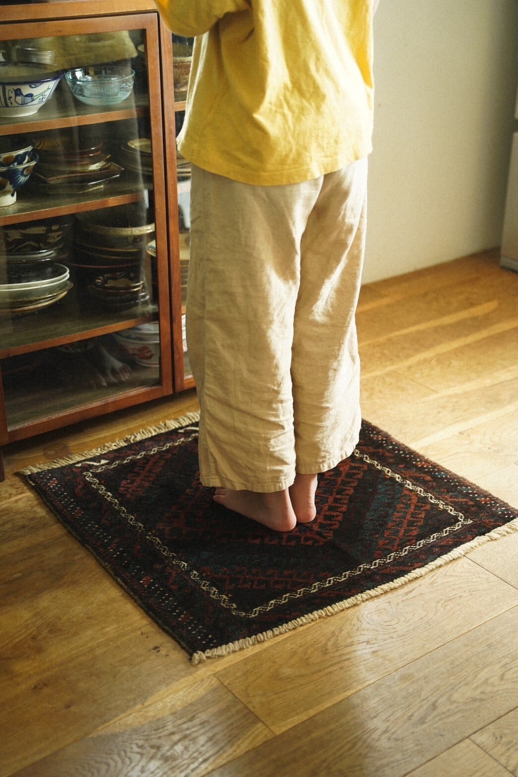 使いやすいスクエア型のラグは玄関や姿見の前、椅子の座面に敷いたり、キャンプでの使用や壁掛けにして飾るのもおすすめです。