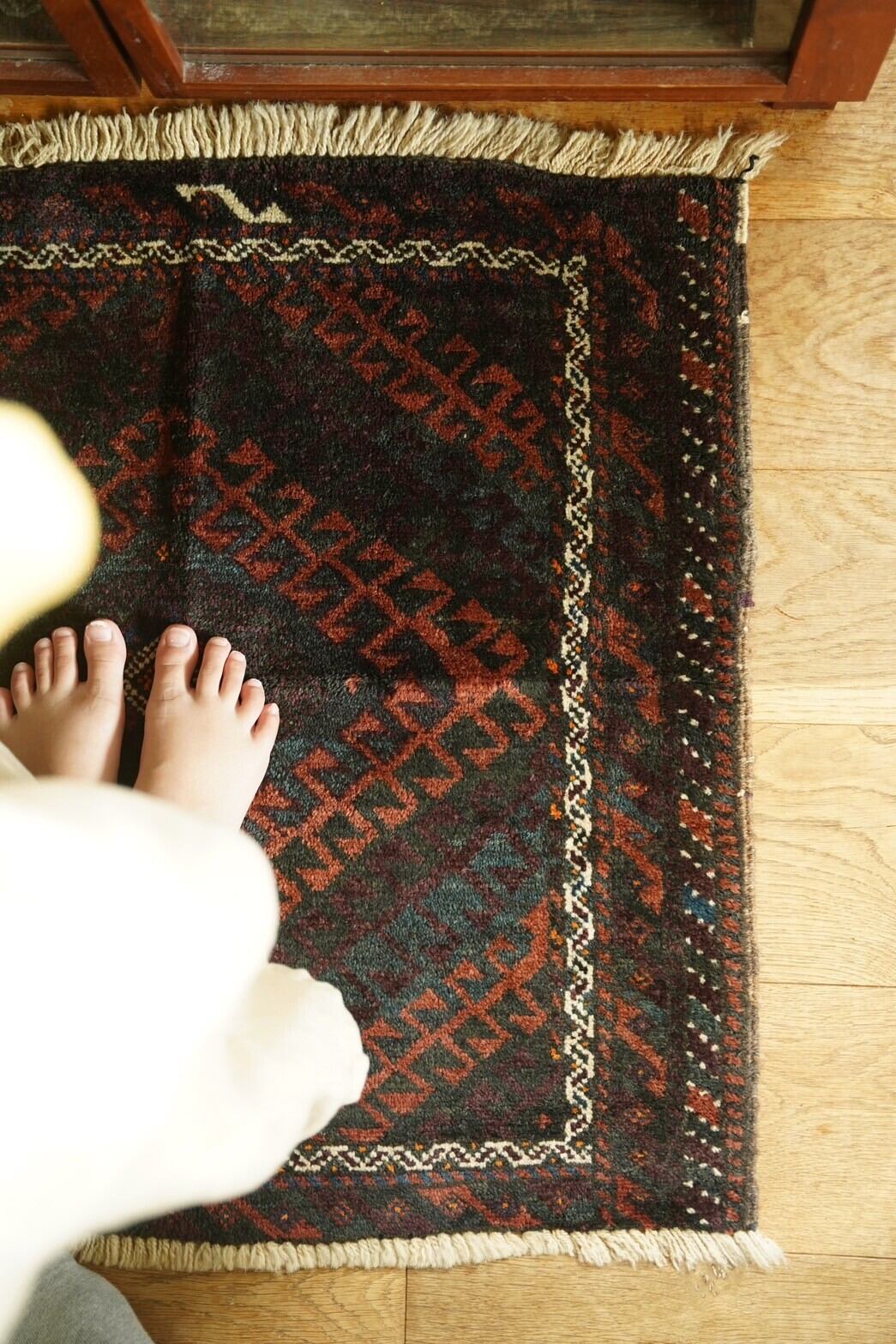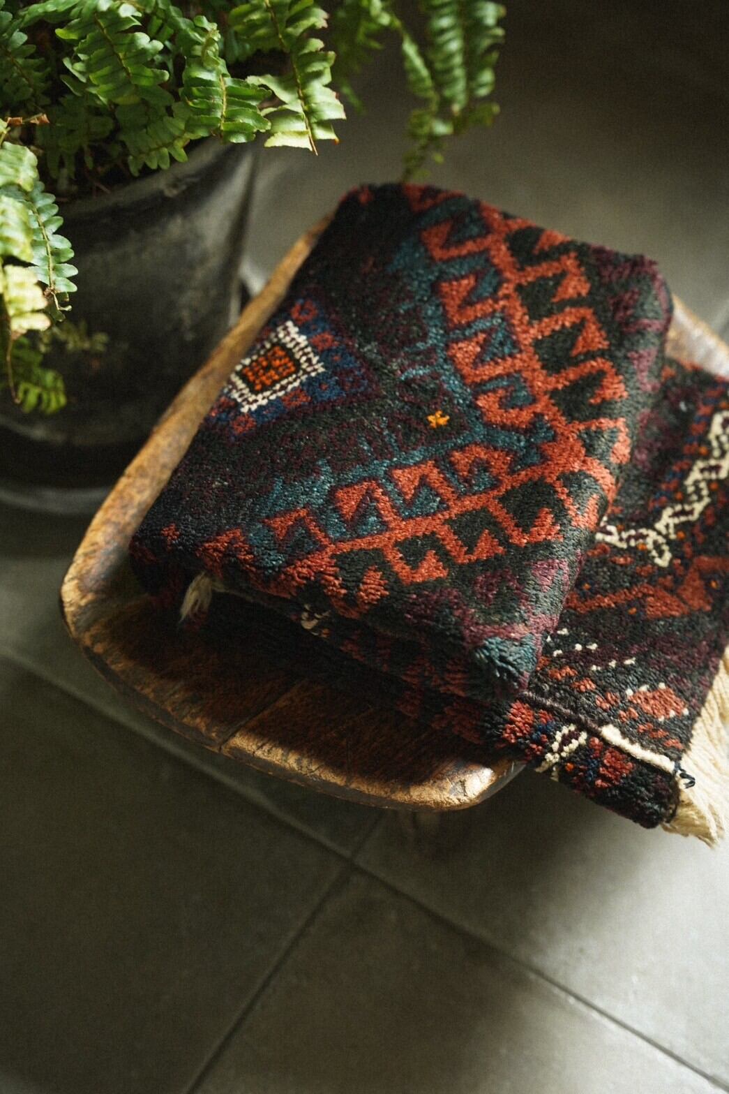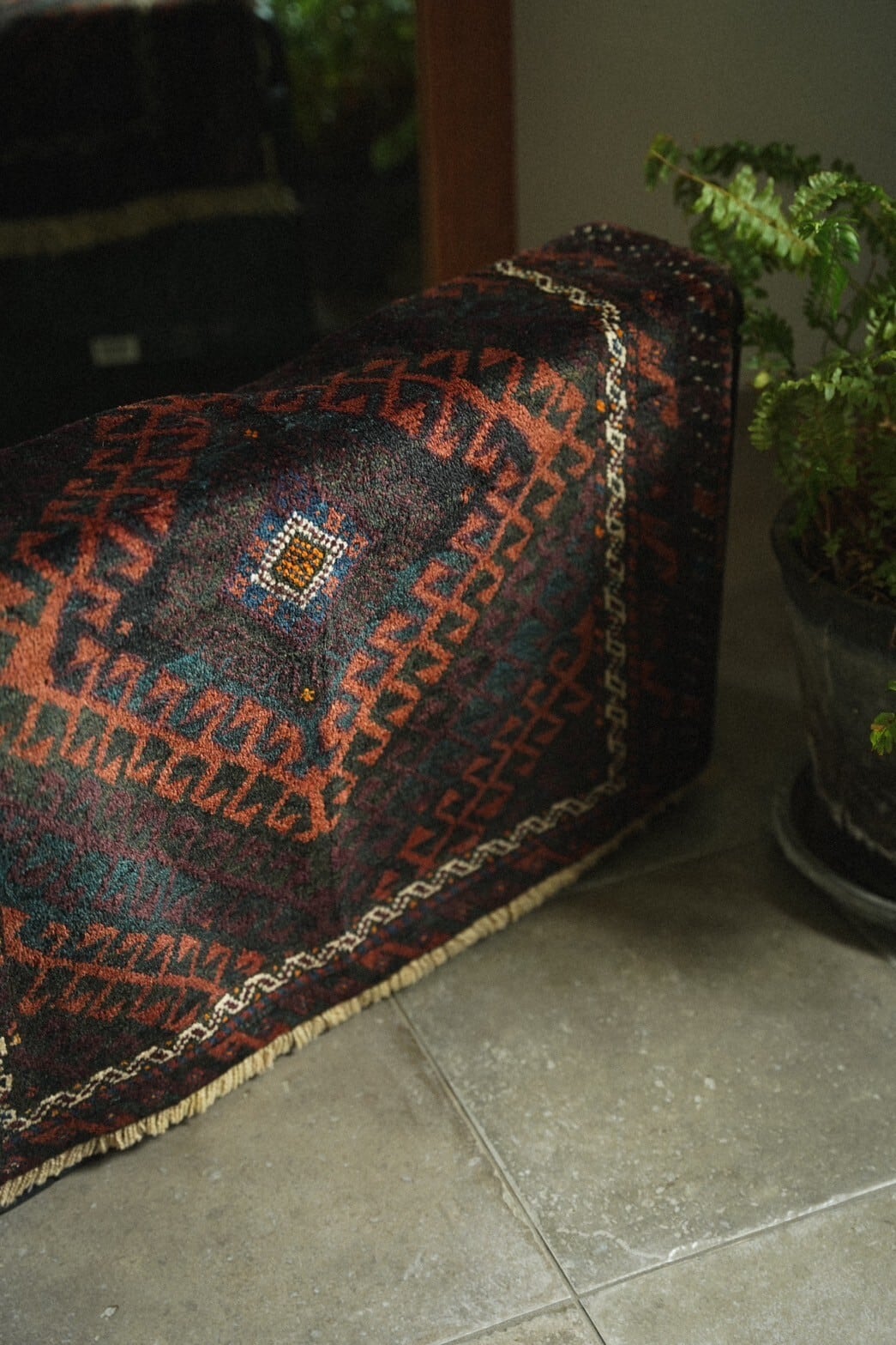 1930年代にシスターン地方に住むバルーチ族によって織られたサドルバッグのバッグフェイスをラグに仕立ててもらいました。