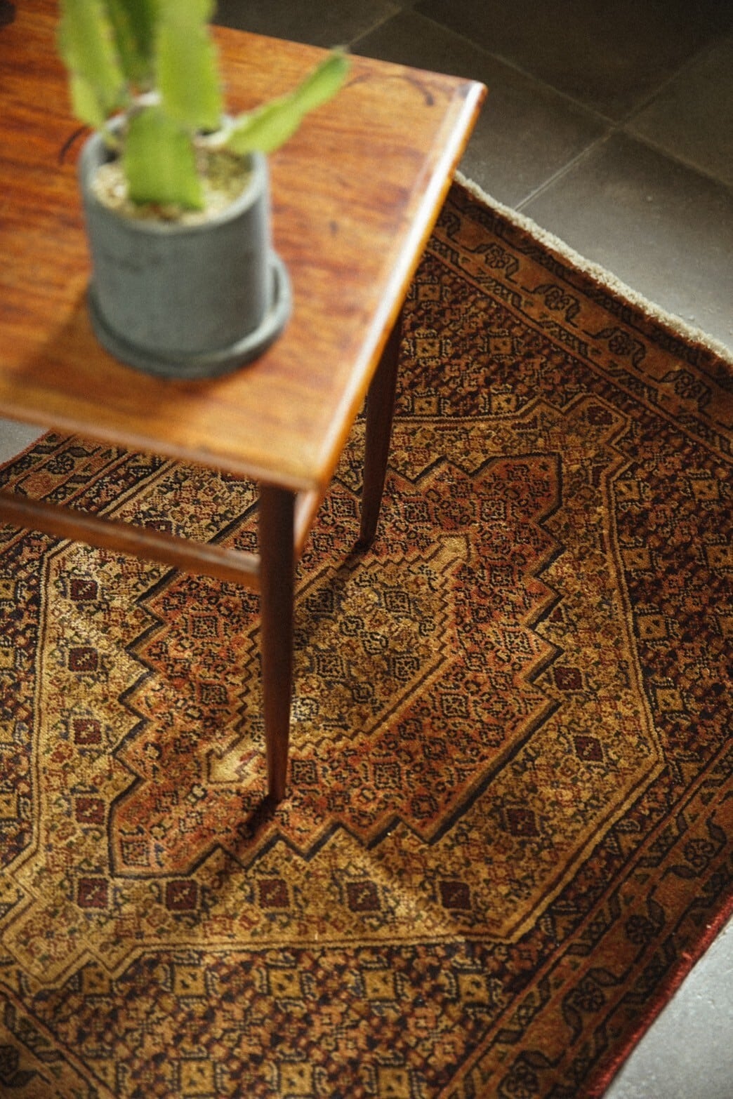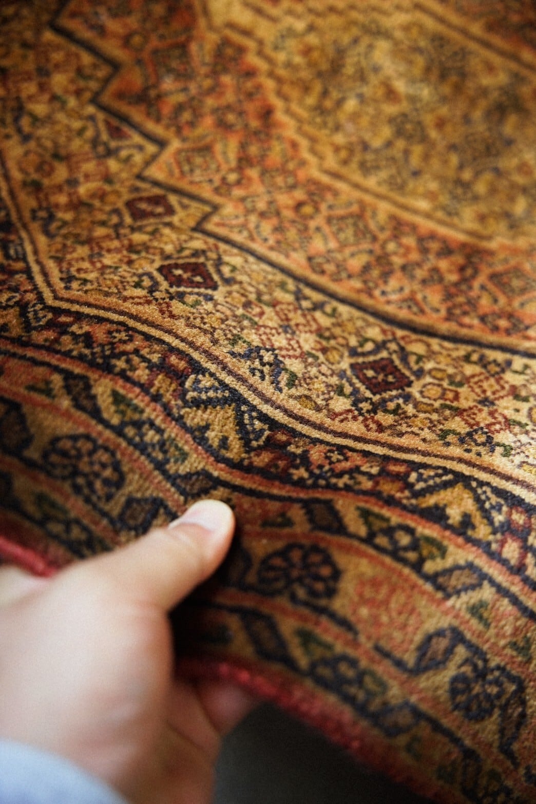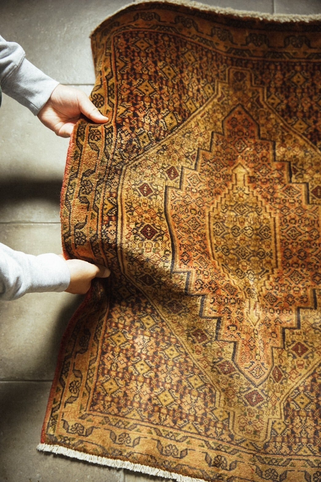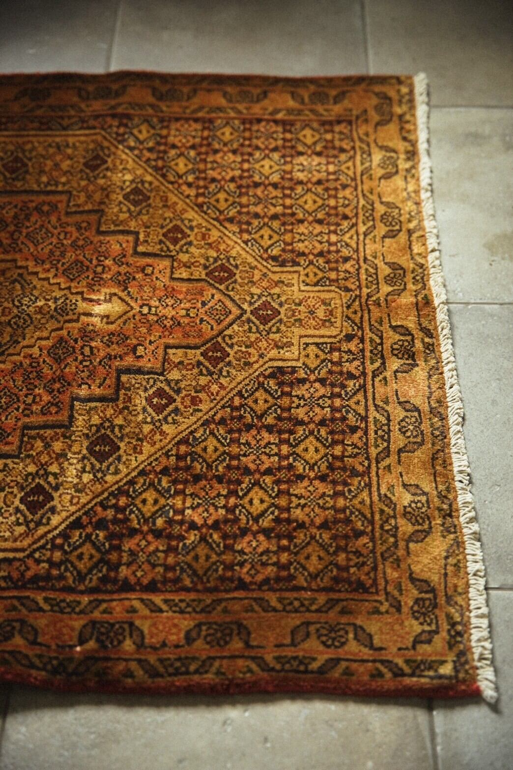 ペルシャ北西部にあるセネ(現サナンダジ)産の渋めの色合いがとても素敵な一枚。