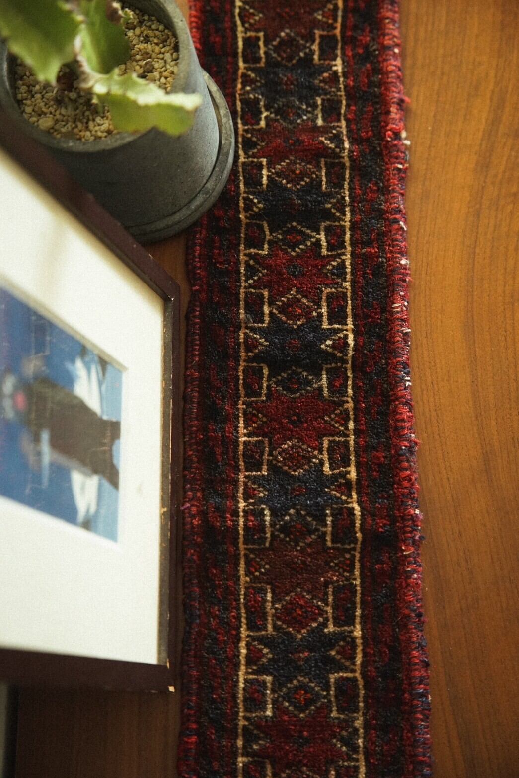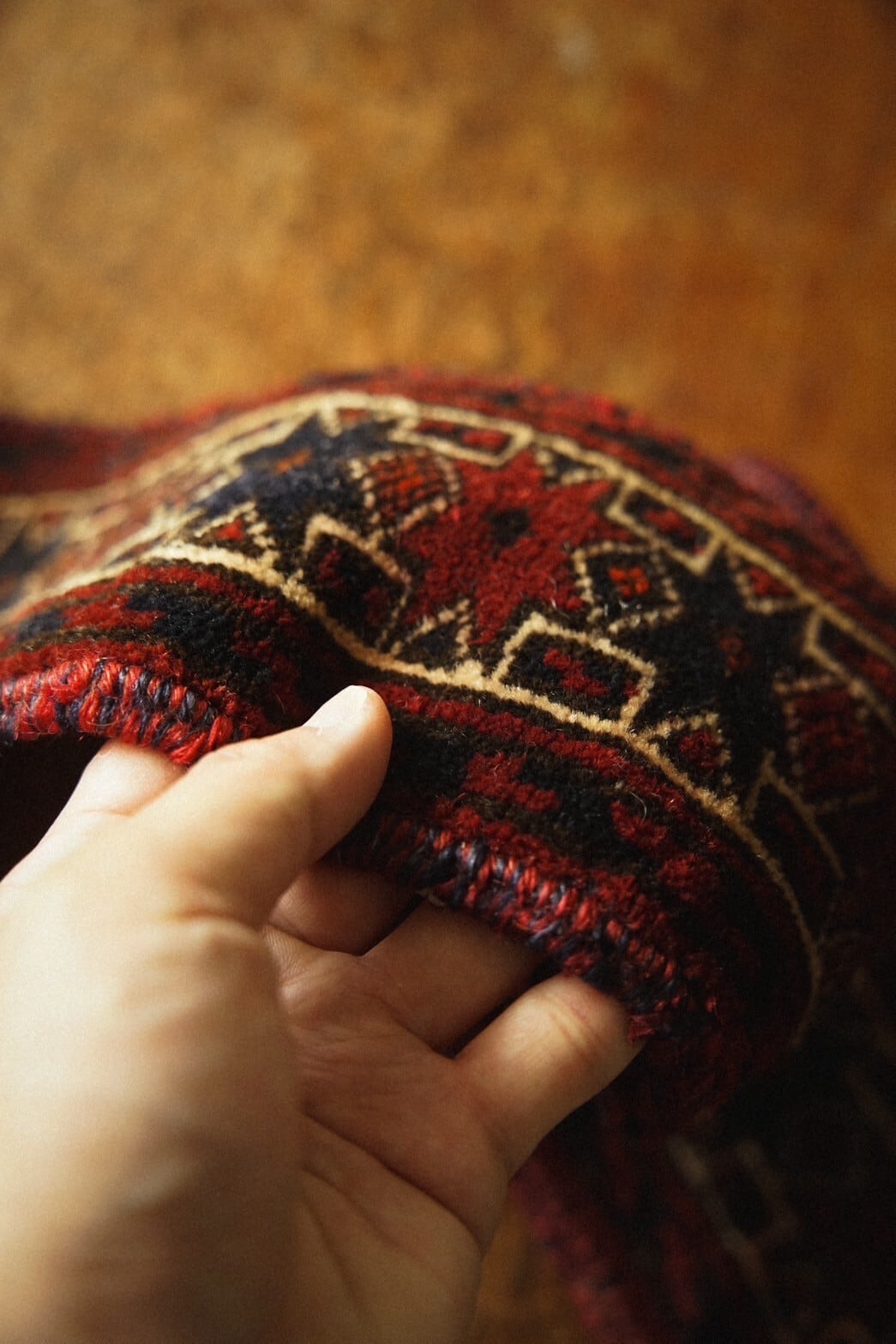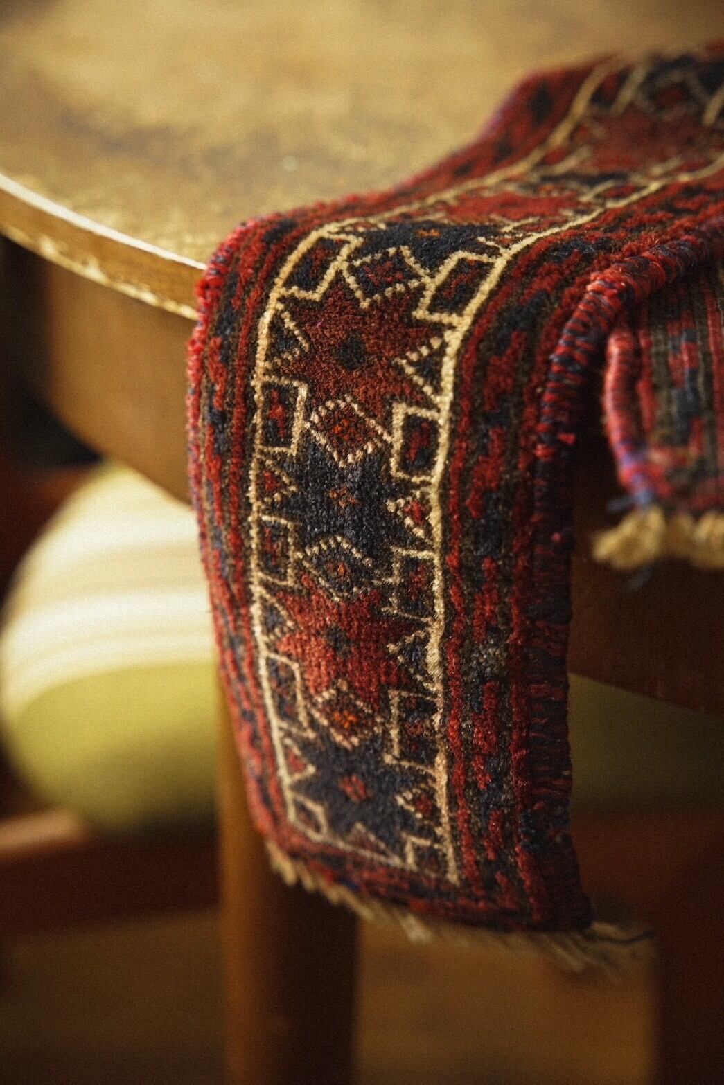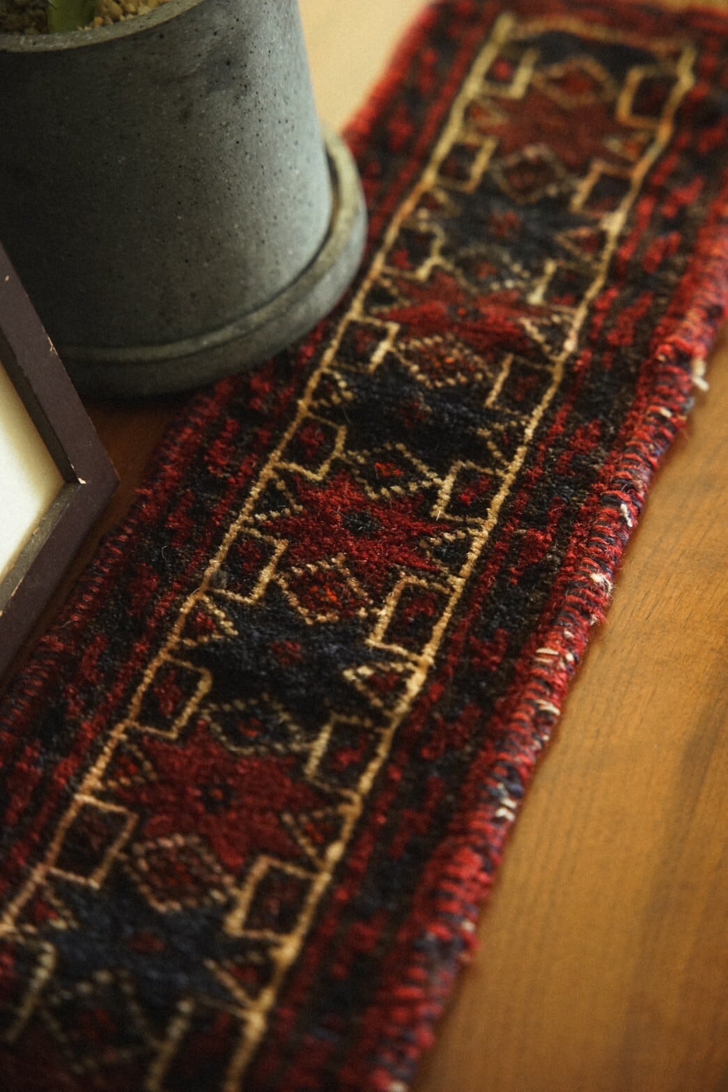 ネックバンドと呼ばれるラクダ用の飾りをミニラグに仕立ててもらいました。
