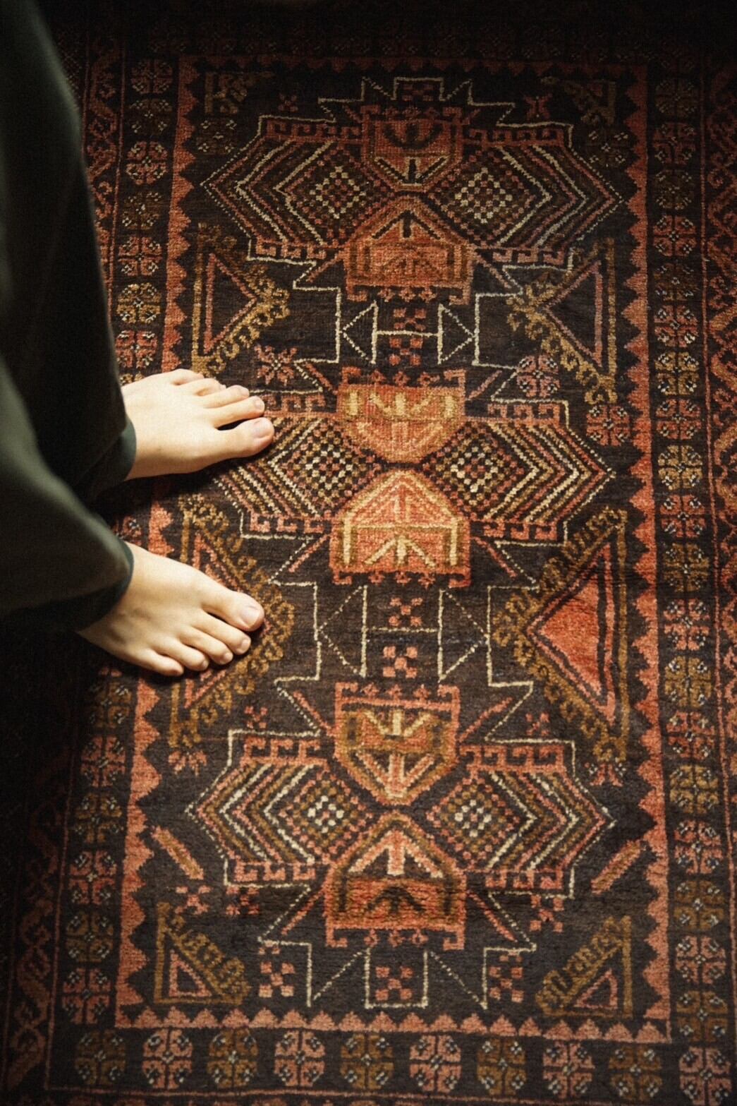 赤系のラグに抵抗ある方にも取り入れやすい柔らかい色味と洗練された雰囲気の一枚です。