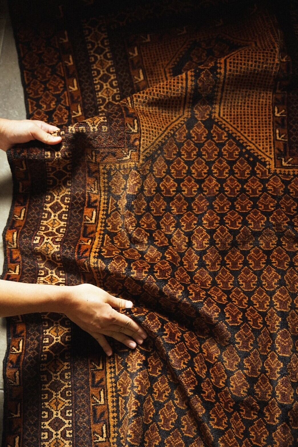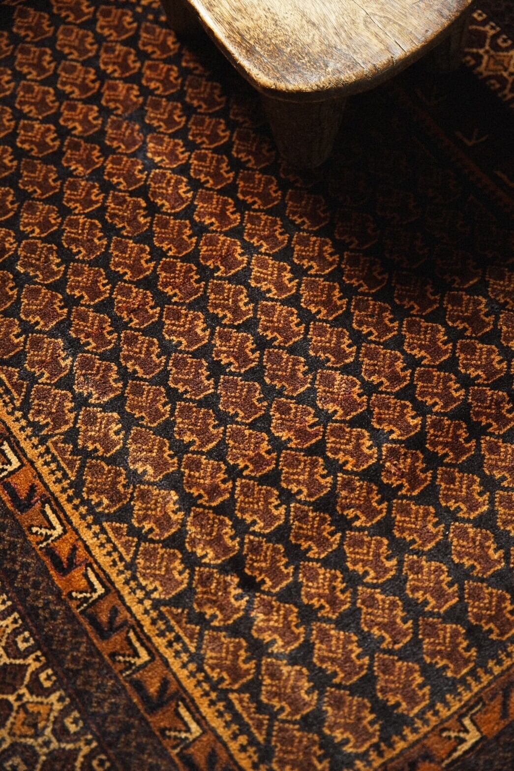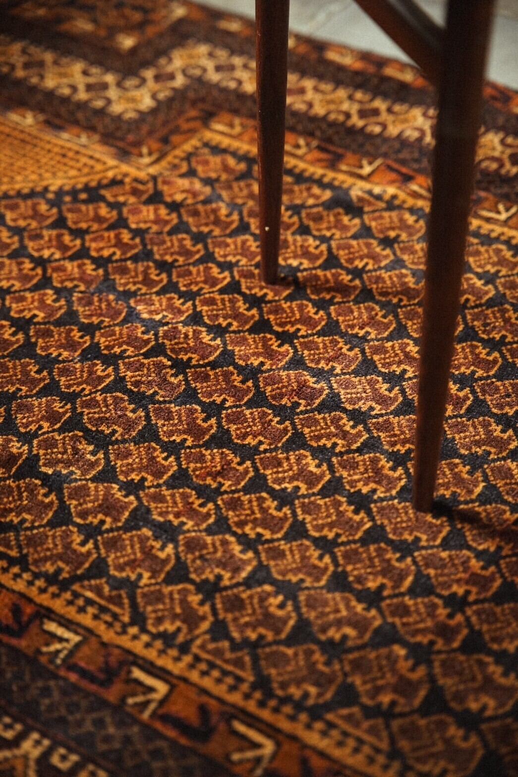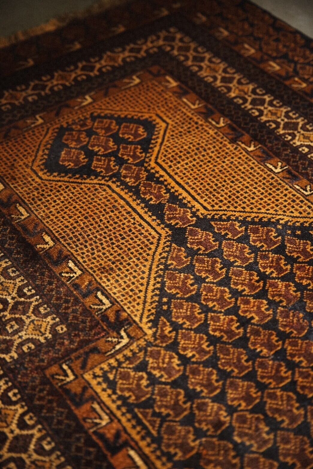 Dokhtare qazi (裁判官の娘)と呼ばれるバルーチ族によるクラシカルなデザインのプレイヤーラグ。