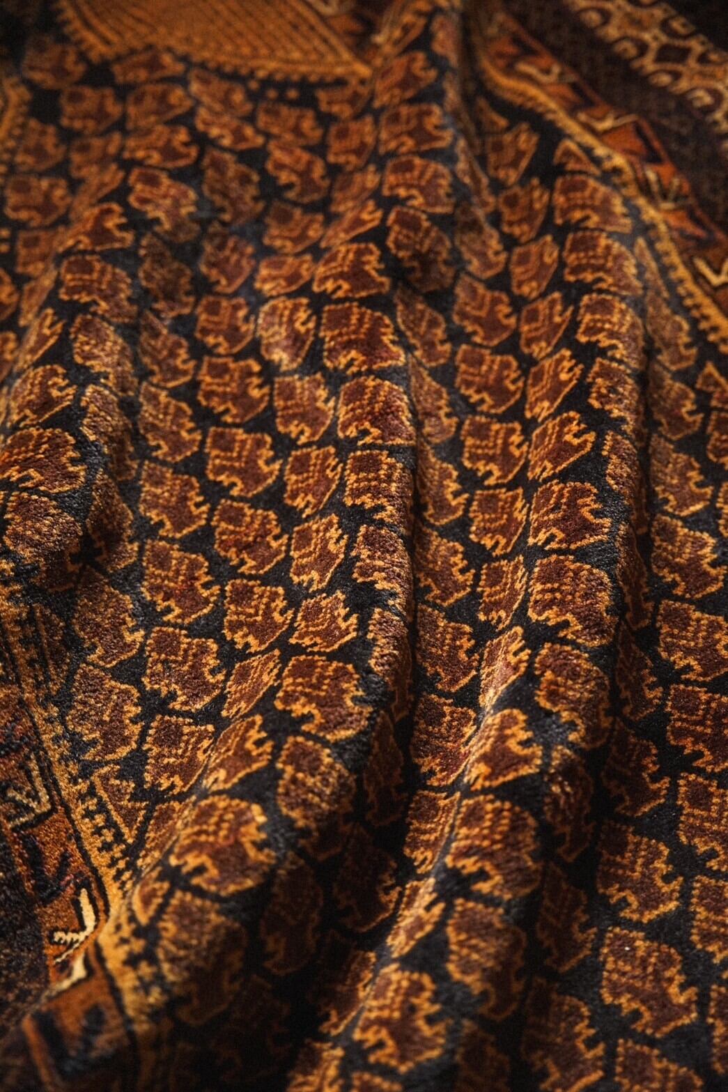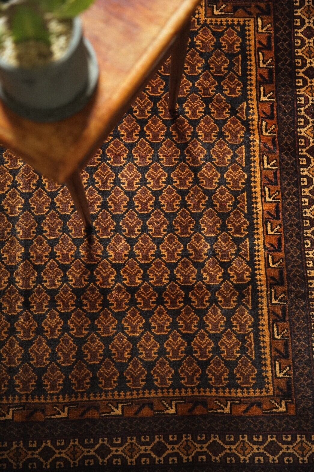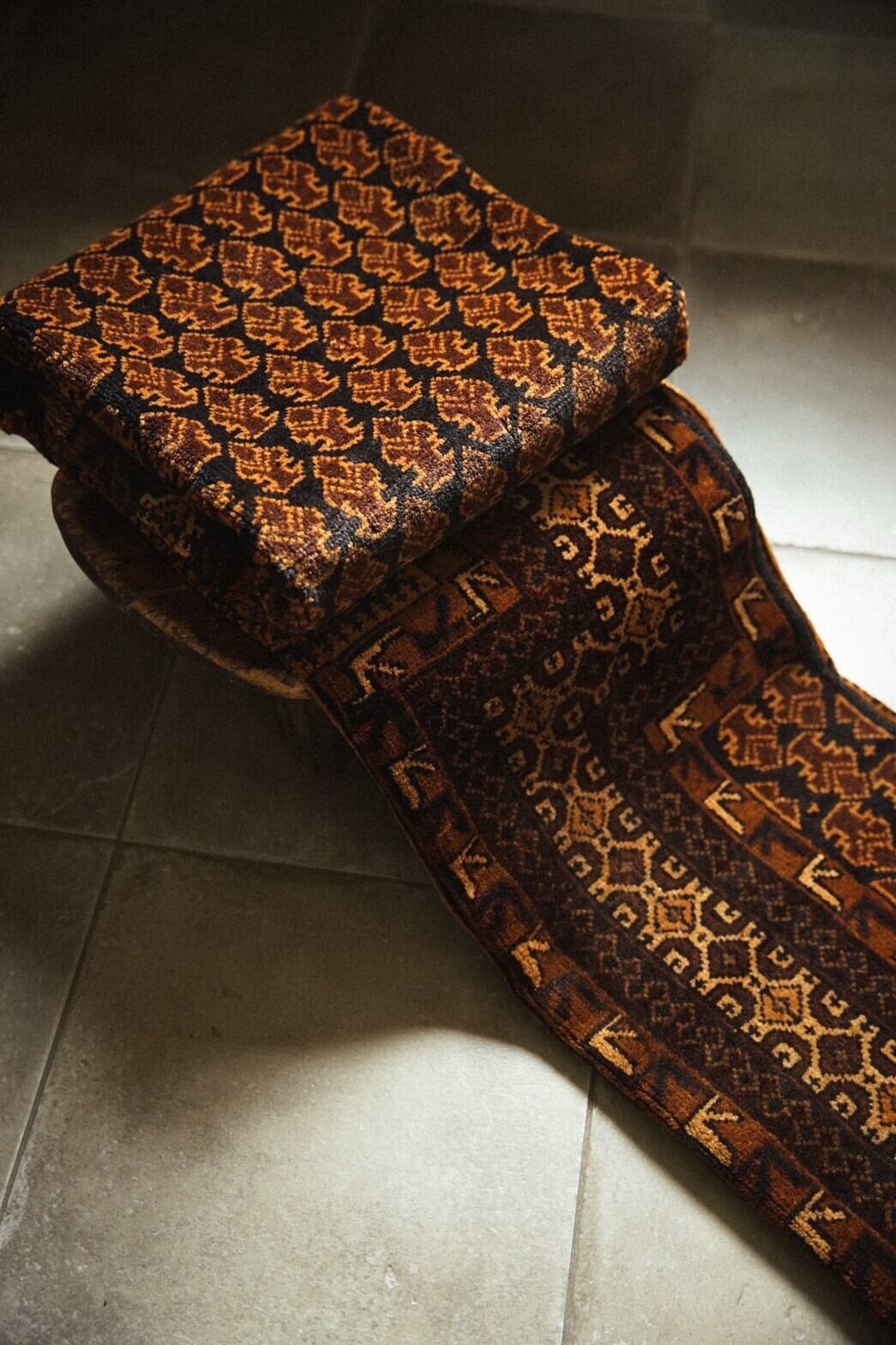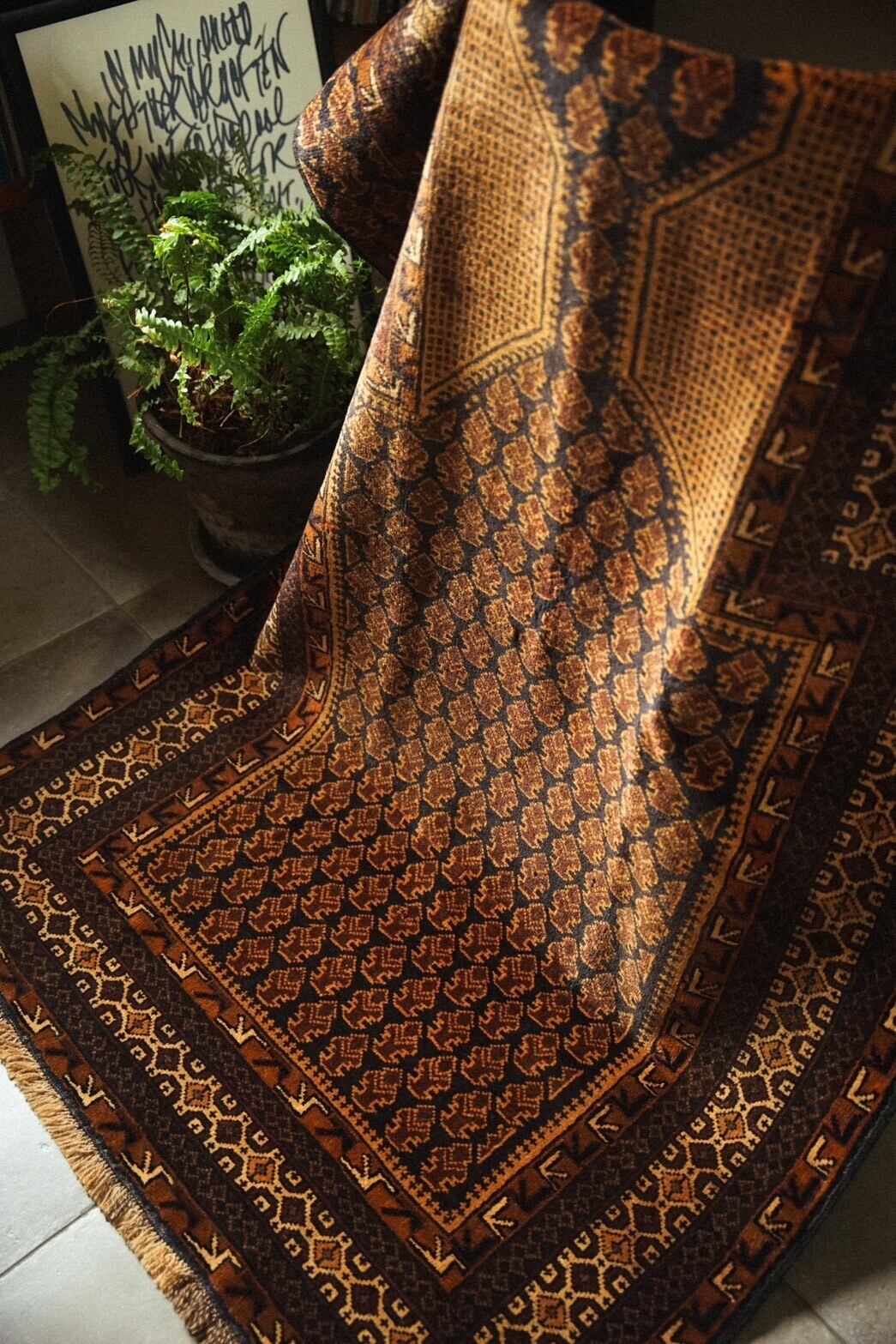 Dokhtare qazi (裁判官の娘)と呼ばれるバルーチ族によるクラシカルなデザインのプレイヤーラグ。
