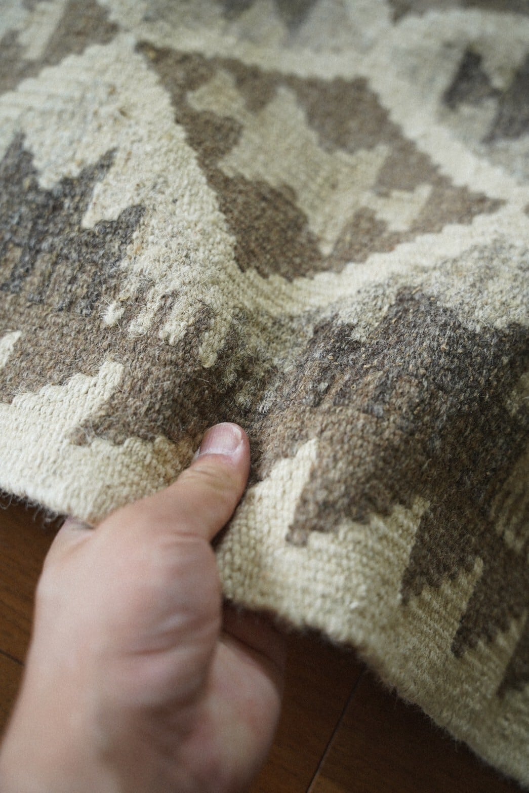 染めていない原毛色の羊毛で織られたアフガニスタン、マイマナ産のホドラングキリム。