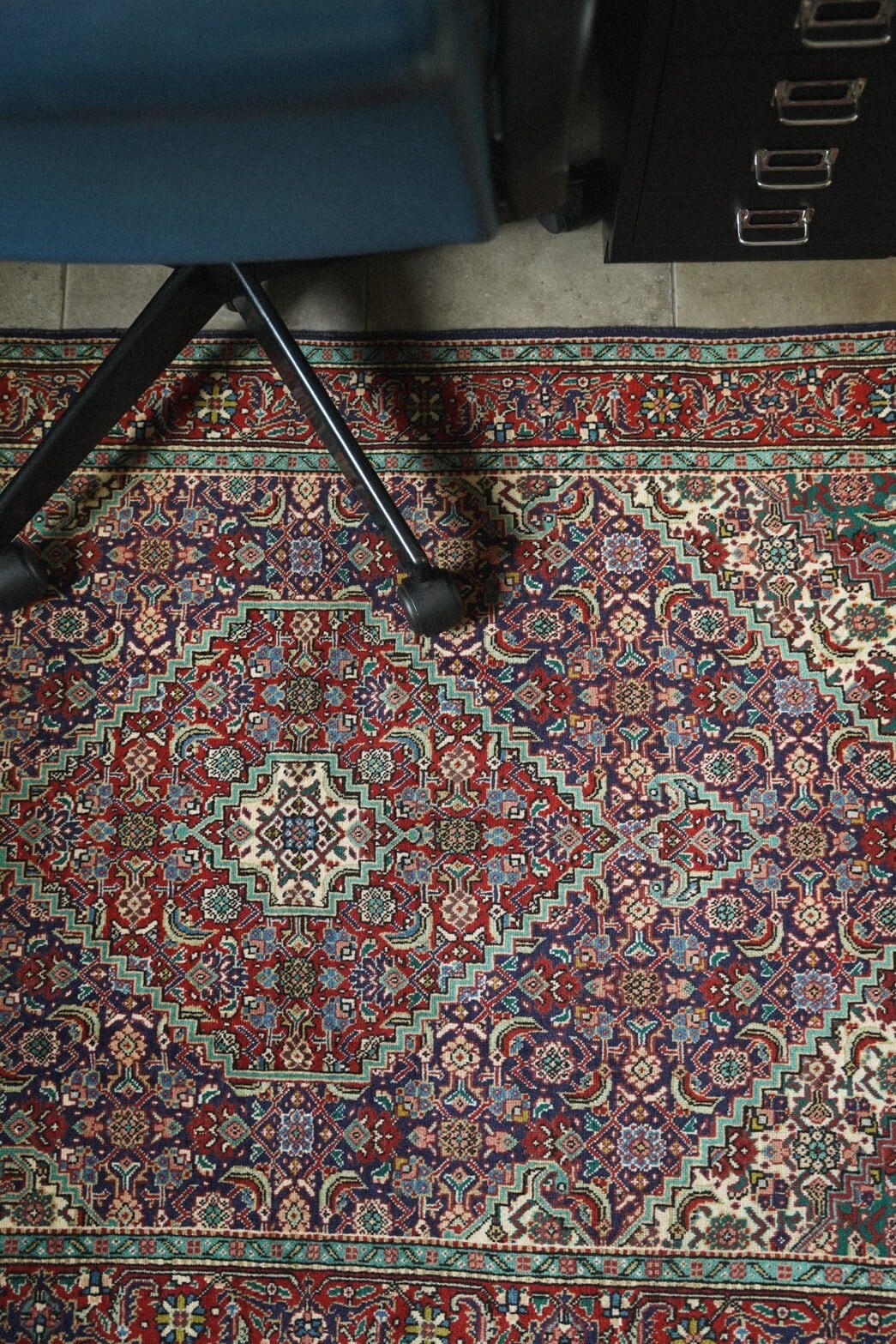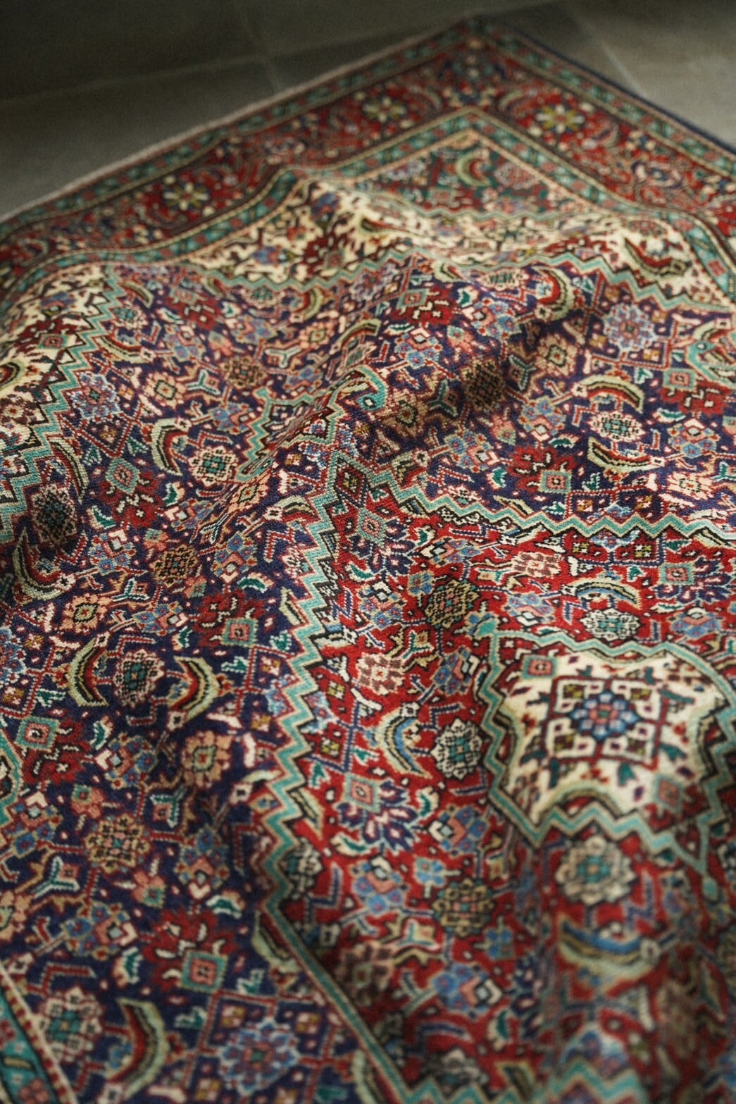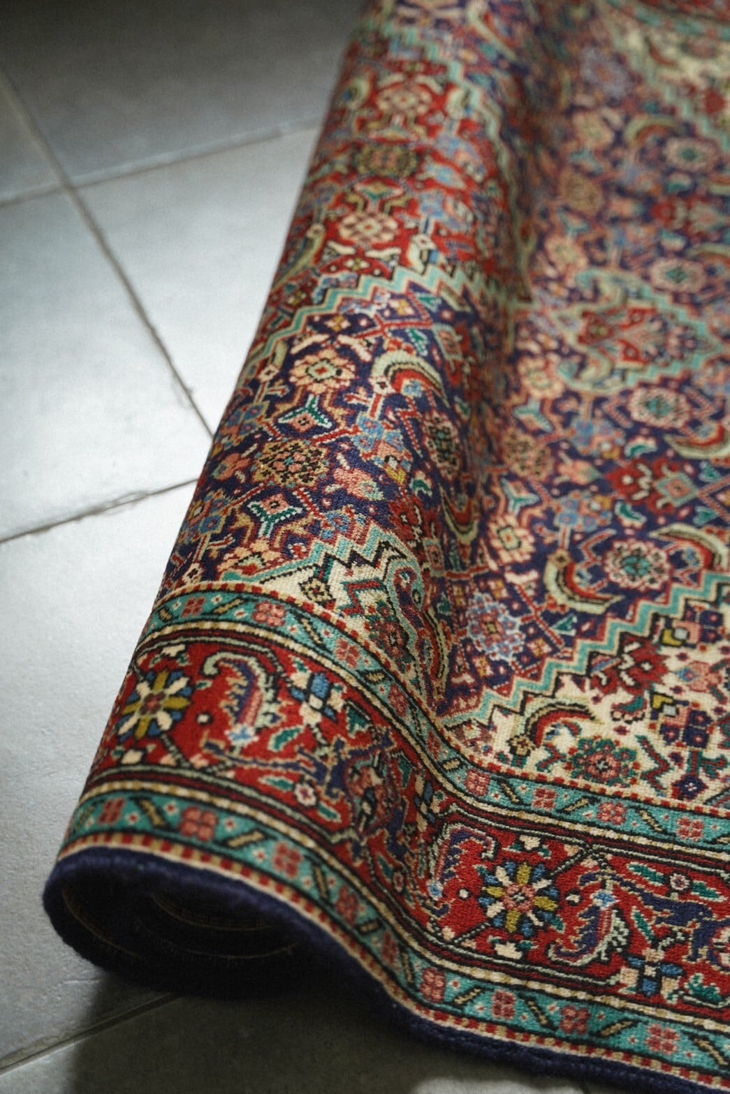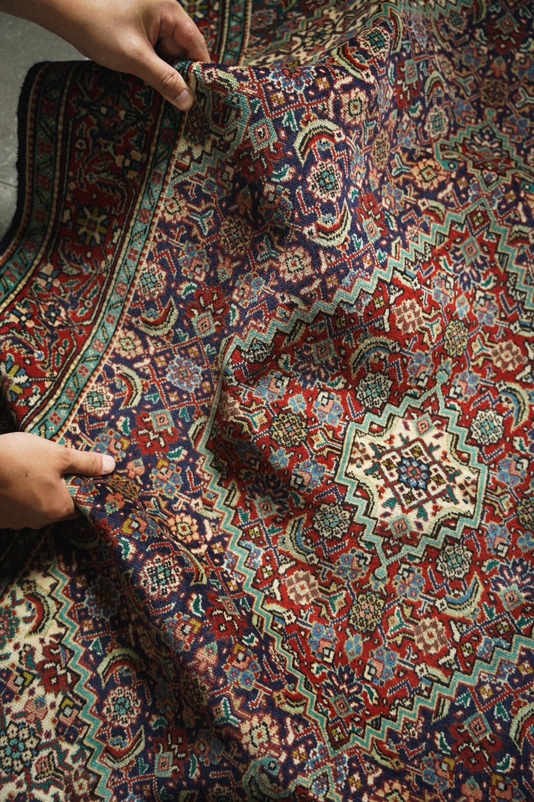 美しい色彩で描かれたヘラティ文様。まるで絵画のように緻密に織り込まれた花紋様は織り手の技術を感じる素晴らしい一枚です。