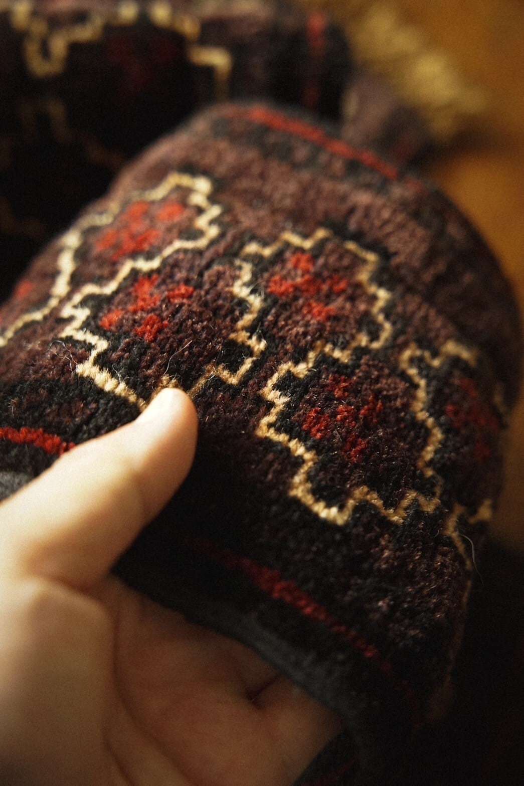 ネックバンドと呼ばれるラクダ用の飾りをミニラグに仕立ててもらいました。