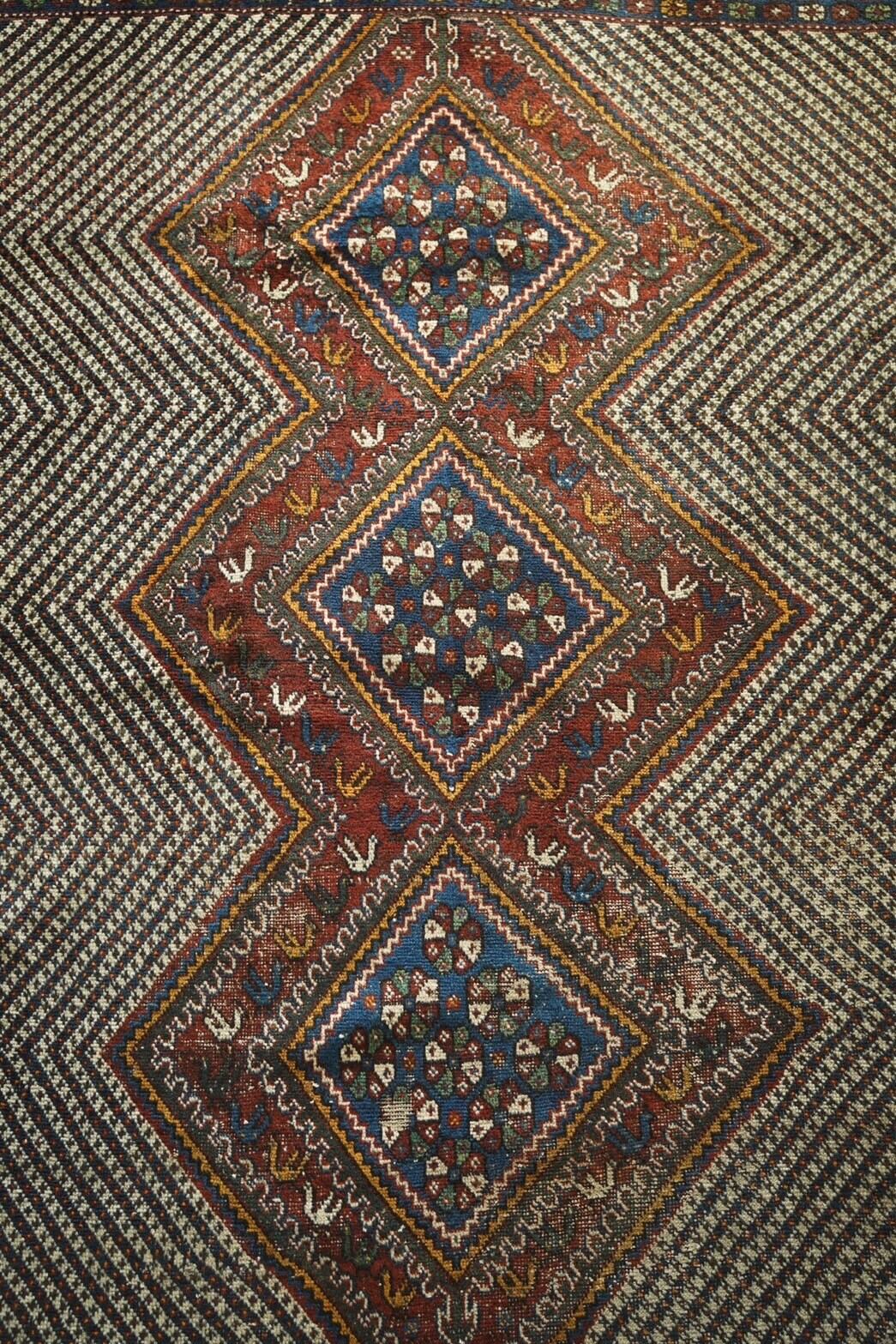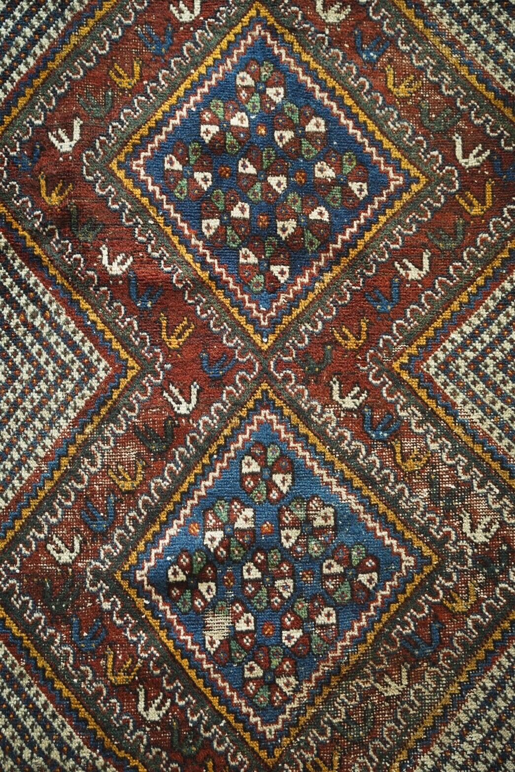 1900年代にイラン南部のファルス州のハムセ連合によって織られたアンティークラグ。