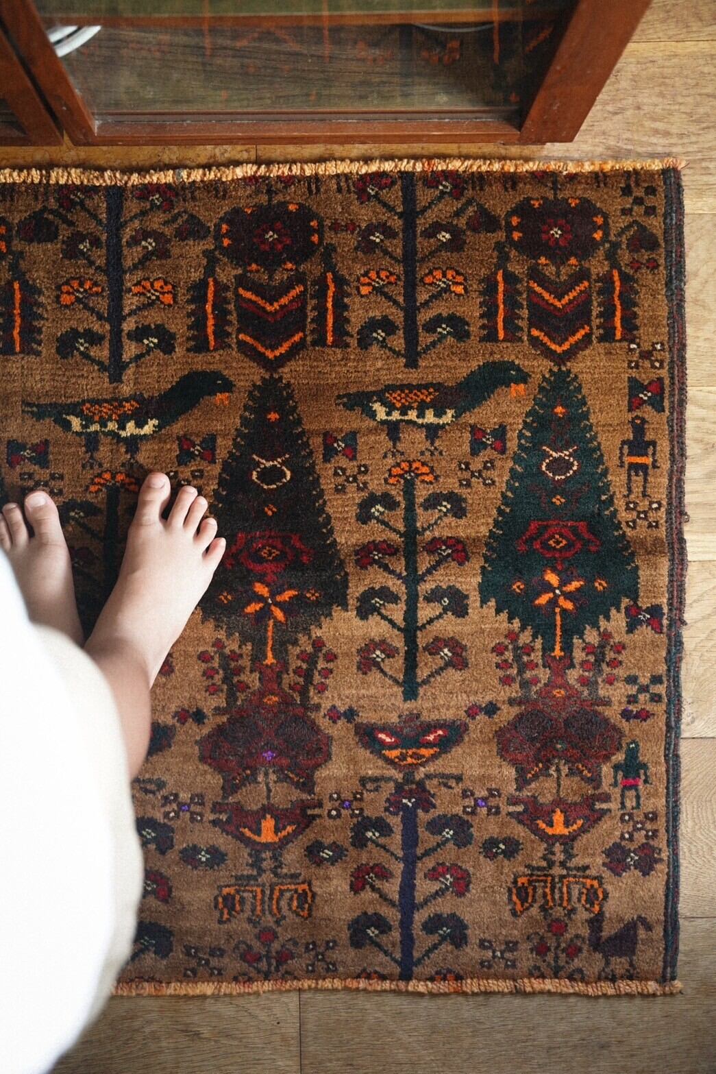 糸杉紋様、生命の樹、鳥、花、そして人も織り込まれていてたまらない可愛さ。