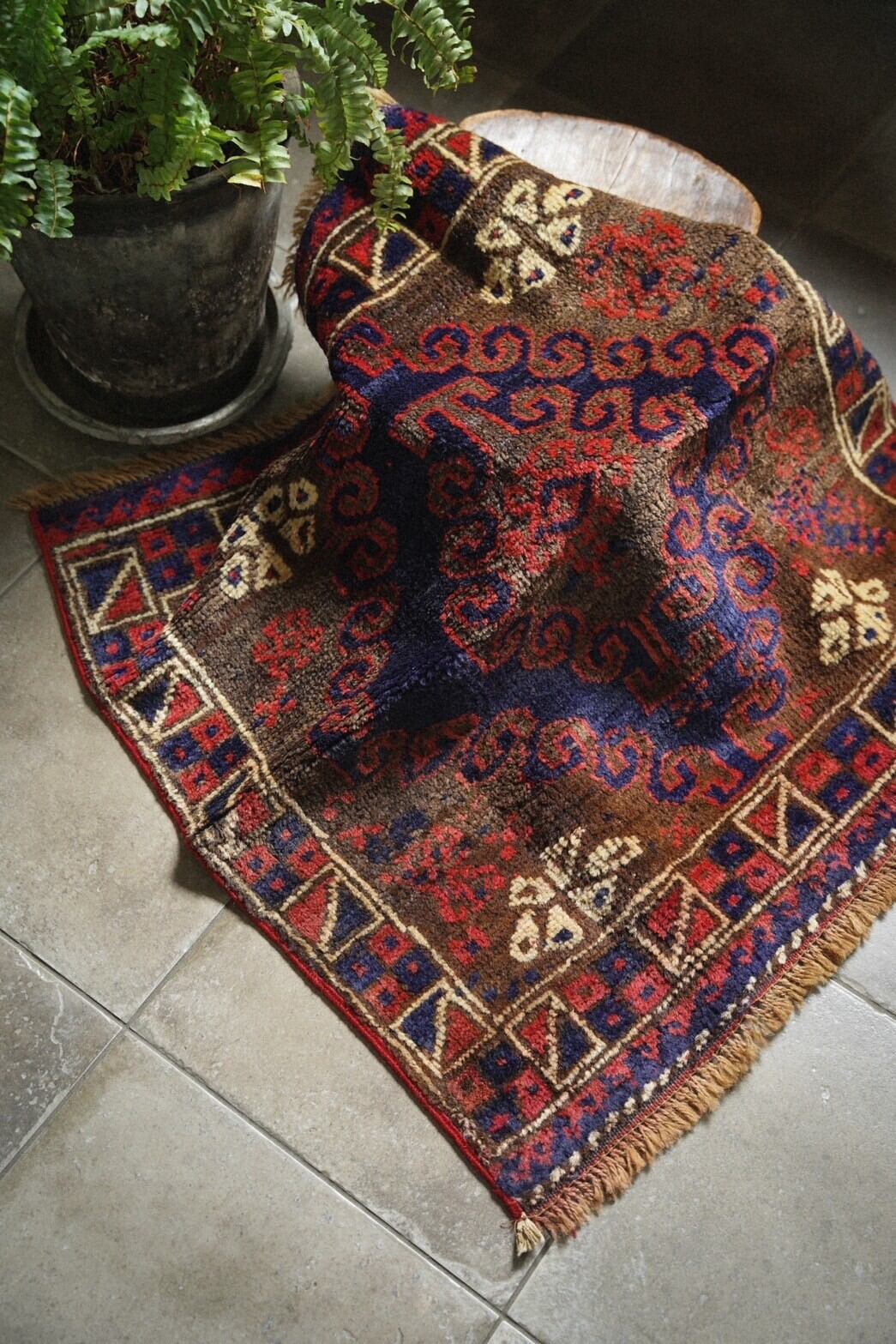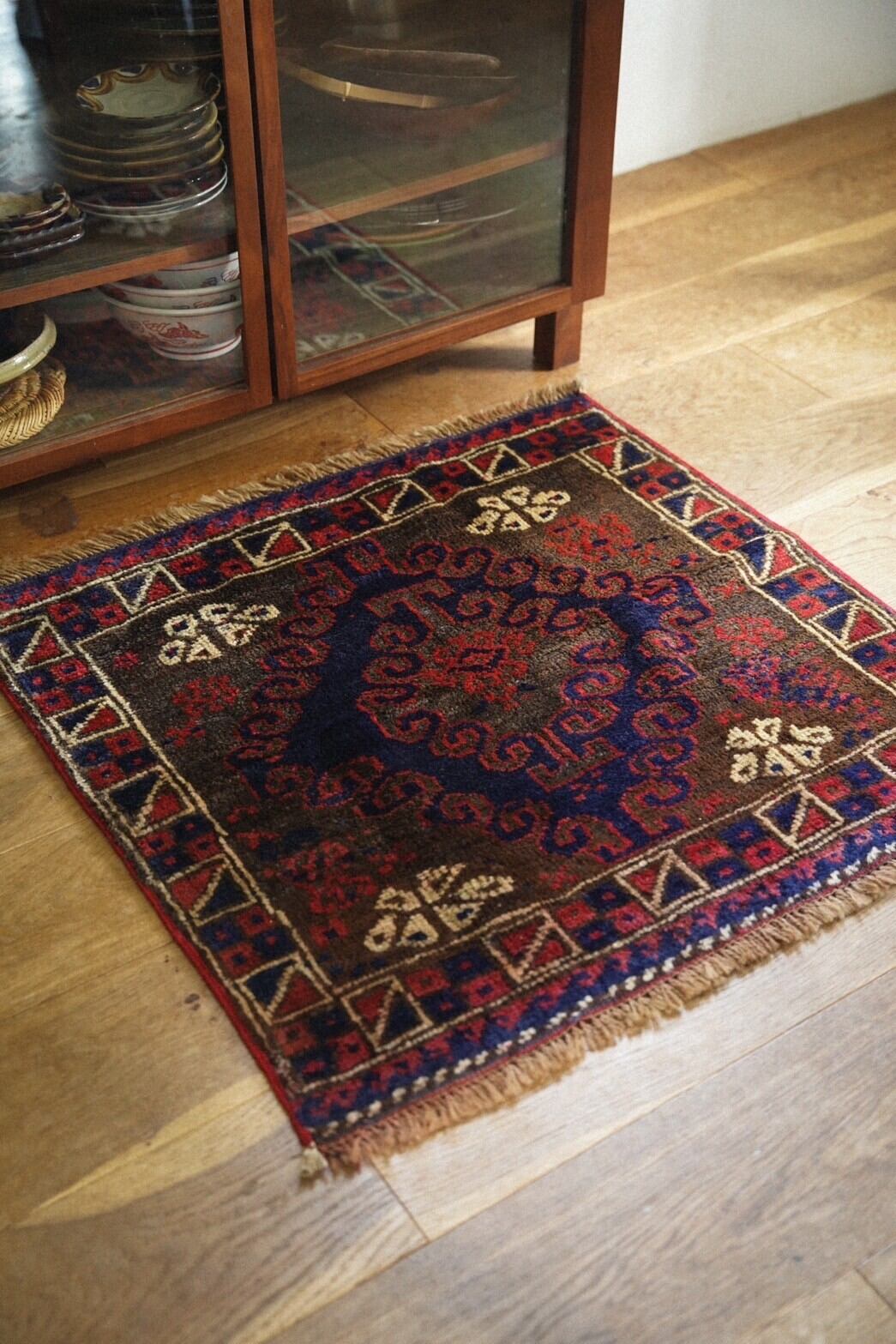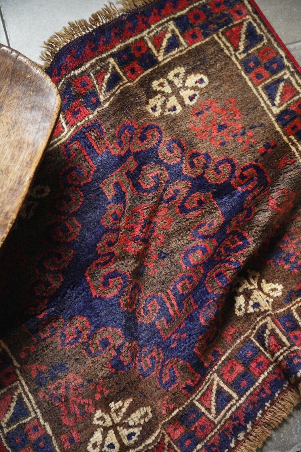 1940年代にバルーチ族によって織られたサドルバッグのバッグフェイスをミニラグに仕立ててもらいました。
