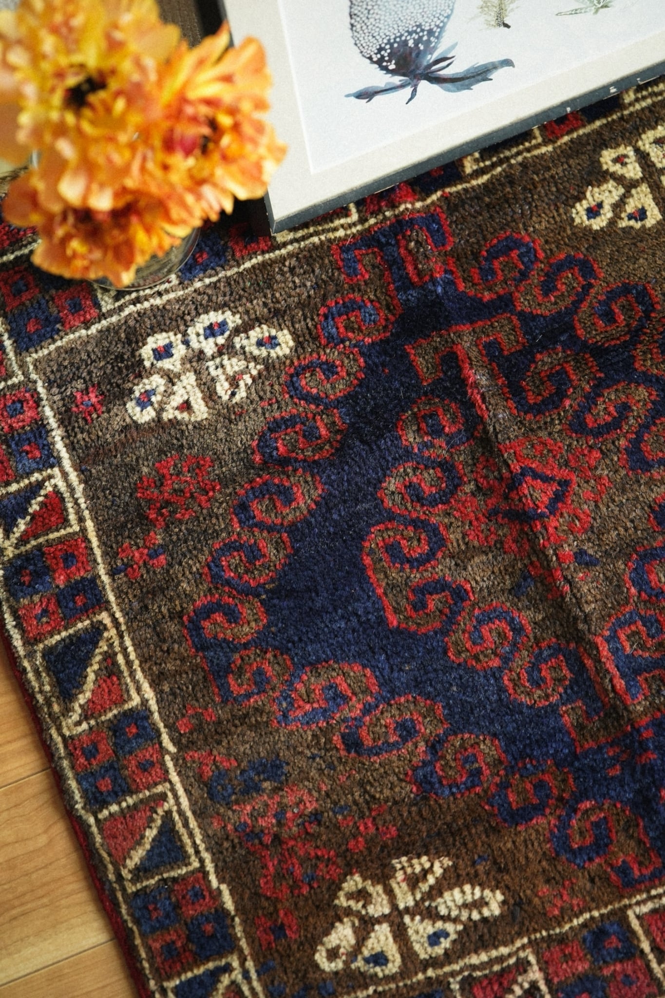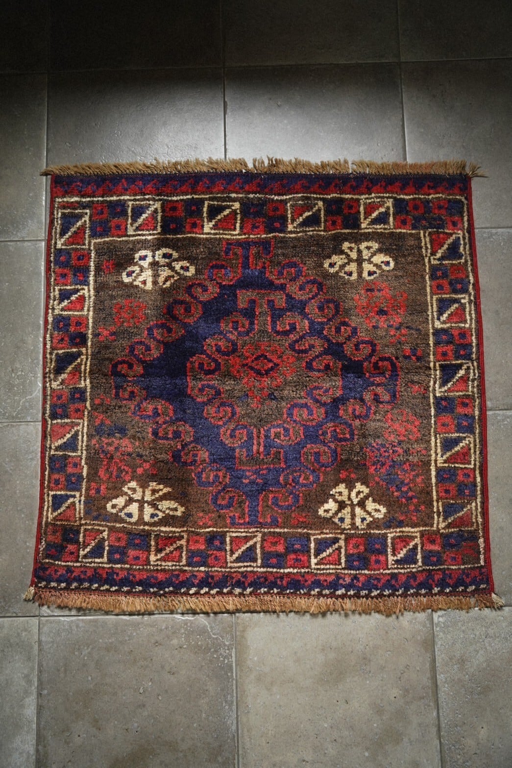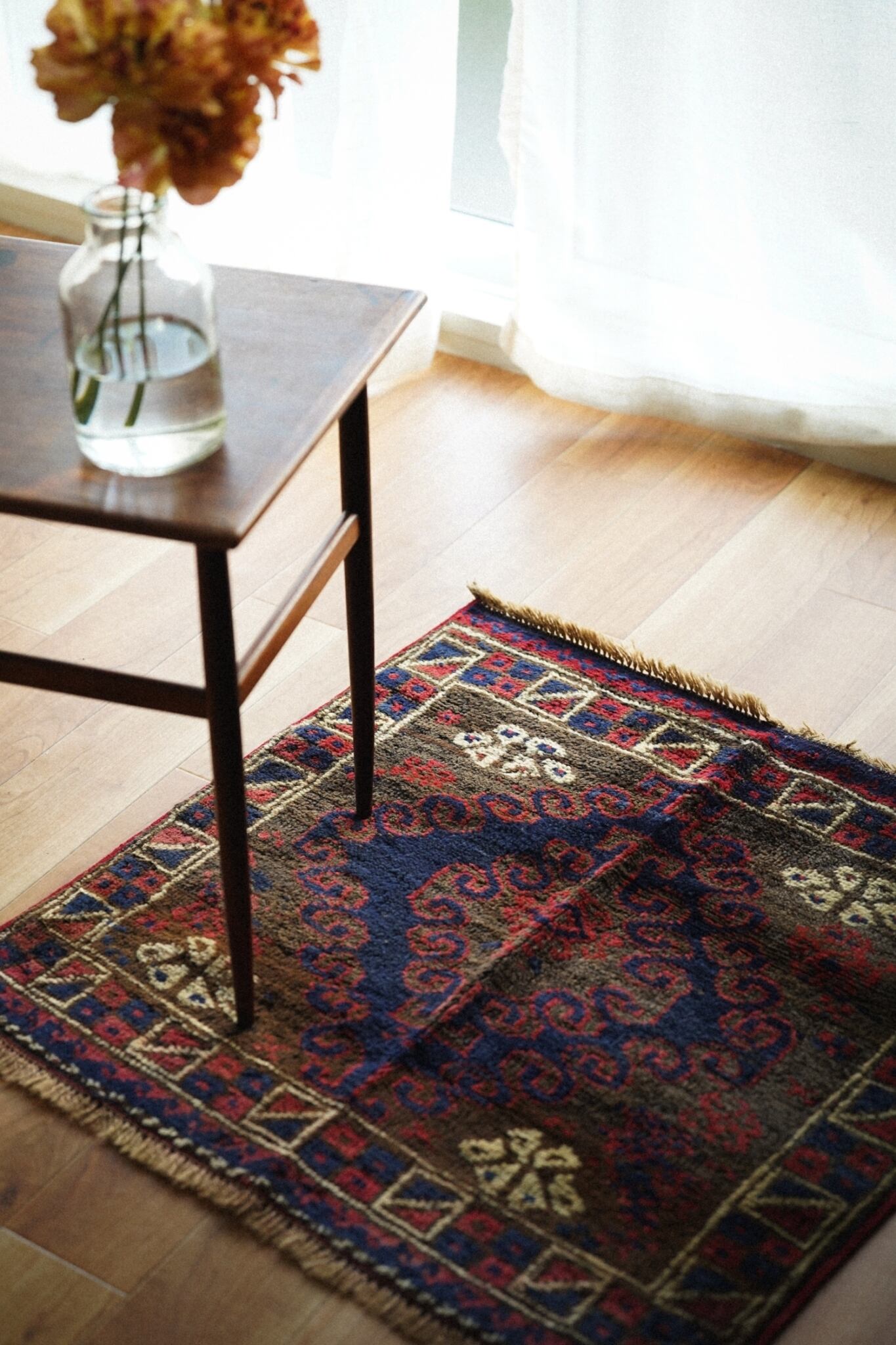 1940年代にバルーチ族によって織られたサドルバッグのバッグフェイスをミニラグに仕立ててもらいました。