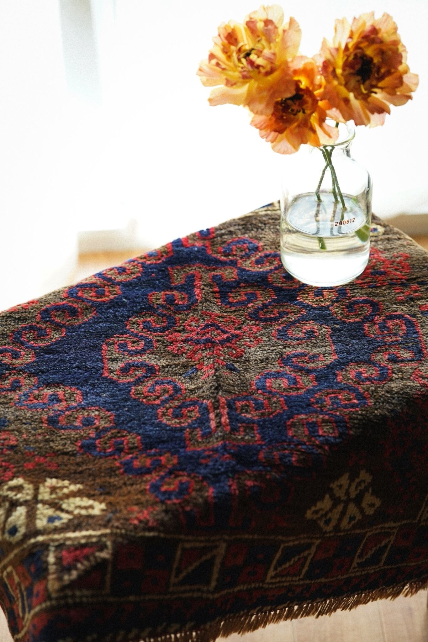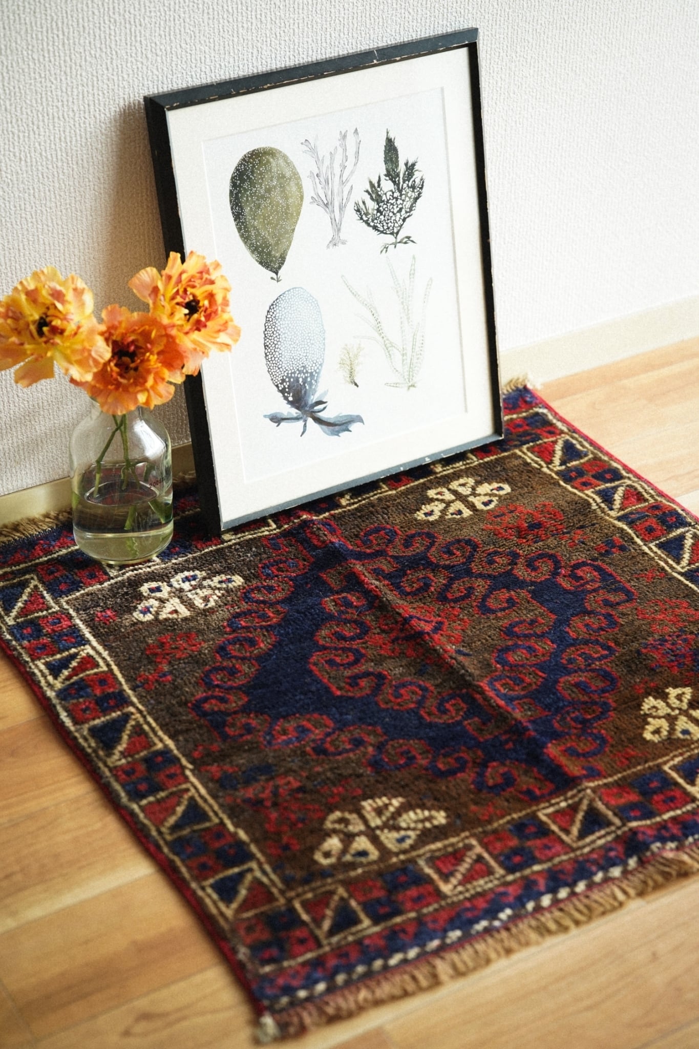 使いやすいスクエア型のラグは窓辺や、チェストの上、植物を置いたり姿見の前に敷いたり、壁掛けにして飾るのもおすすめです。