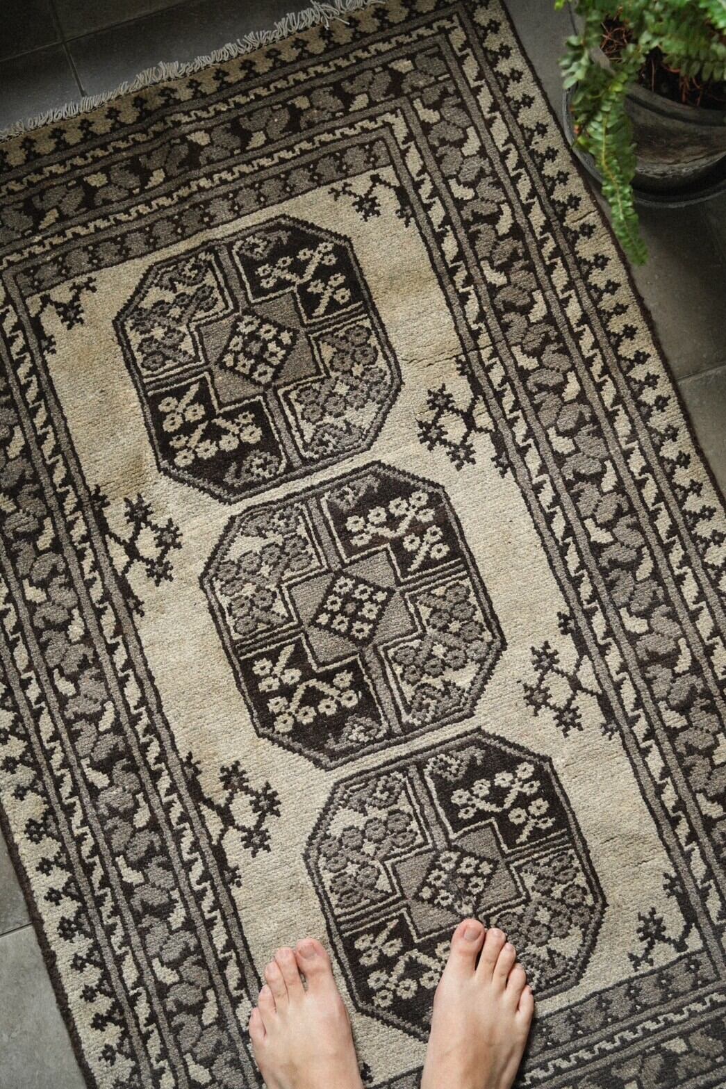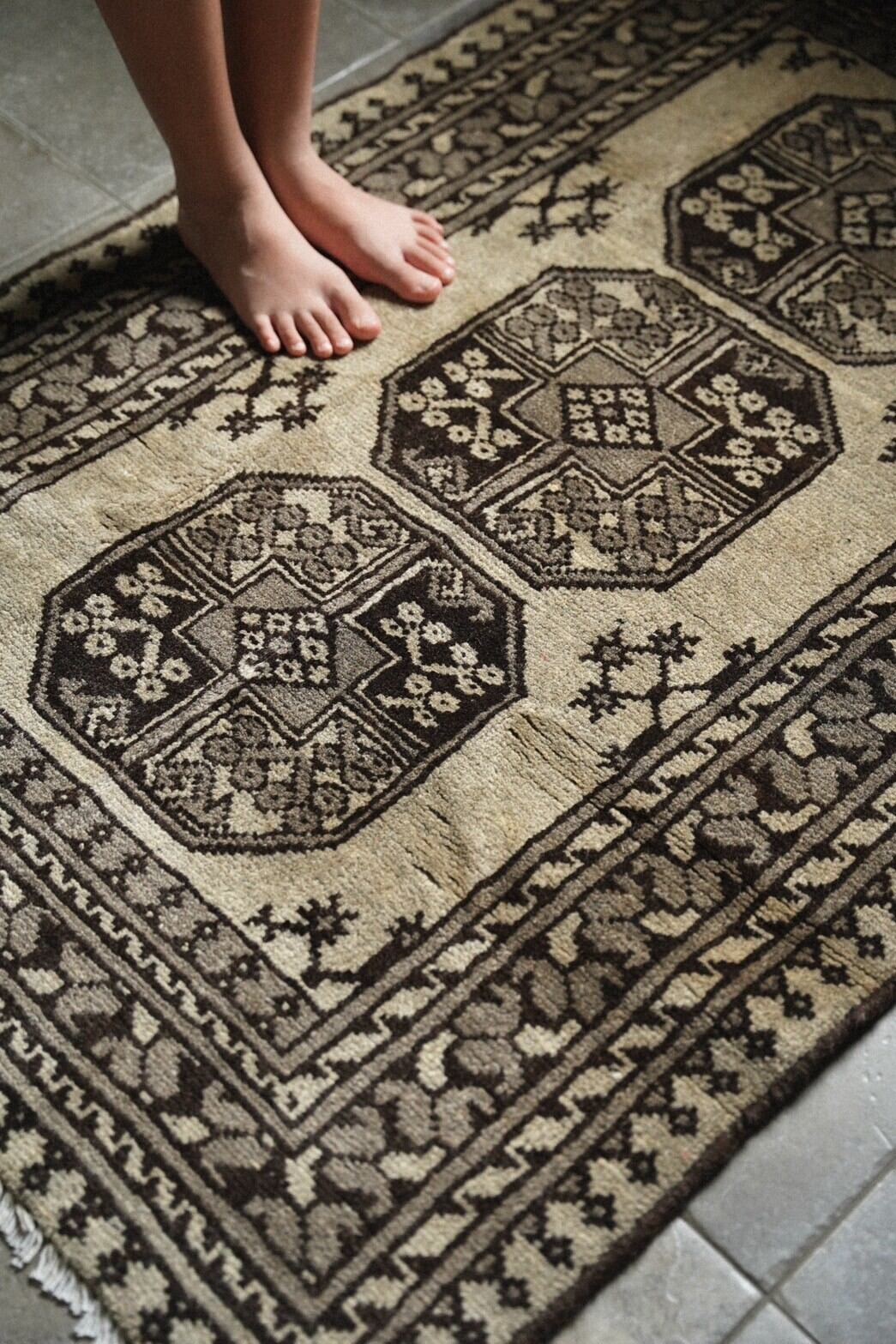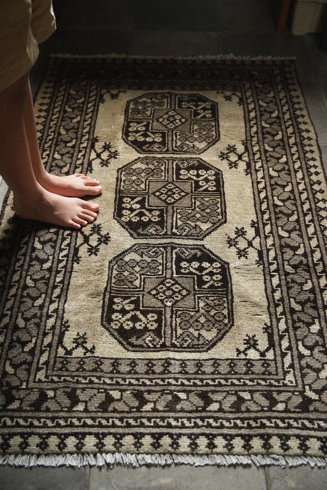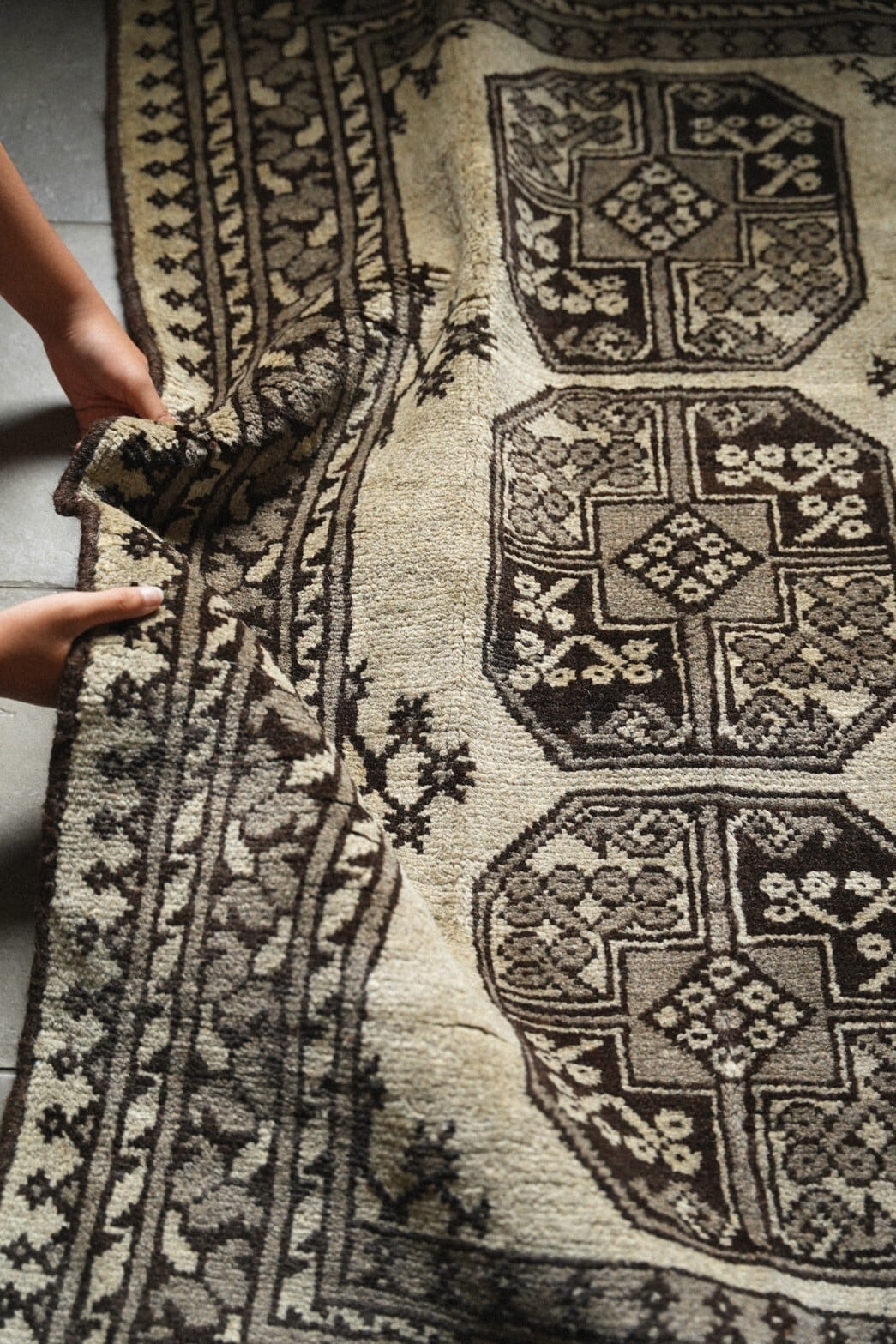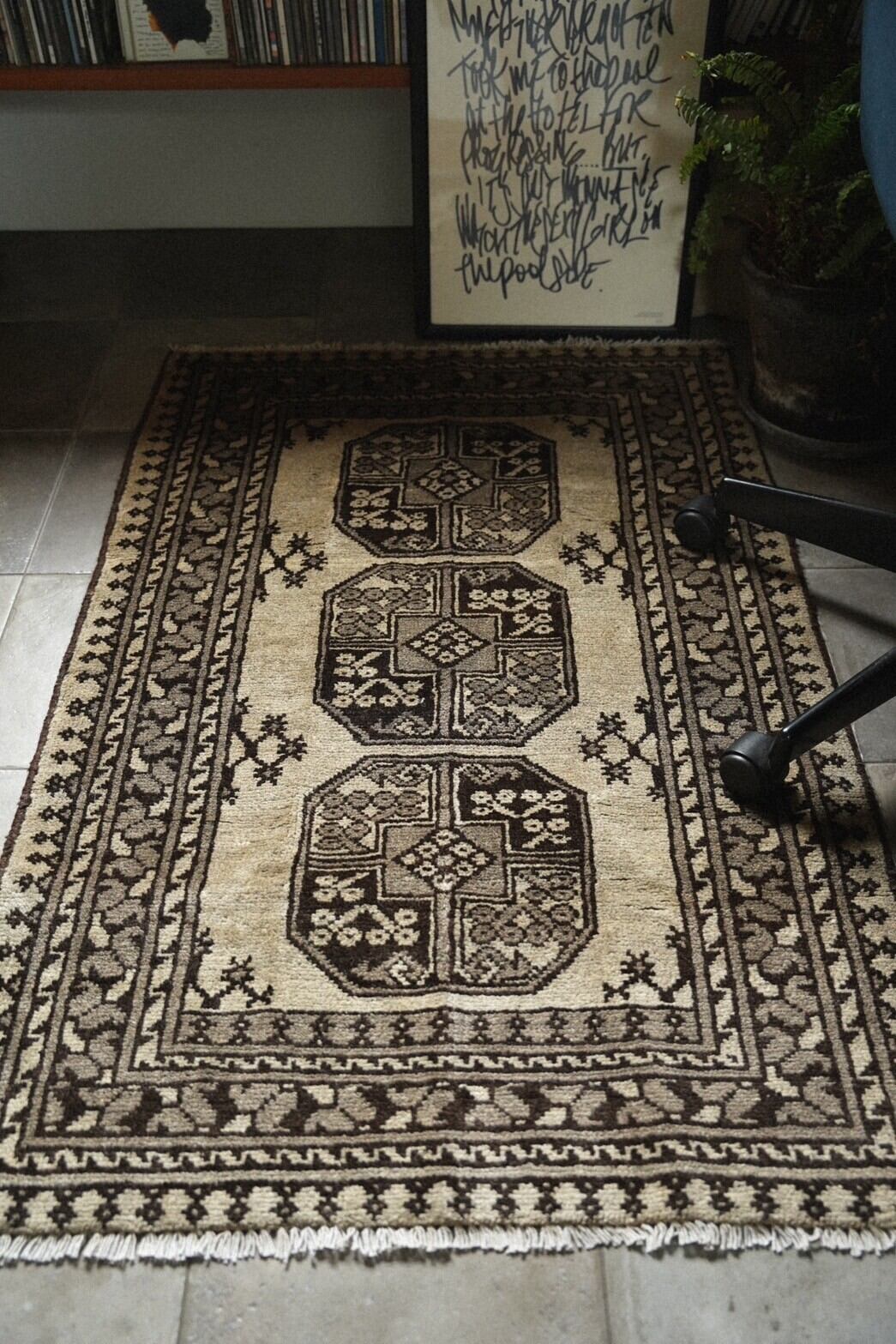 染色していない原毛色のウールを使用しているトルクメンラグ。